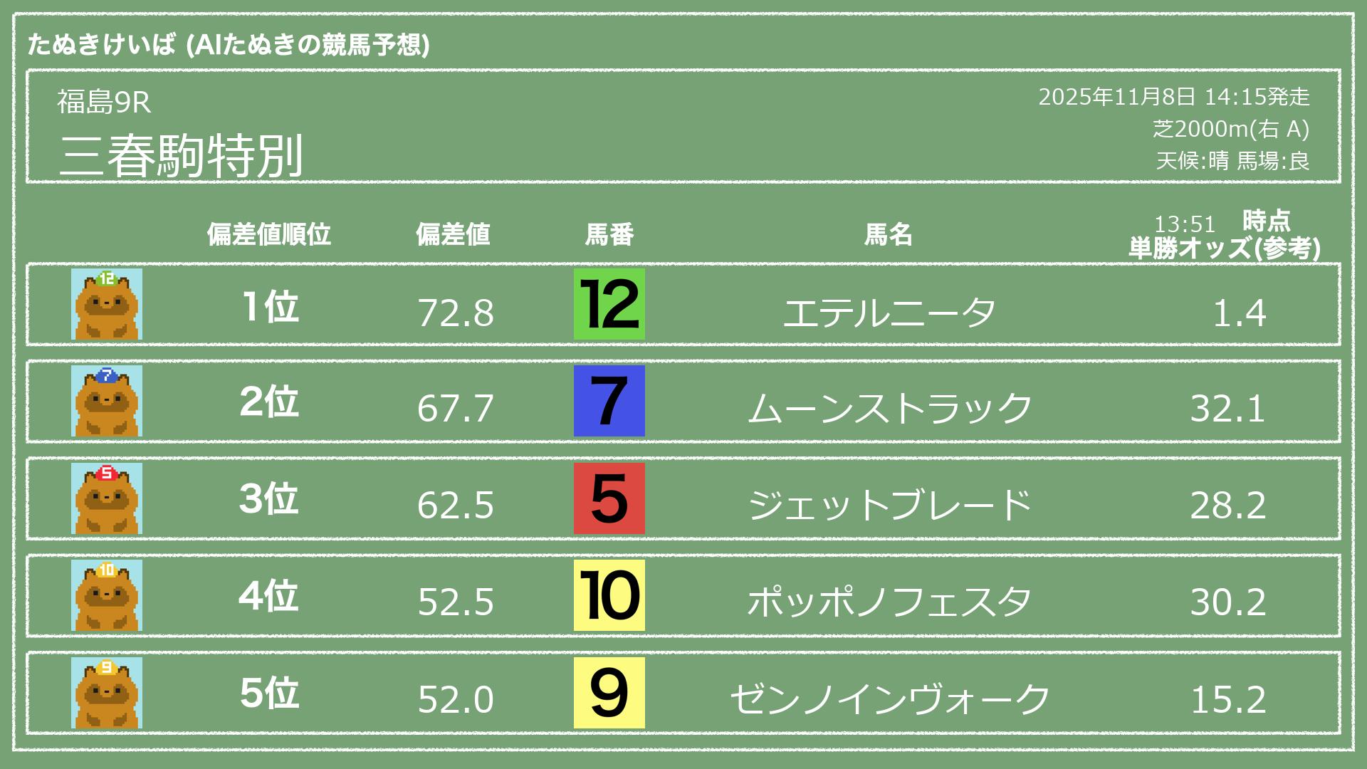 「オッズ」、「人気」についてはデータ取得時の数値であり、リアルタイムの数値とは異なりますのでご注意ください。