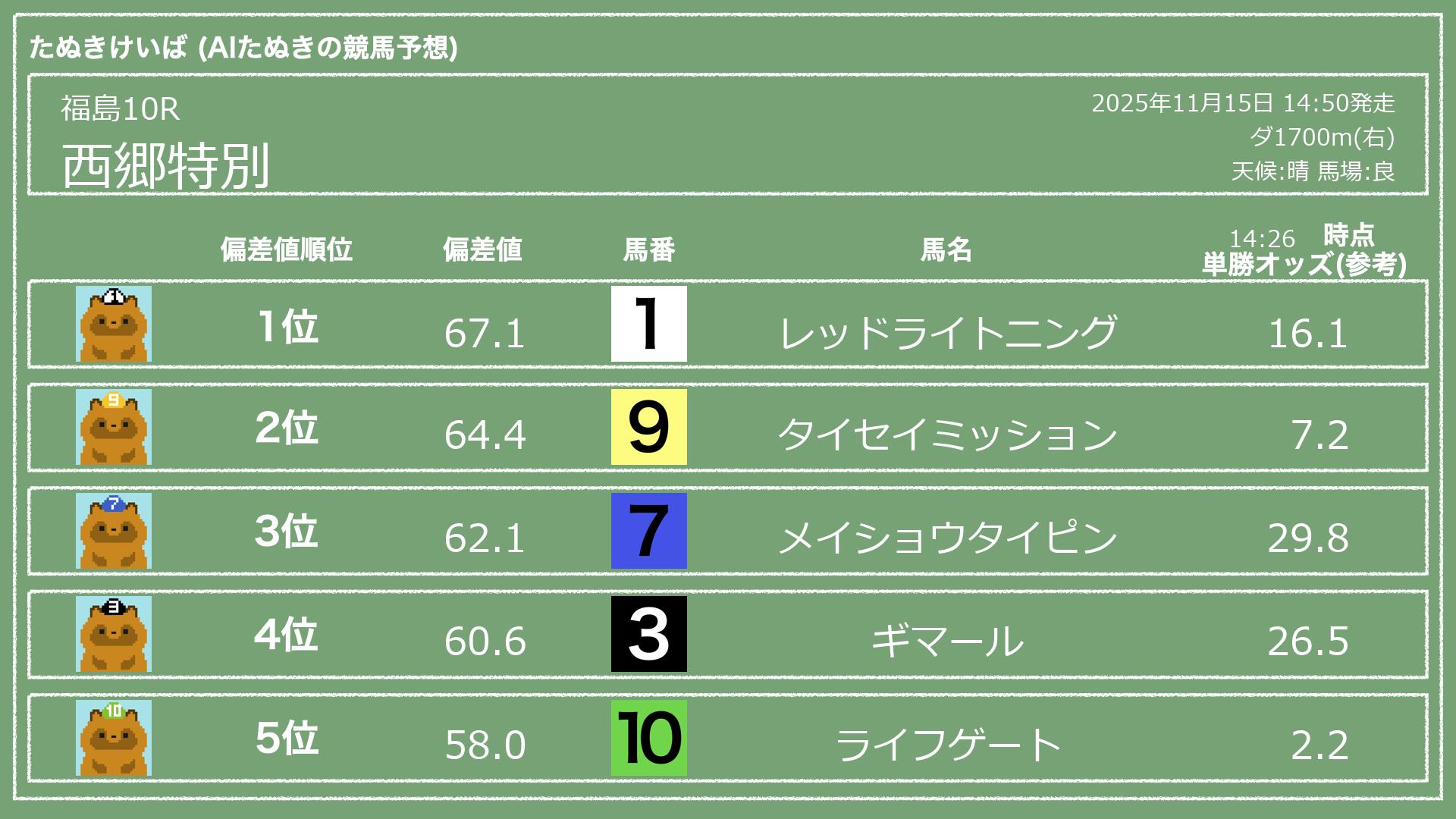 2025.11.15 福島10Rの予想