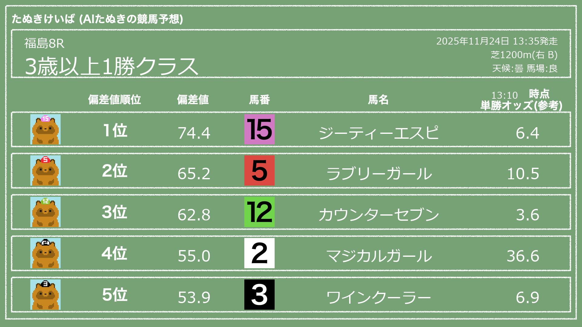 2025.11.24 福島8Rの予想