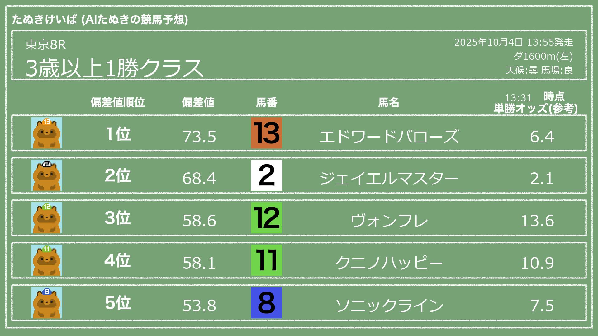 リアルタイムのオッズと比較しながら上手に使ってみてください。
