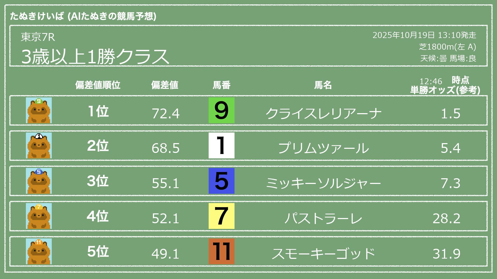 2025.10.19 東京7Rの予想