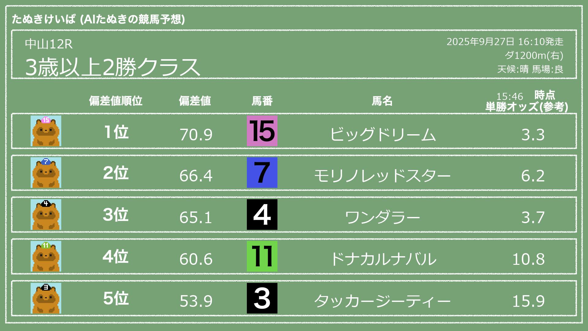 「オッズ」、「人気」についてはデータ取得時の数値であり、リアルタイムの数値とは異なりますのでご注意ください。