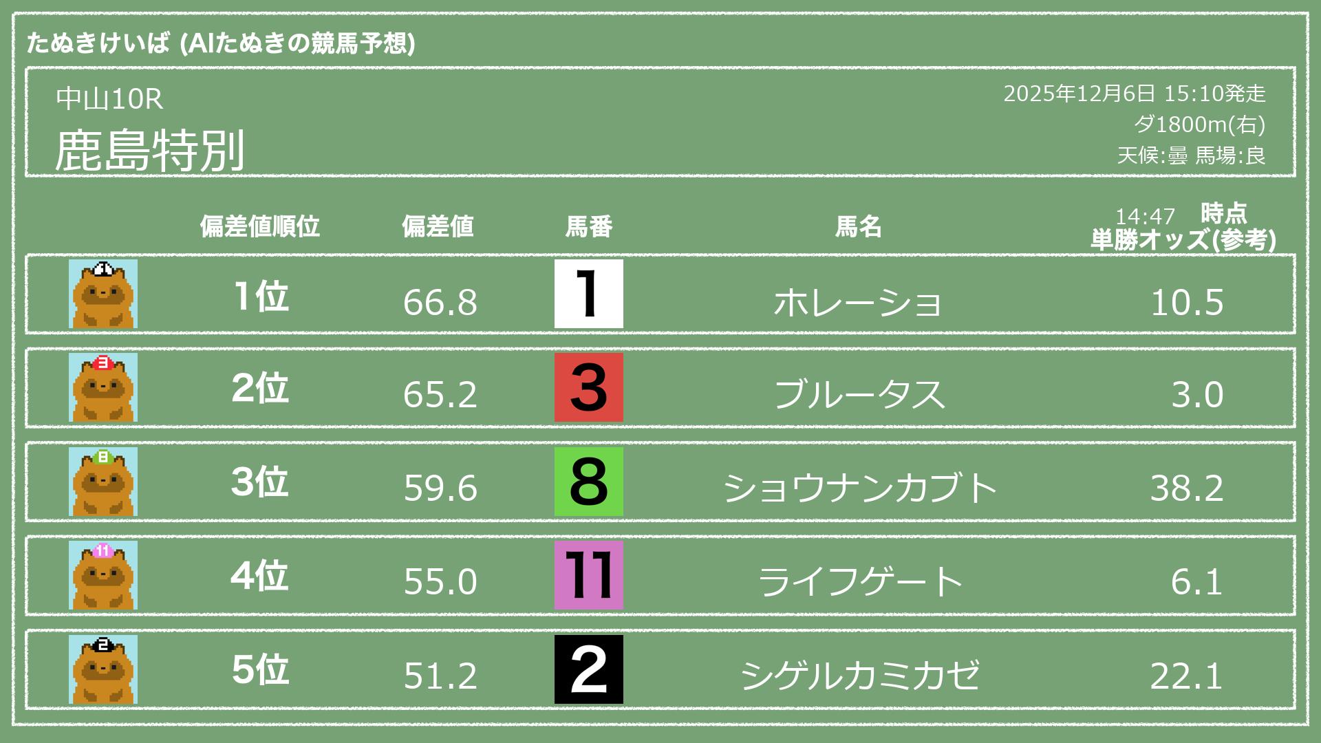 リアルタイムのオッズと比較しながら上手に使ってみてください。
