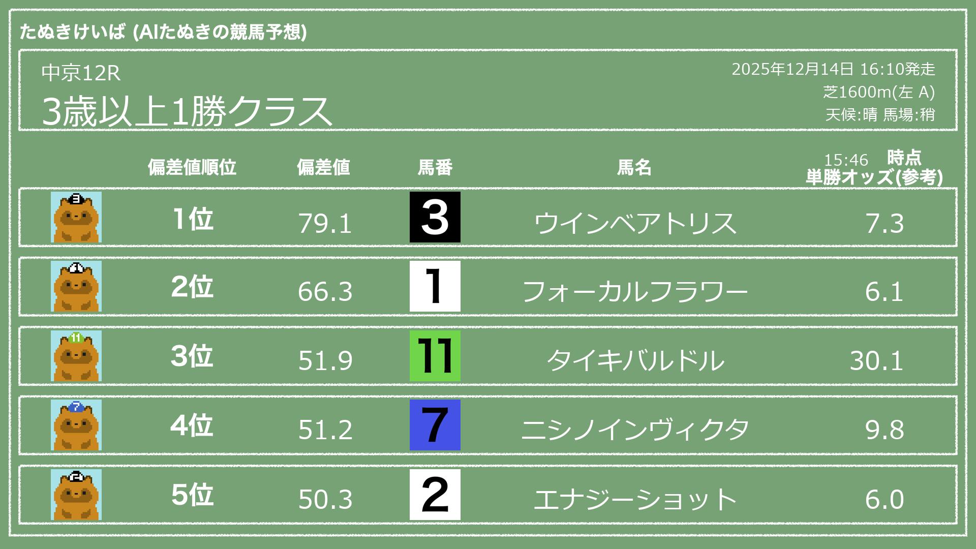 「オッズ」、「人気」についてはデータ取得時の数値であり、リアルタイムの数値とは異なりますのでご注意ください。