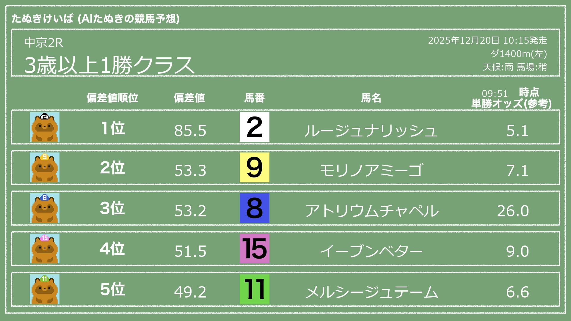 「オッズ」、「人気」についてはデータ取得時の数値であり、リアルタイムの数値とは異なりますのでご注意ください。