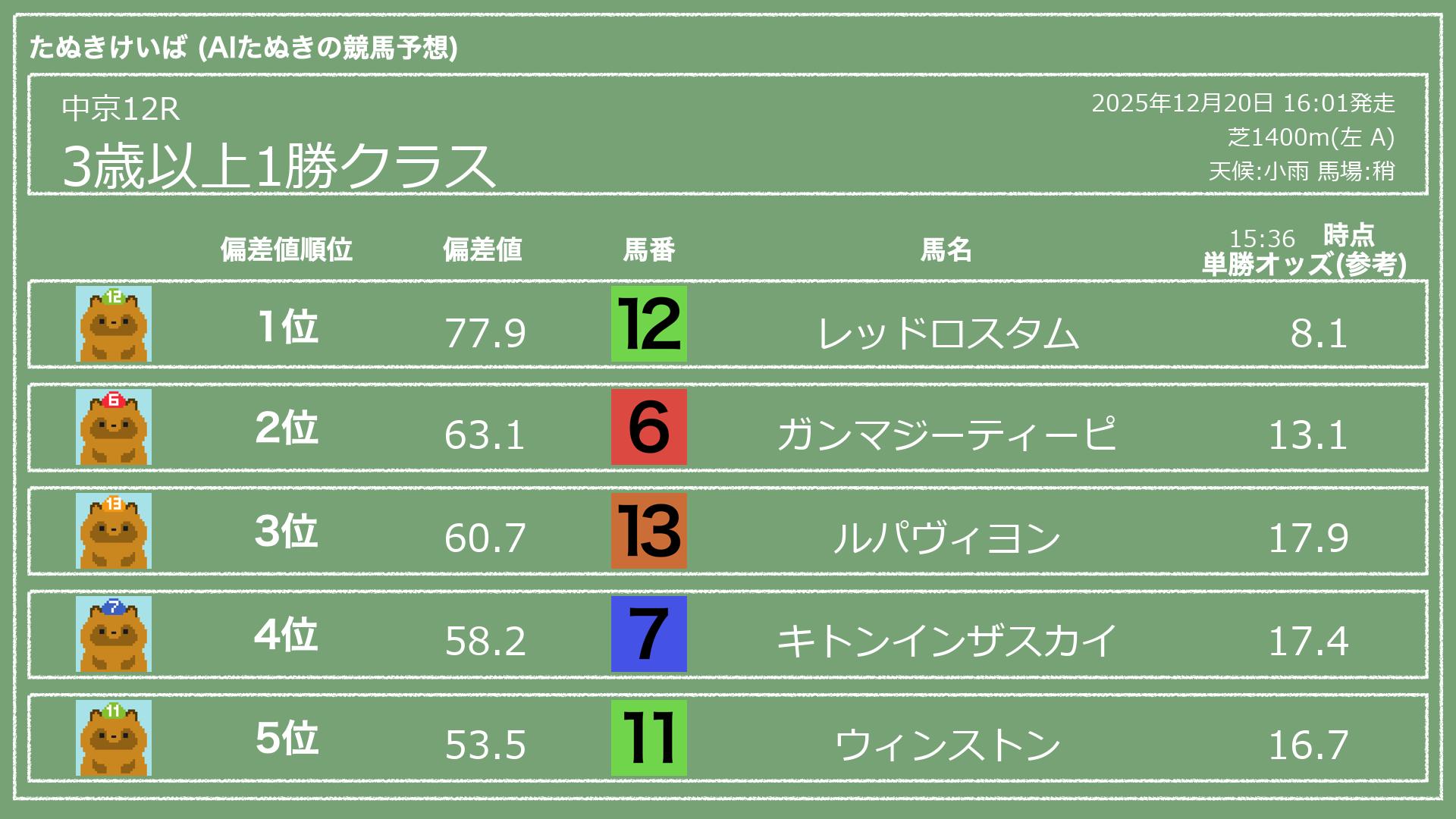 2025.12.20 中京12Rの予想