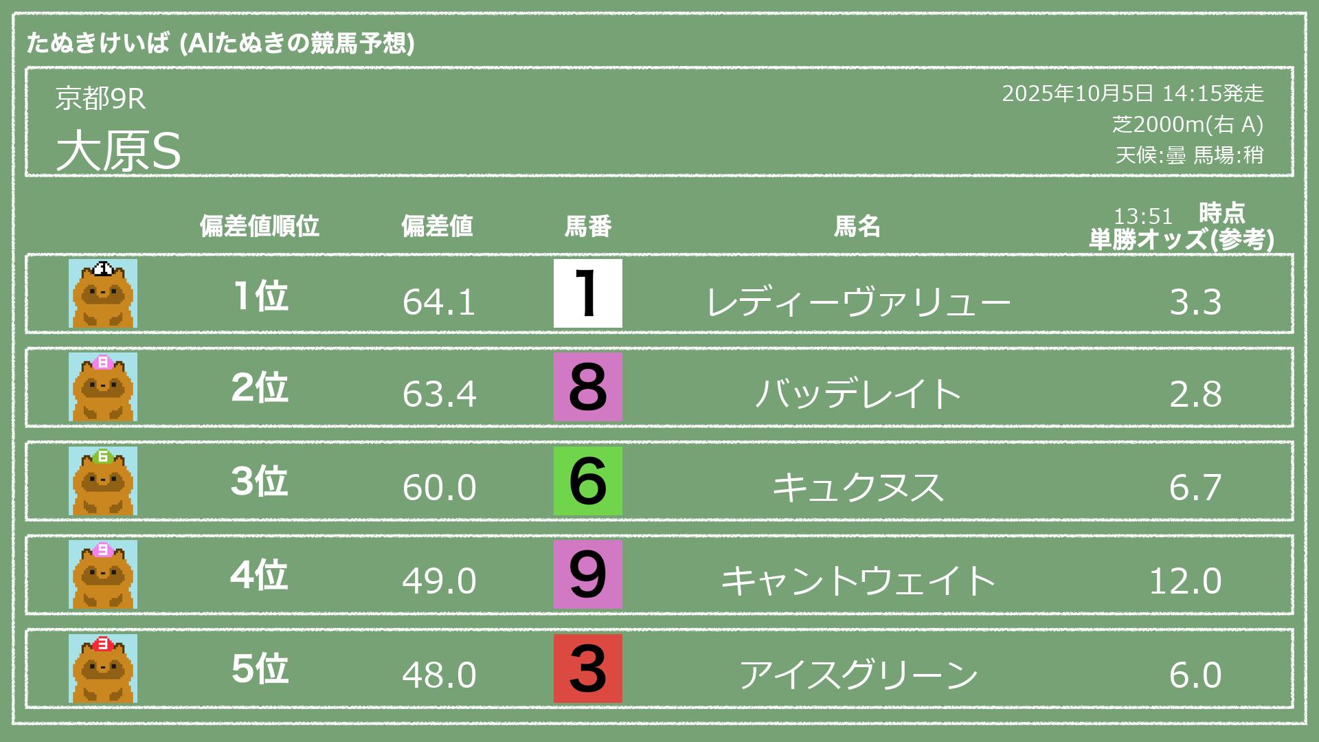 2025.10.05 京都9Rの予想