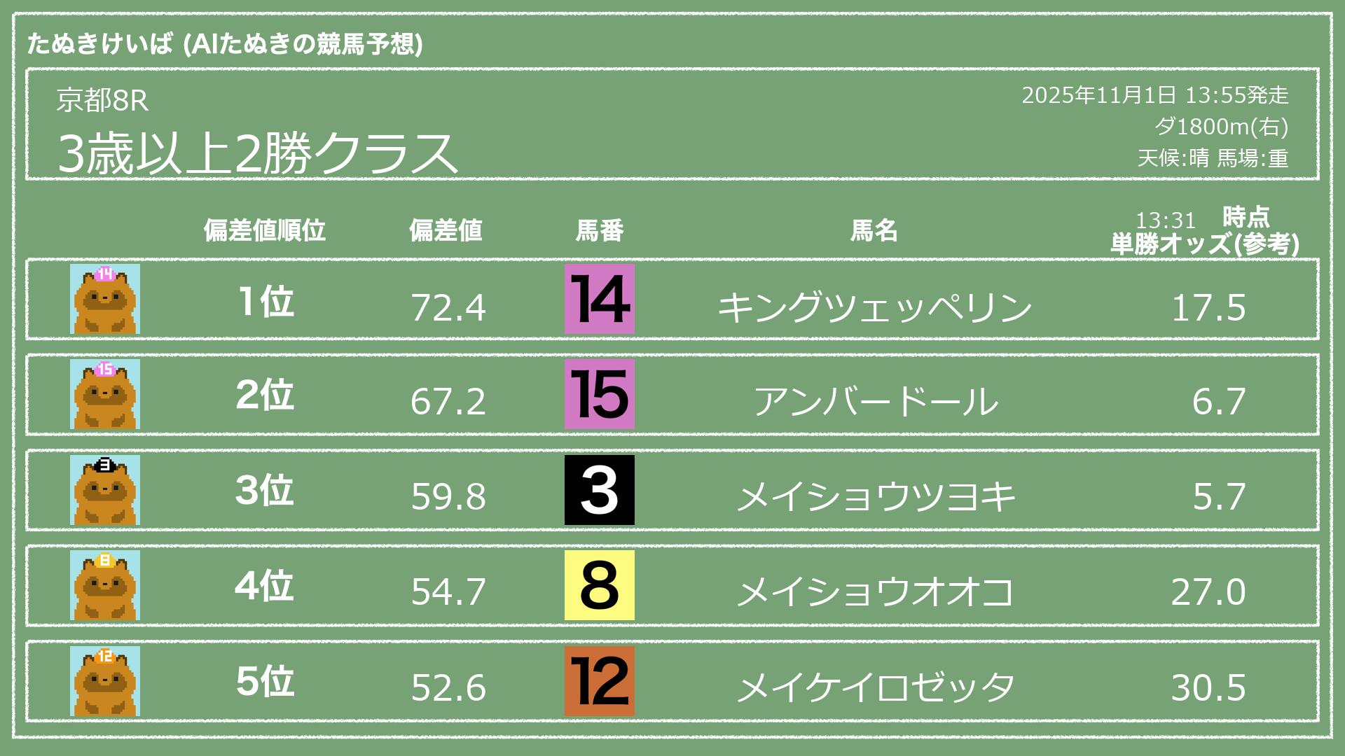 2025.11.01 京都8Rの予想