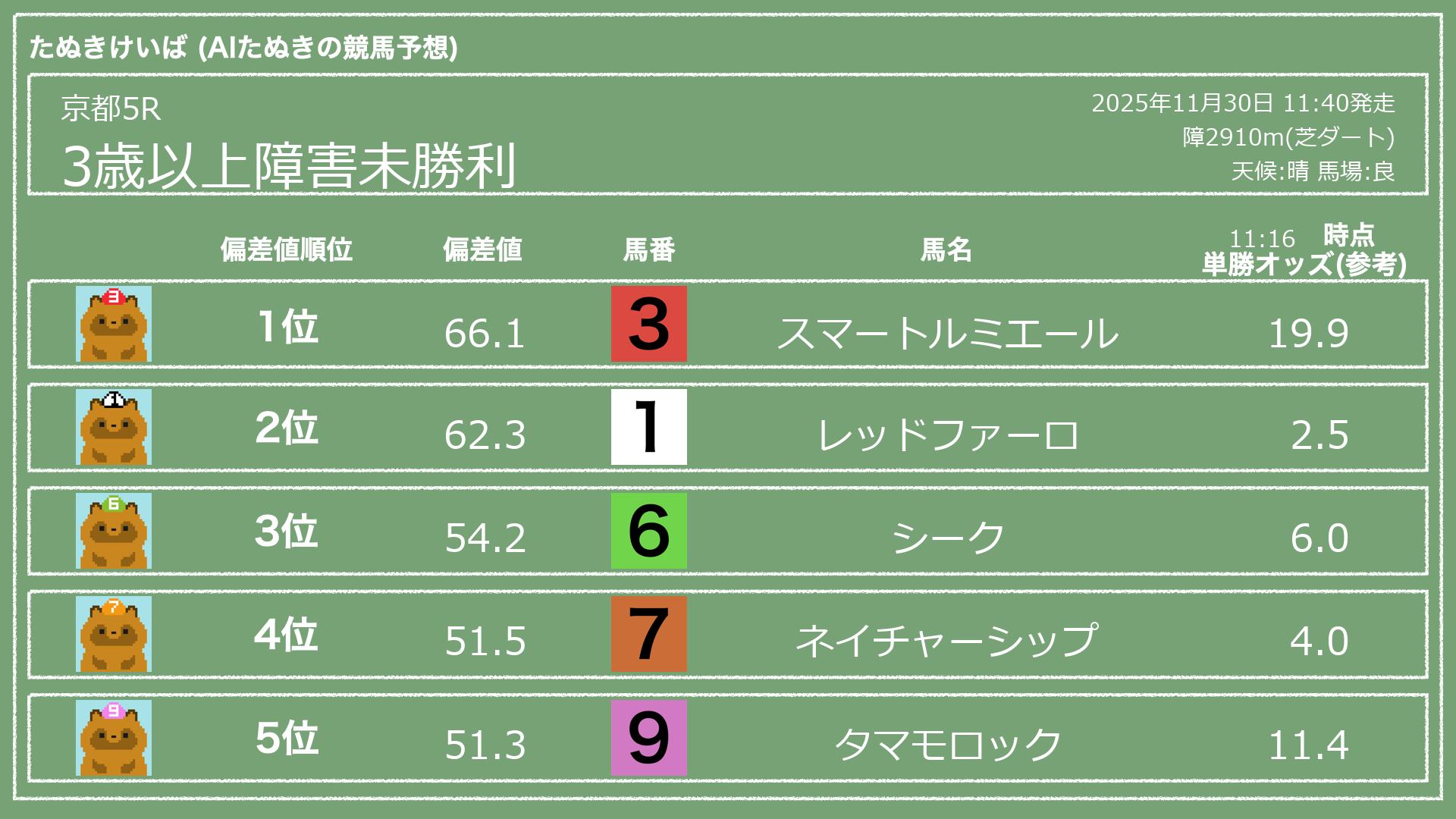 うちのたぬき(AI)による競馬予想です。
