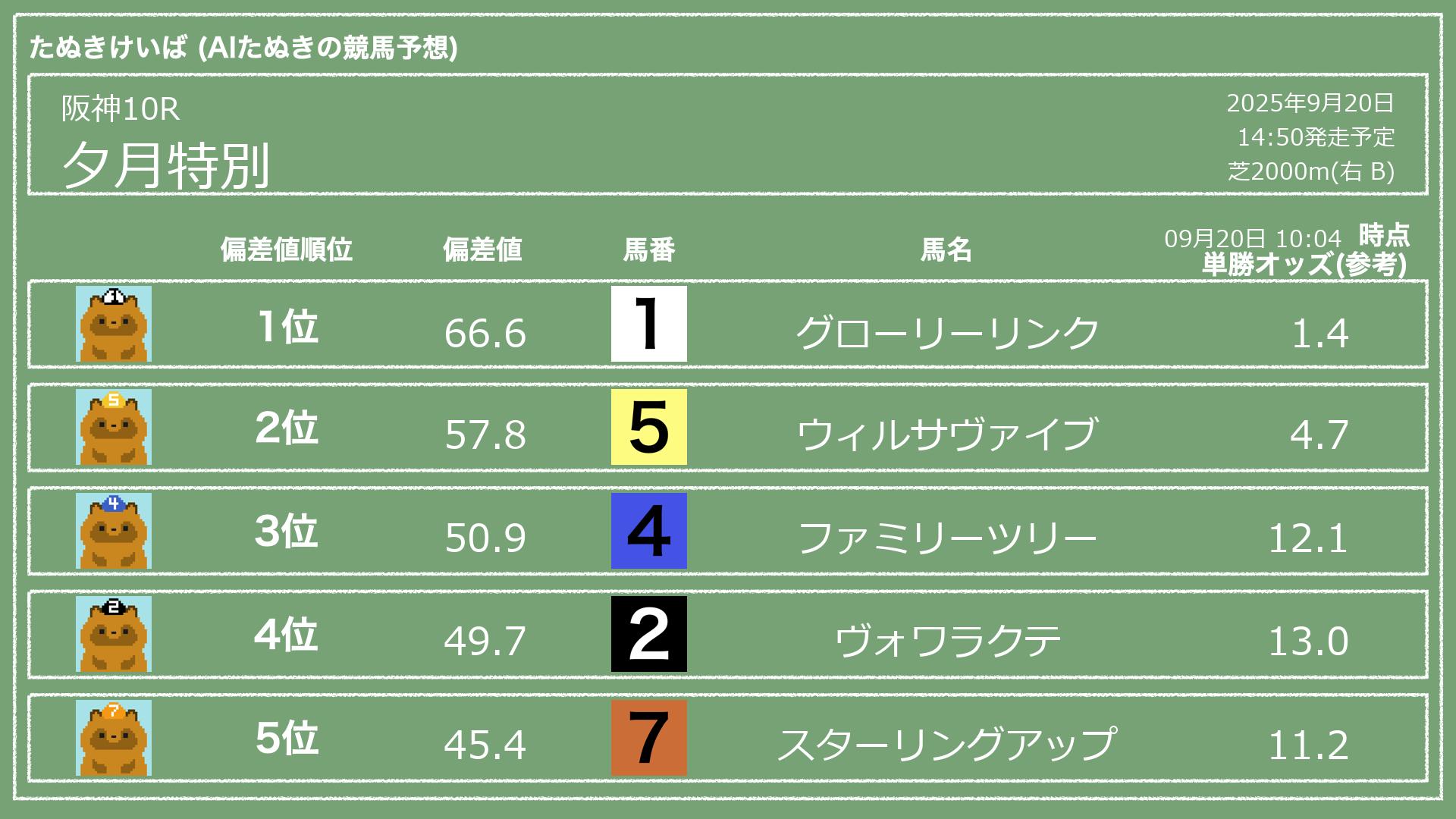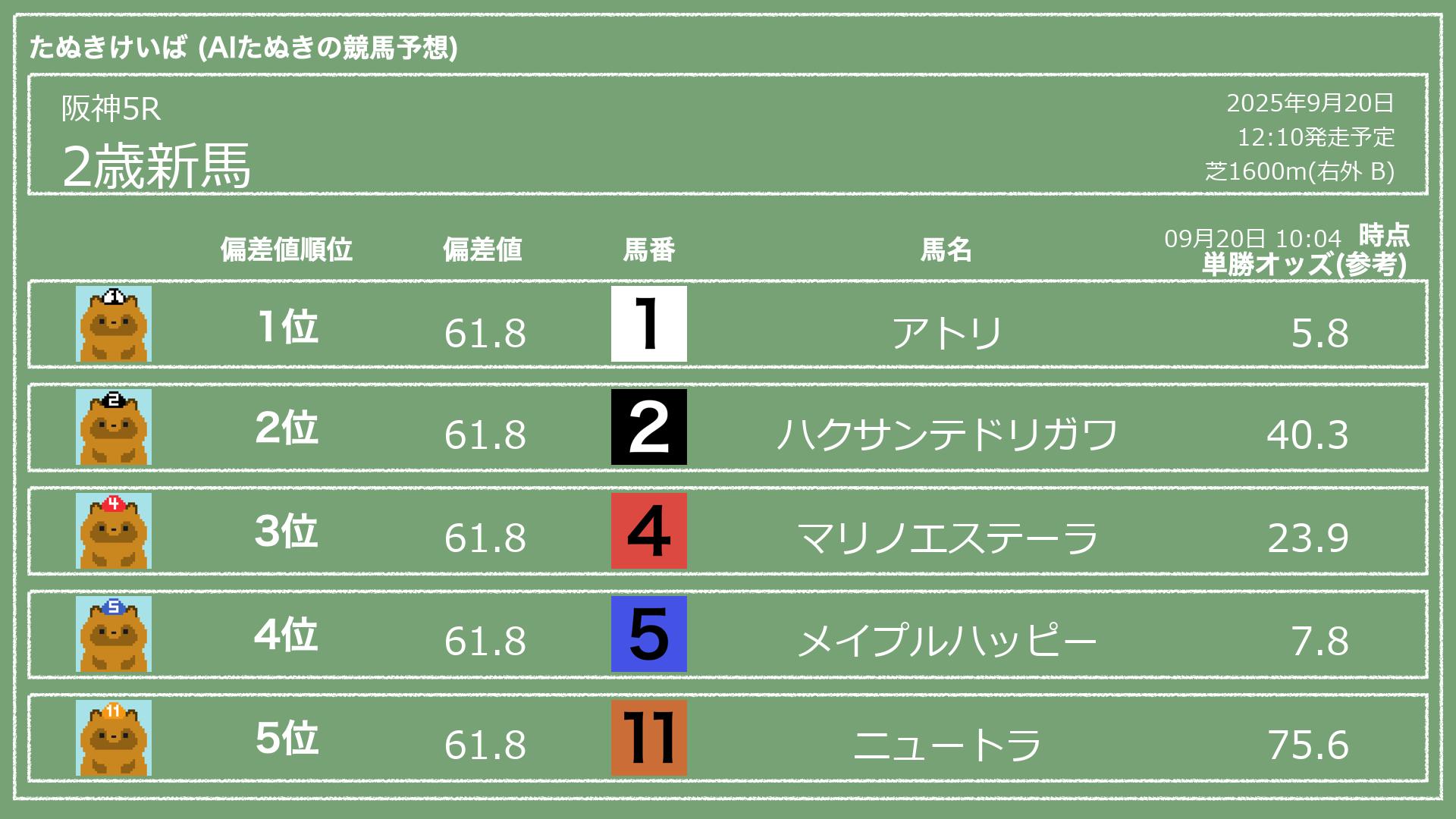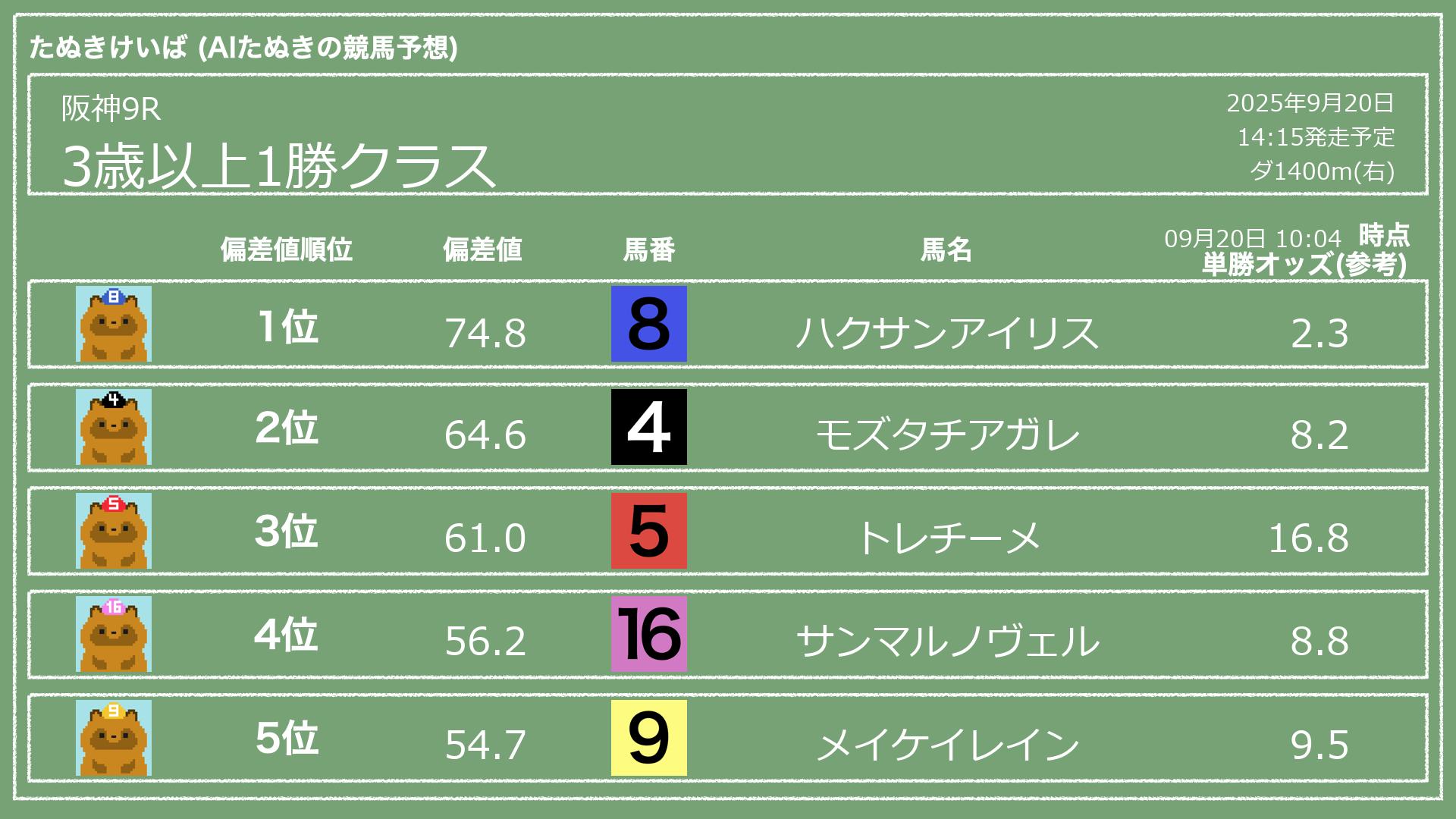 5 | 5 | 9 | メイケイレイン | 4 | 9.5 | 54.7 |