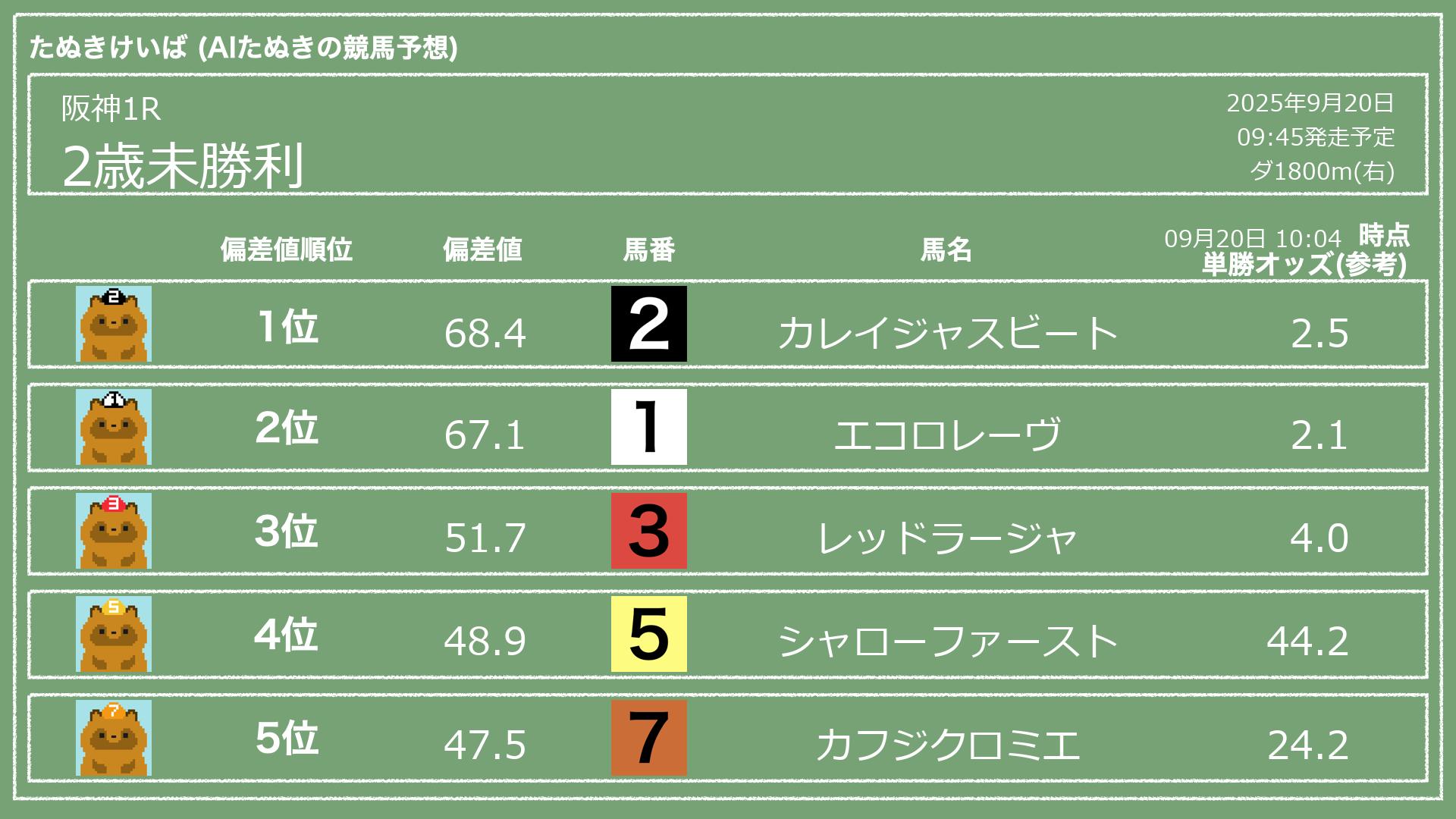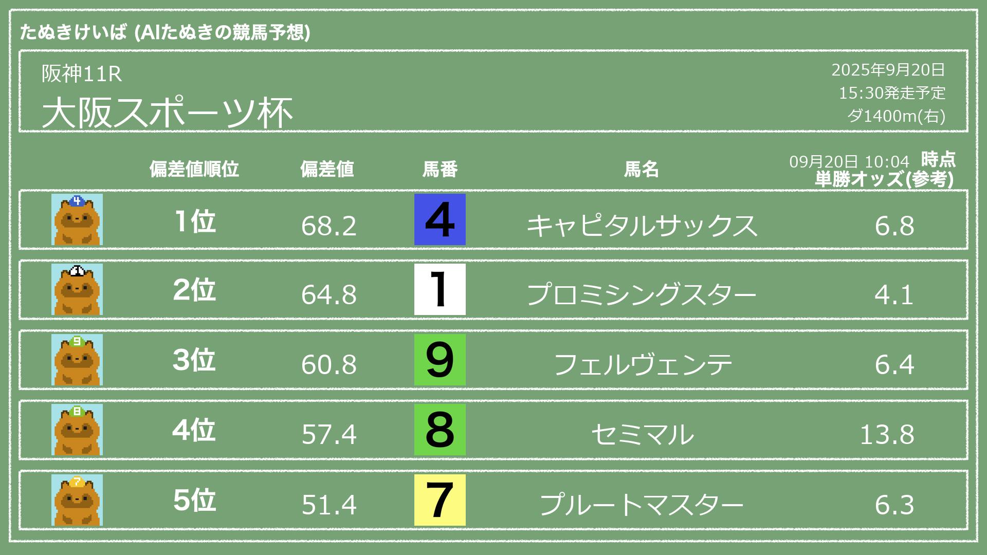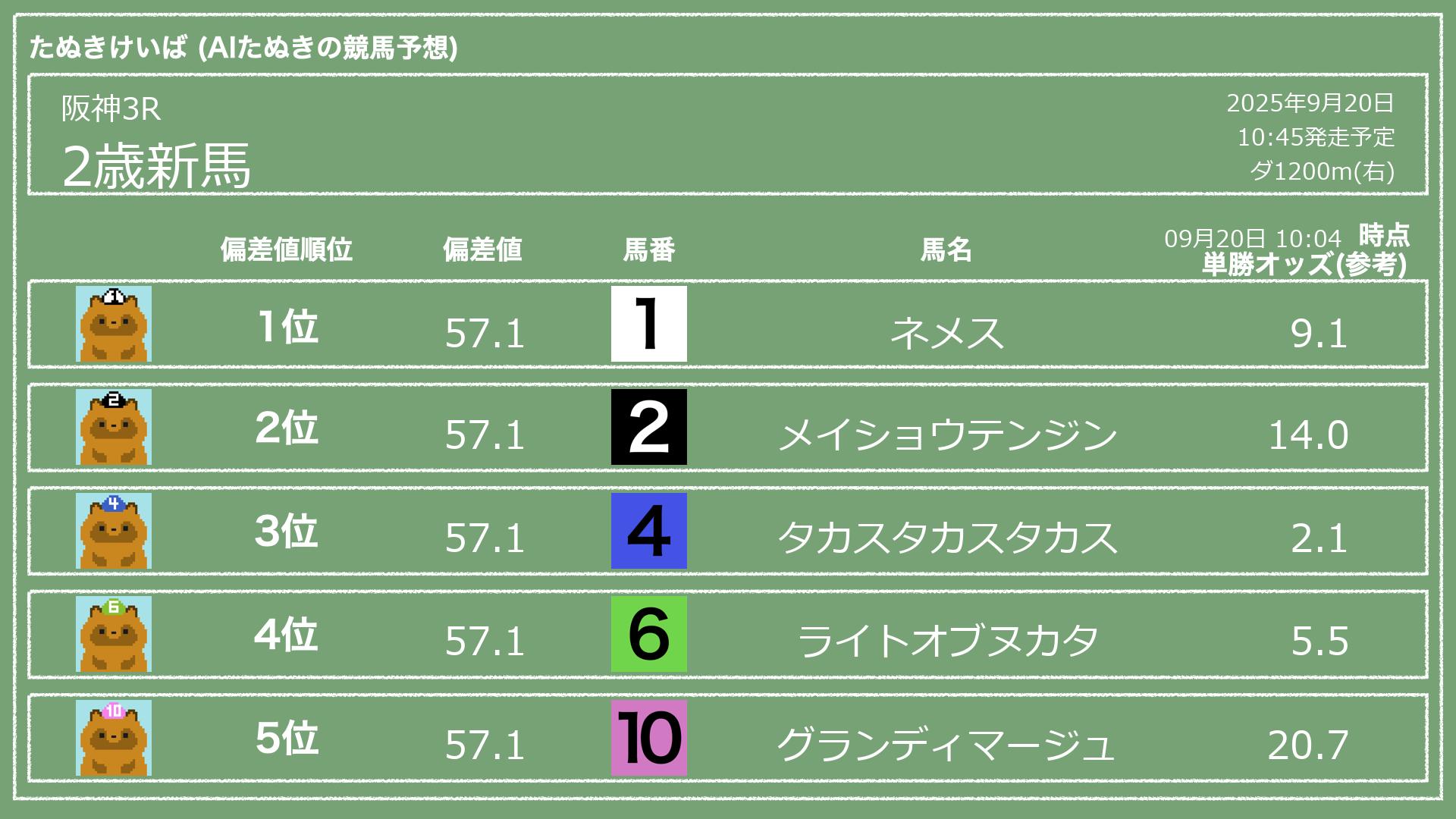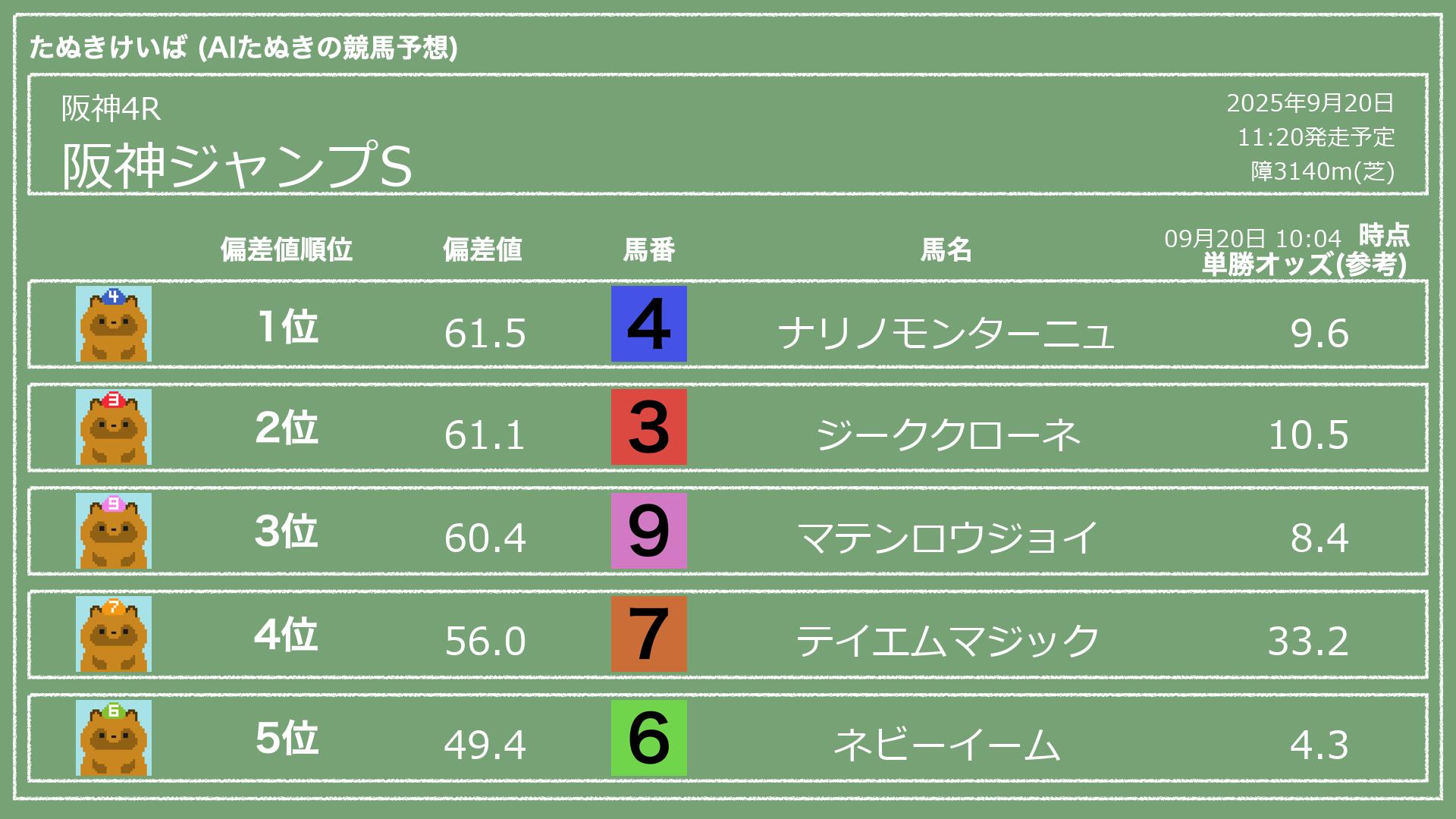 5 | 5 | 9 | メイケイレイン | 4 | 9.5 | 54.7 |