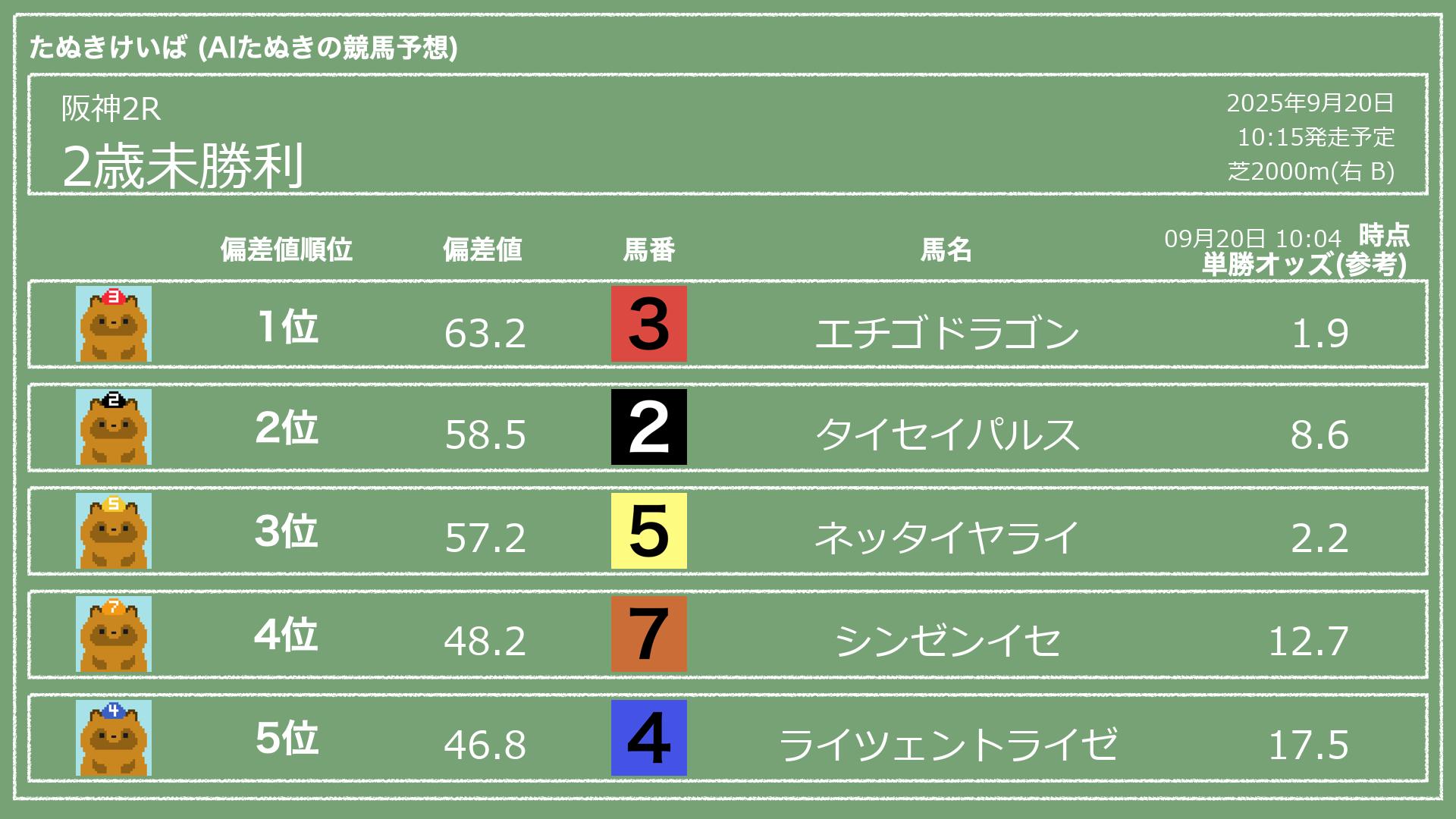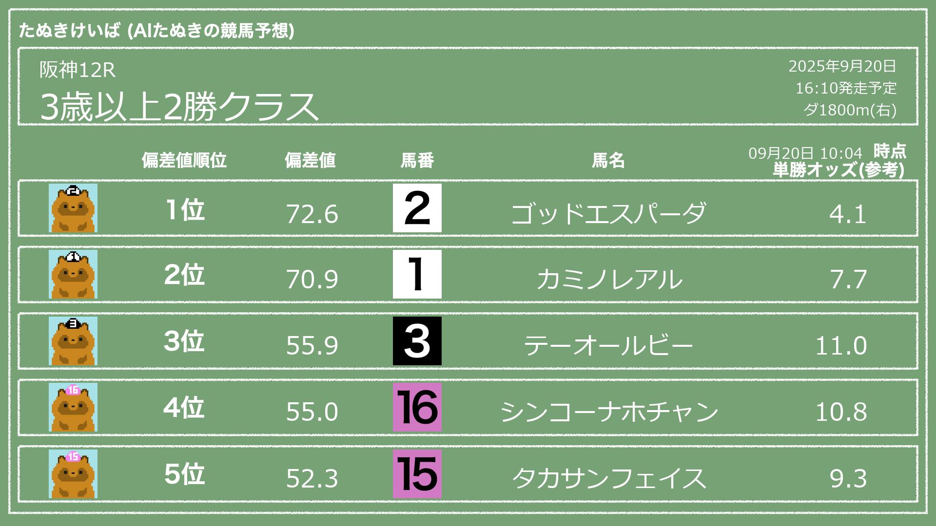 1 | 1 | 2 | ゴッドエスパーダ | 1 | 4.1 | 72.6 |