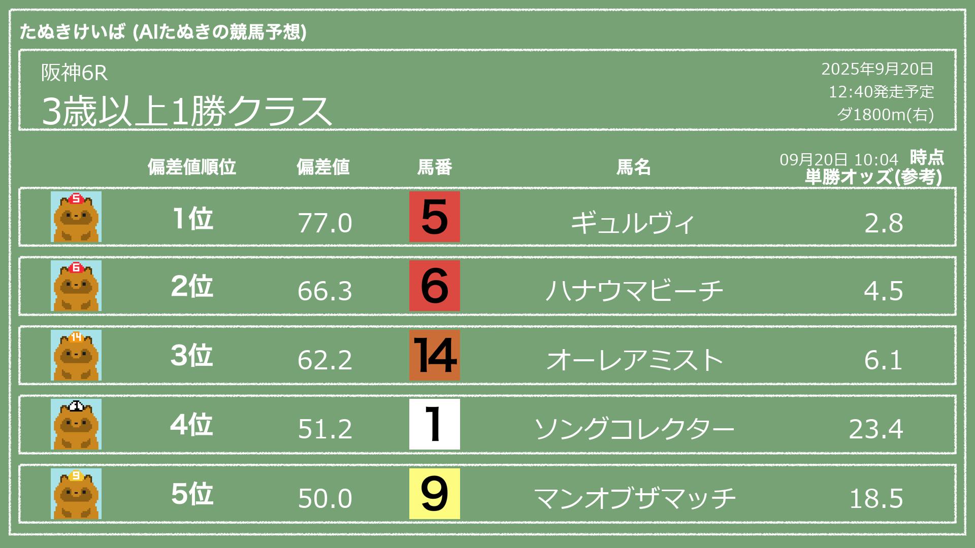 6 | 6 | 6 | ジーティースティア | 5 | 26.5 | 47.1 |