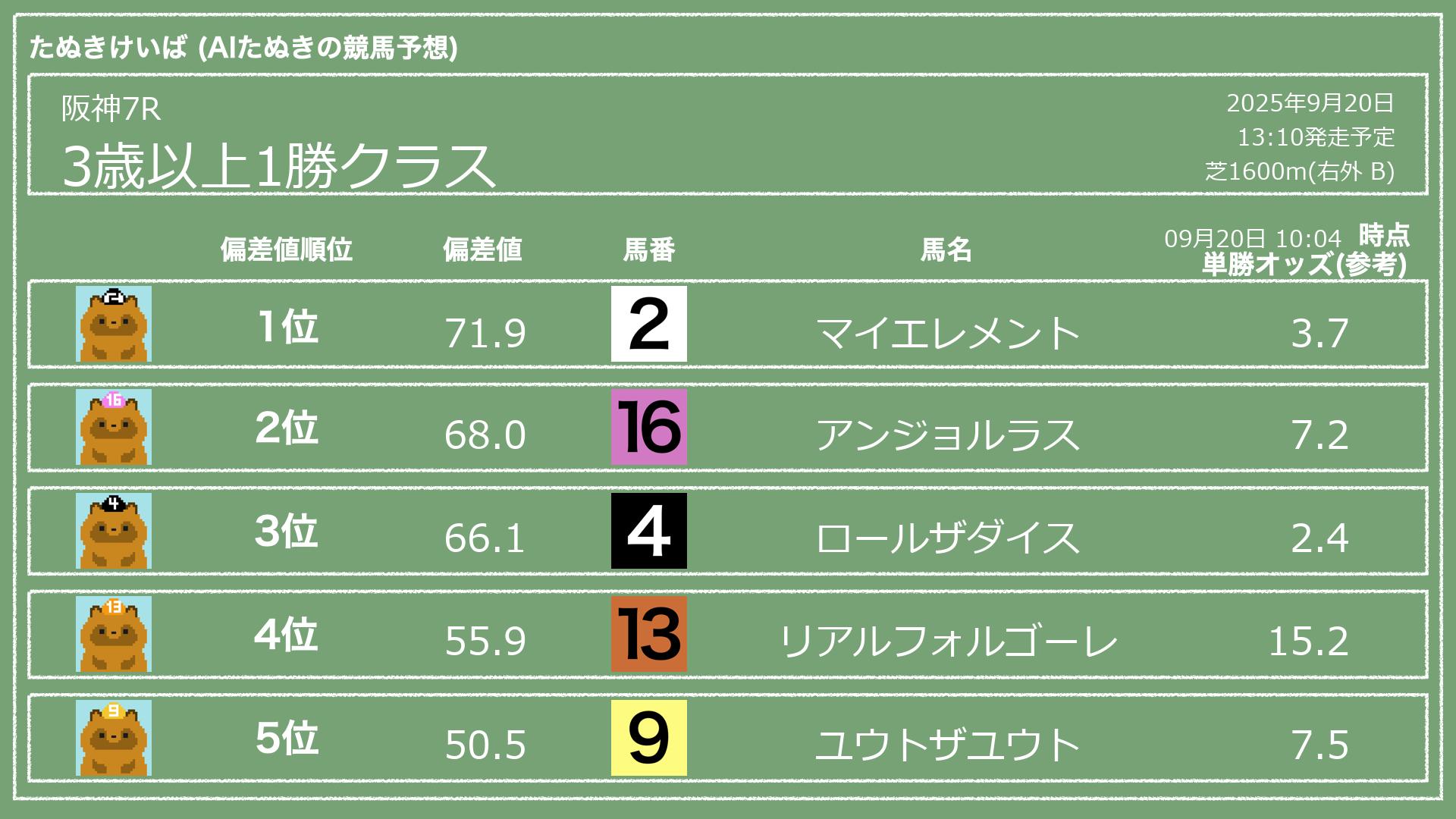 7 | 3 | 3 | ハッピーアズラリー | 7 | 43.6 | 35.8 |