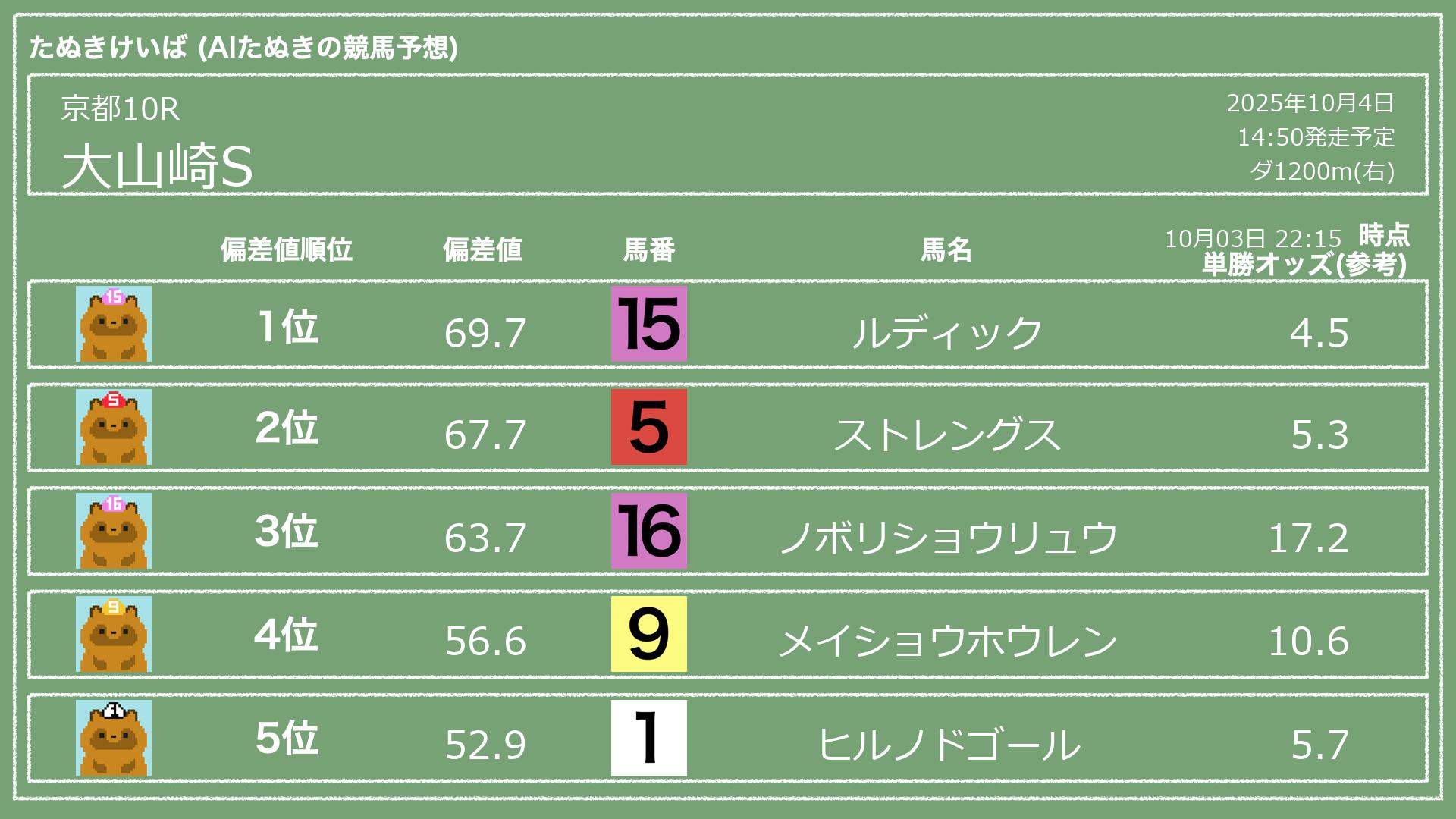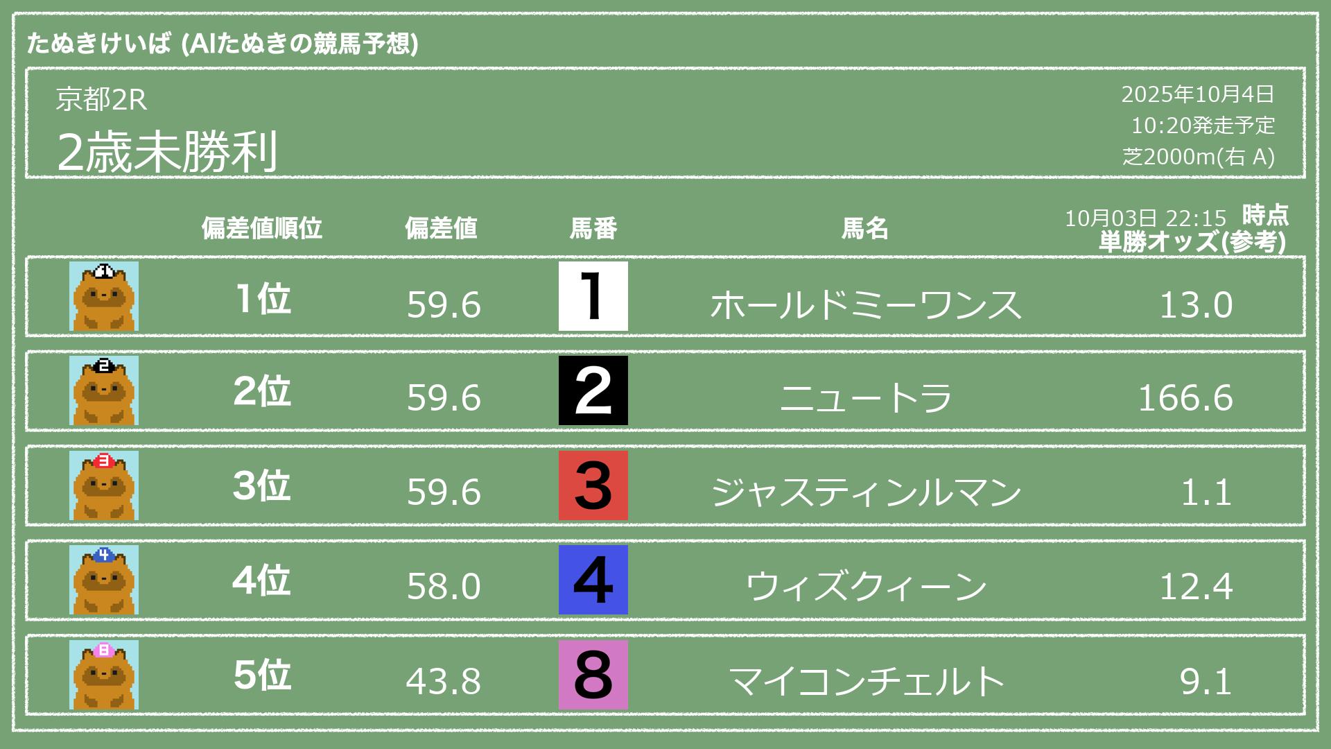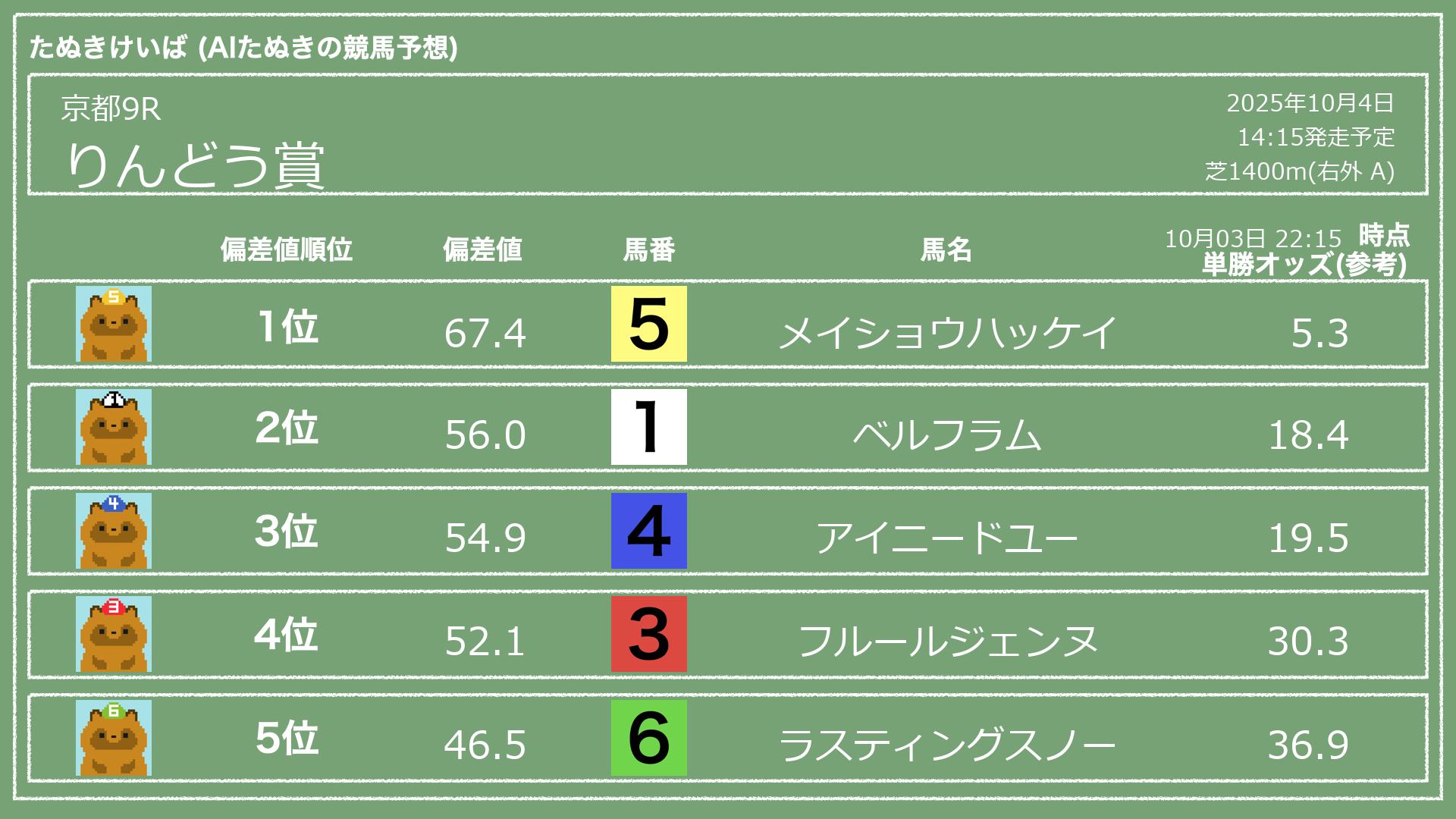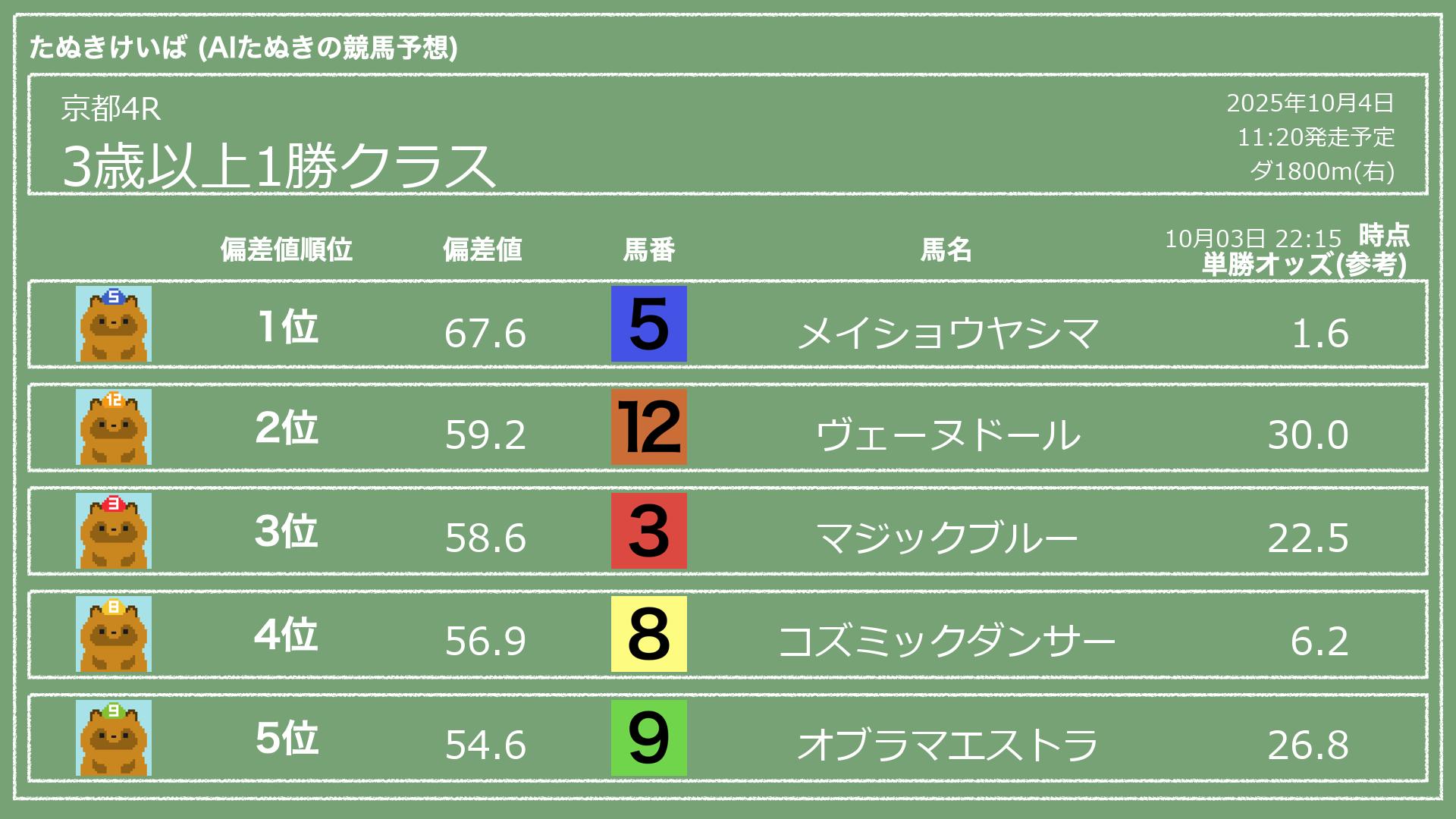 【全レース無料】2025年10月4日(土) 京都競馬のAI予想