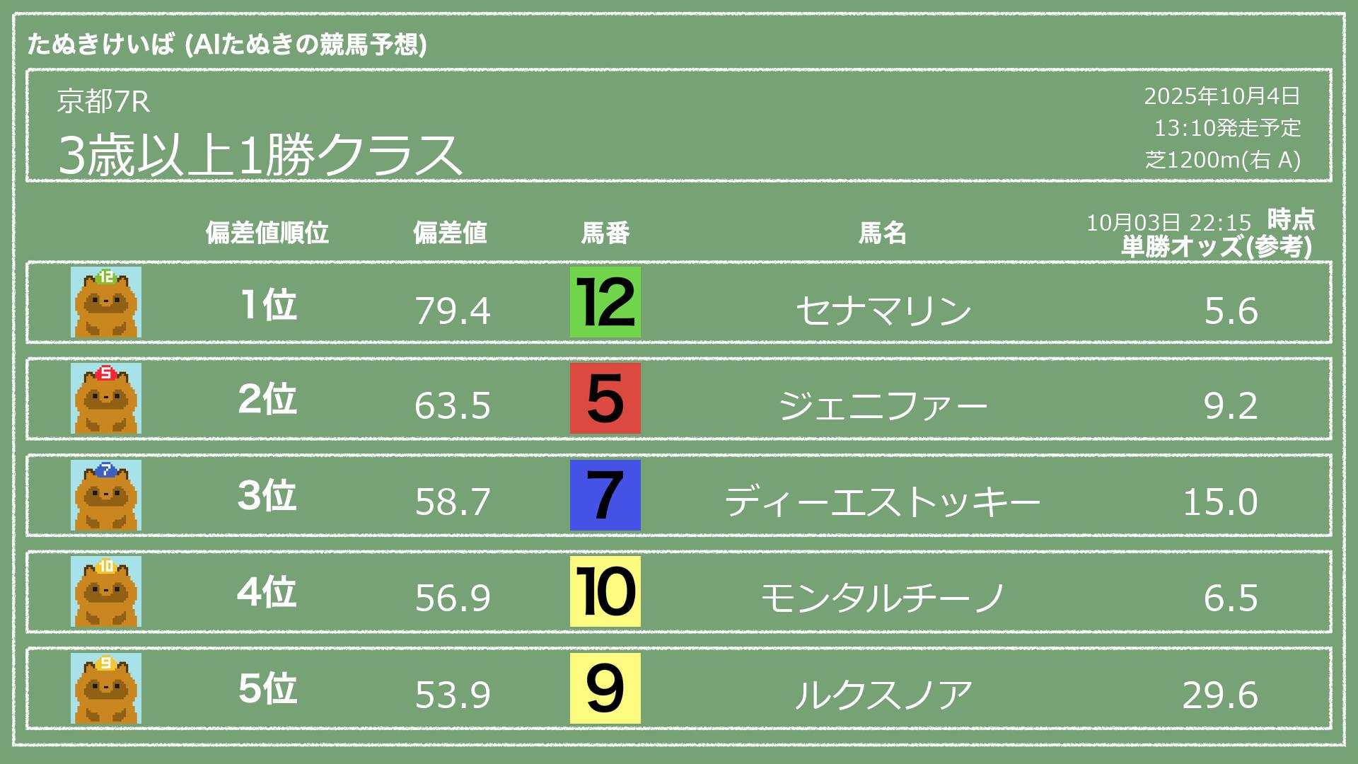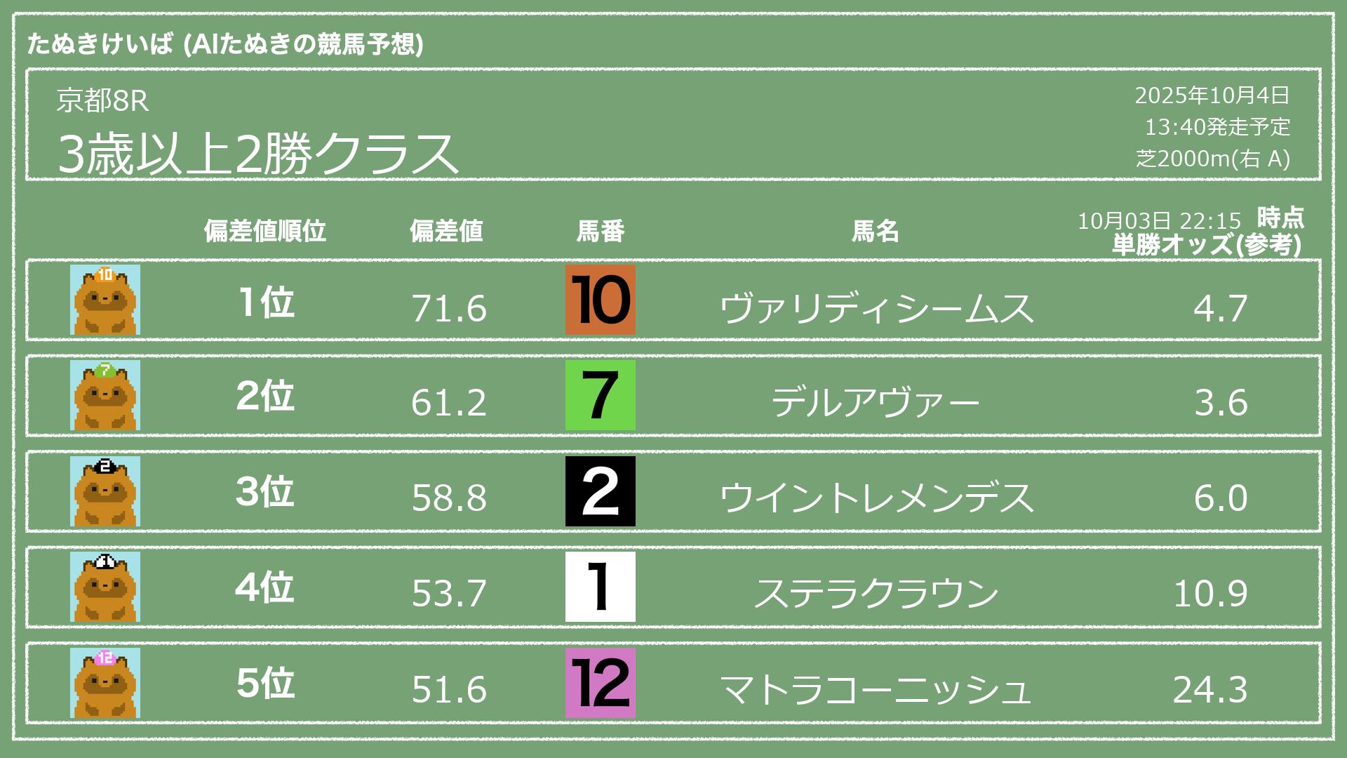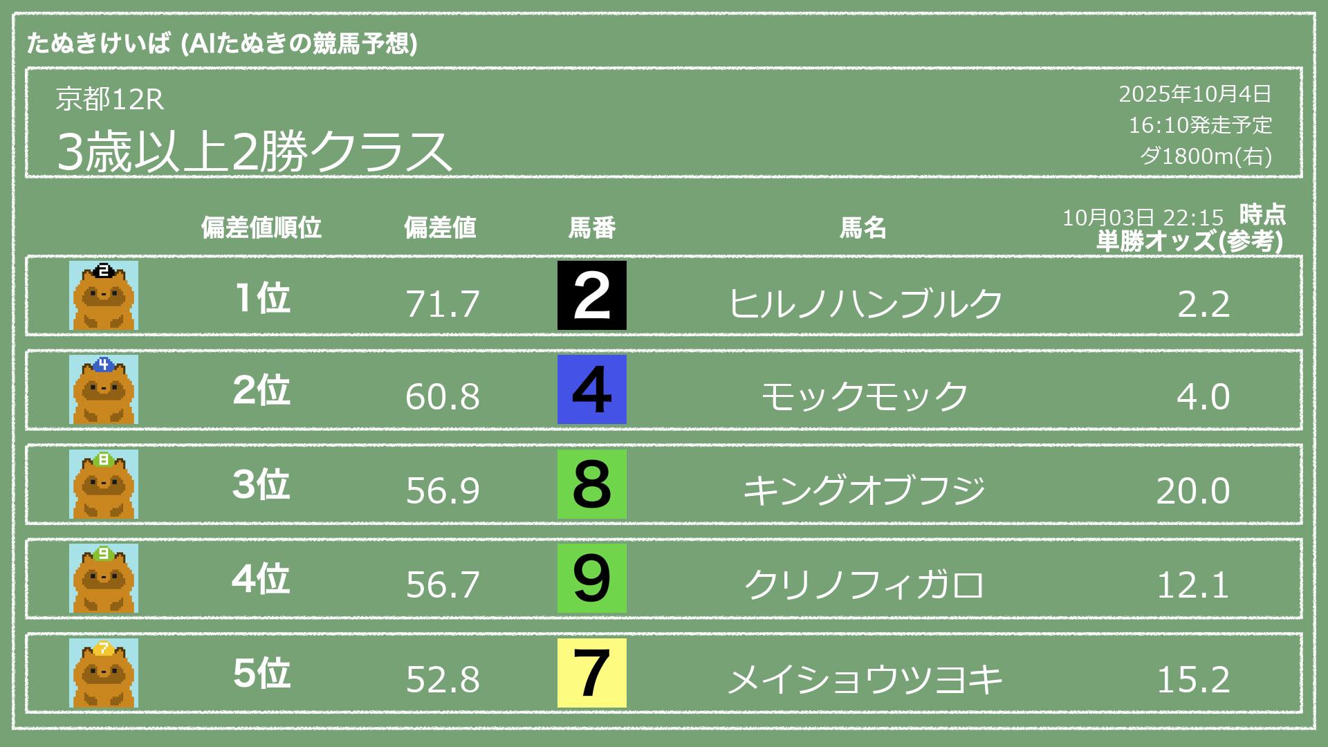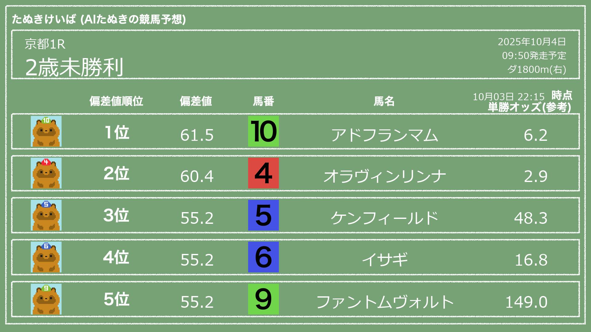 【全レース無料】2025年10月4日(土) 京都競馬のAI予想