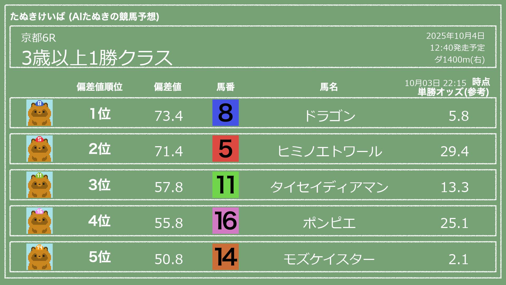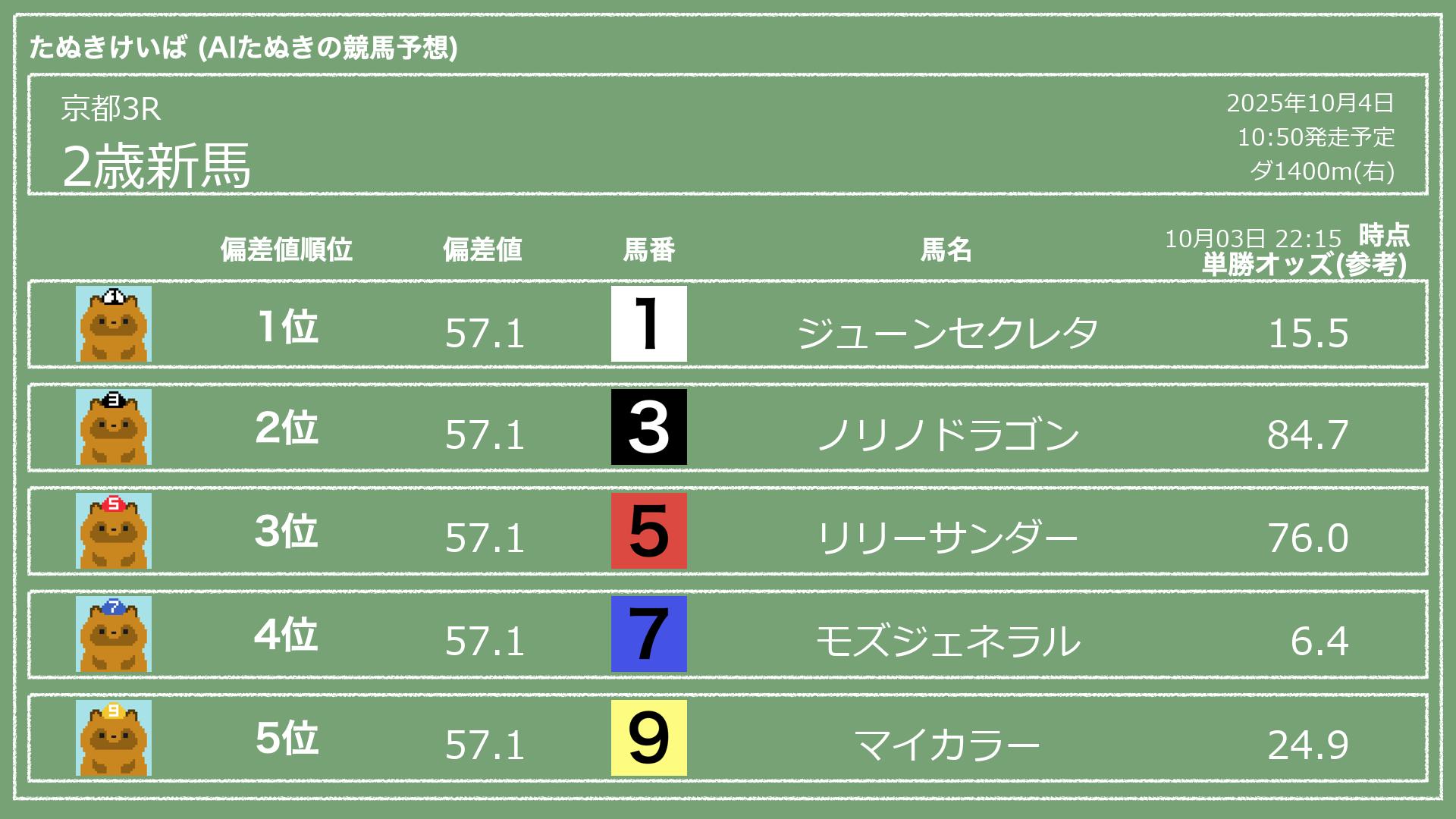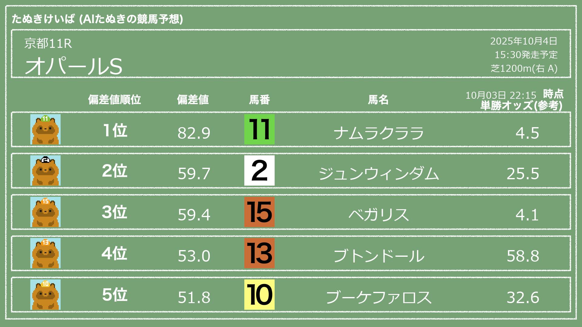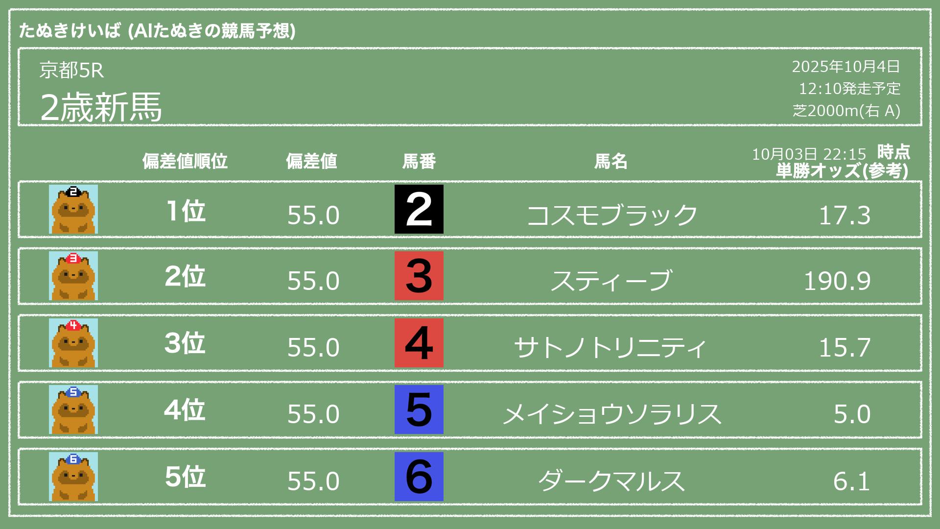 【全レース無料】2025年10月4日(土) 京都競馬のAI予想