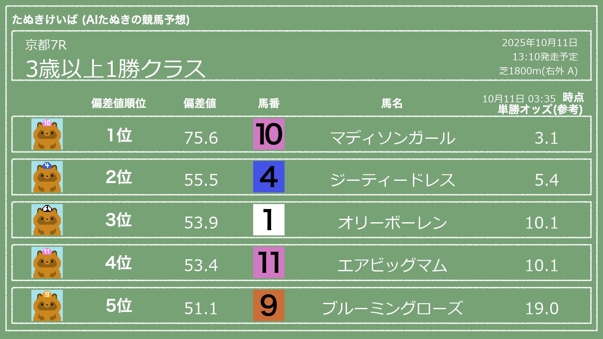 1 | 8 | 10 | マディソンガール | 1 | 3.1 | 75.6 |