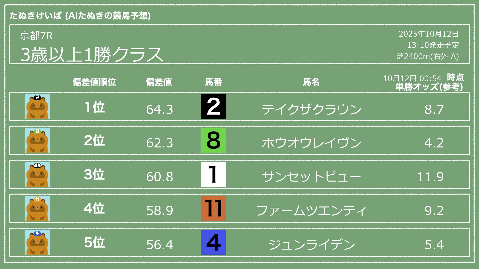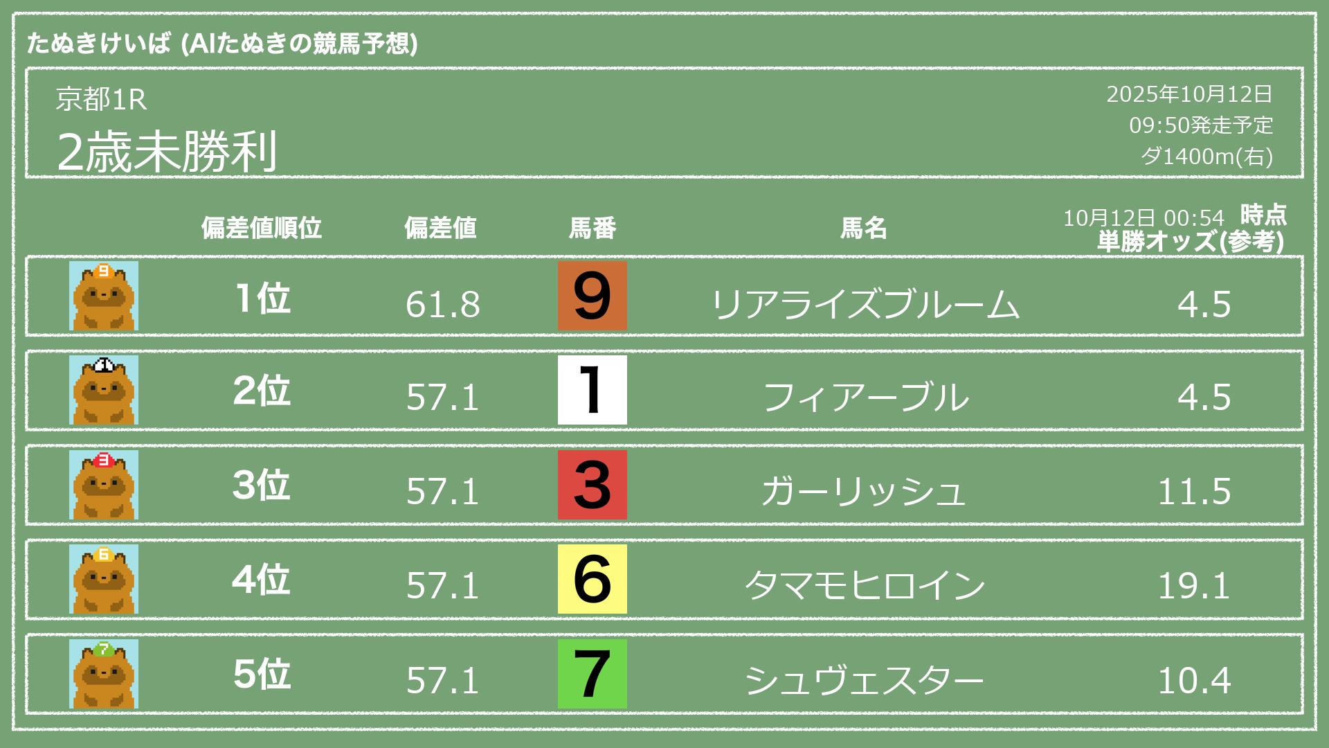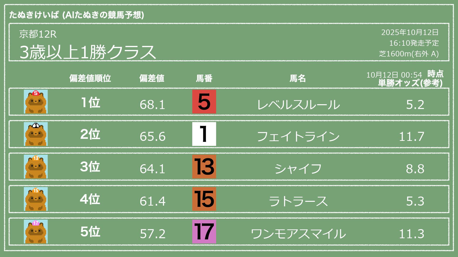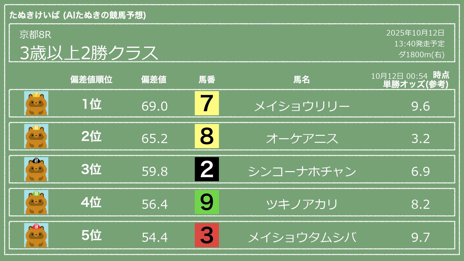 【全レース無料】2025年10月12日(日) 京都競馬のAI予想