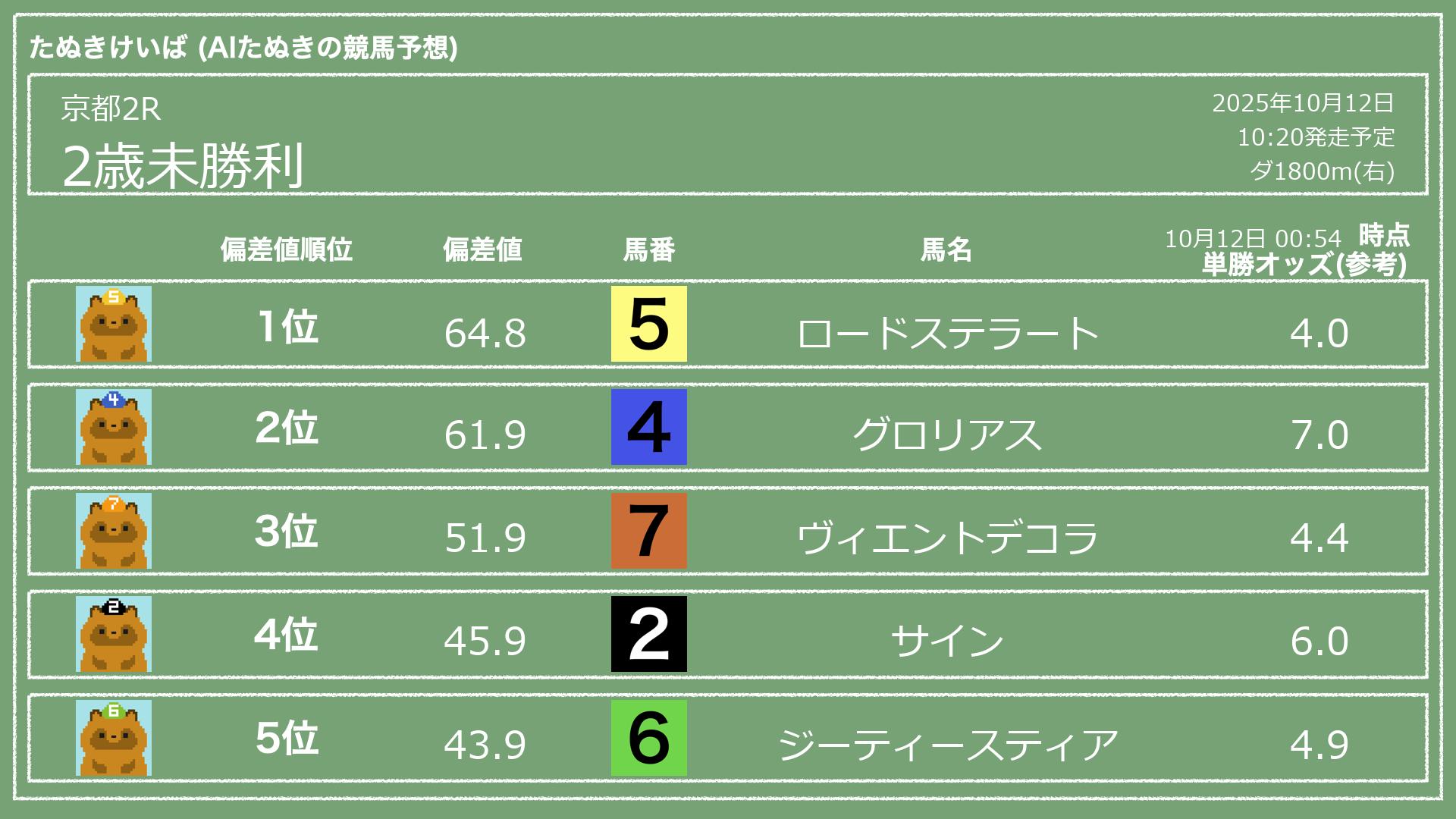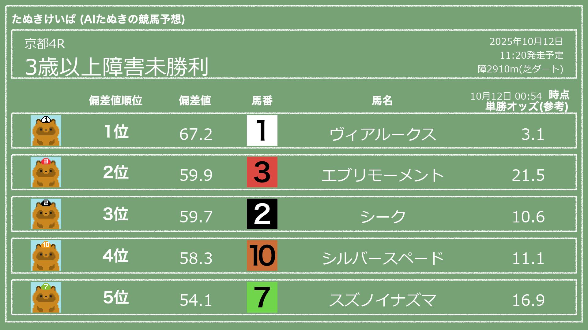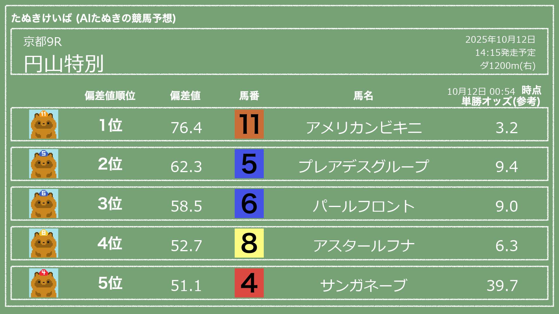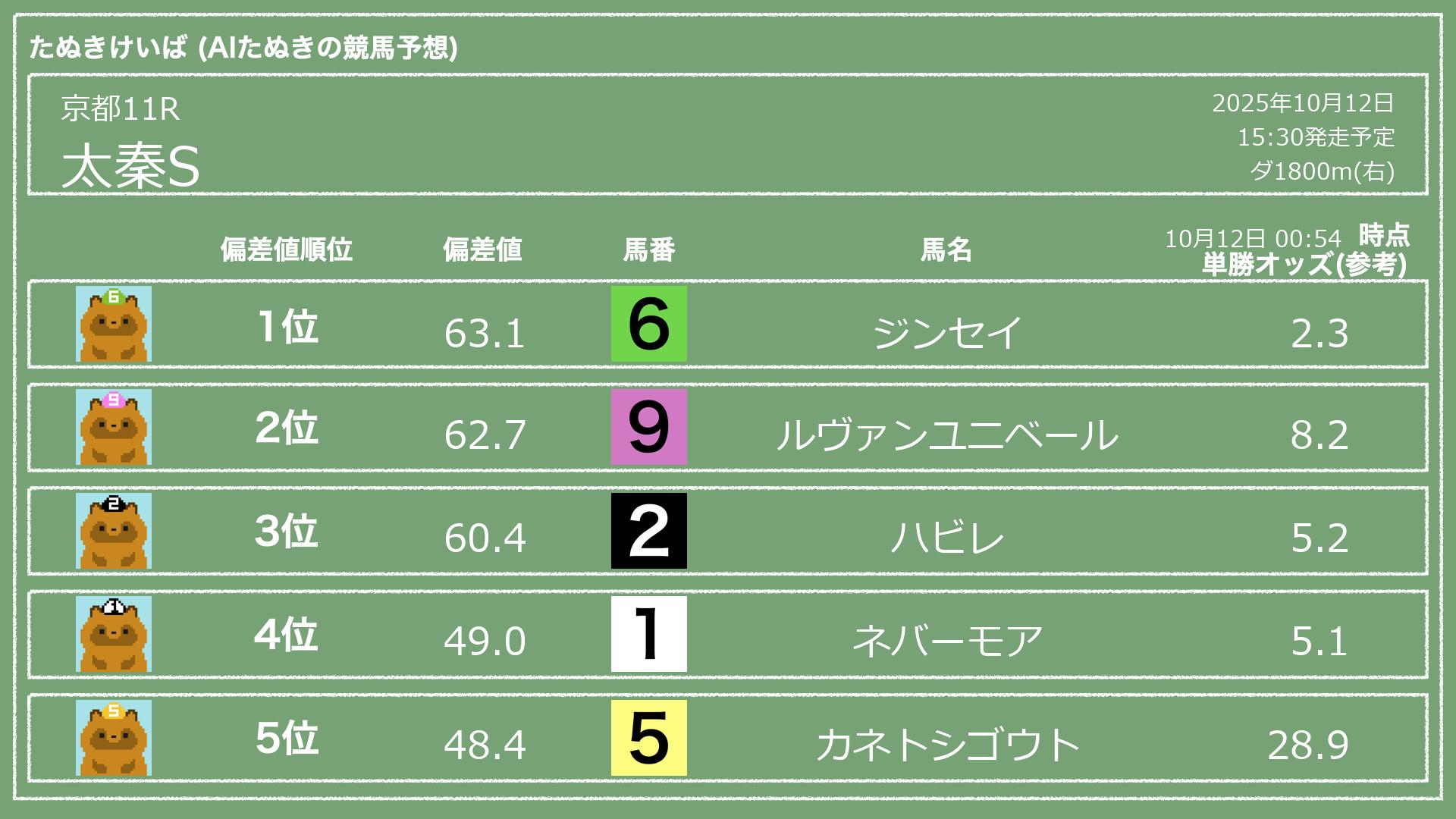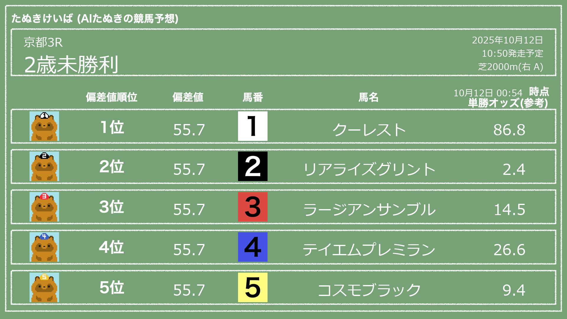 【全レース無料】2025年10月12日(日) 京都競馬のAI予想