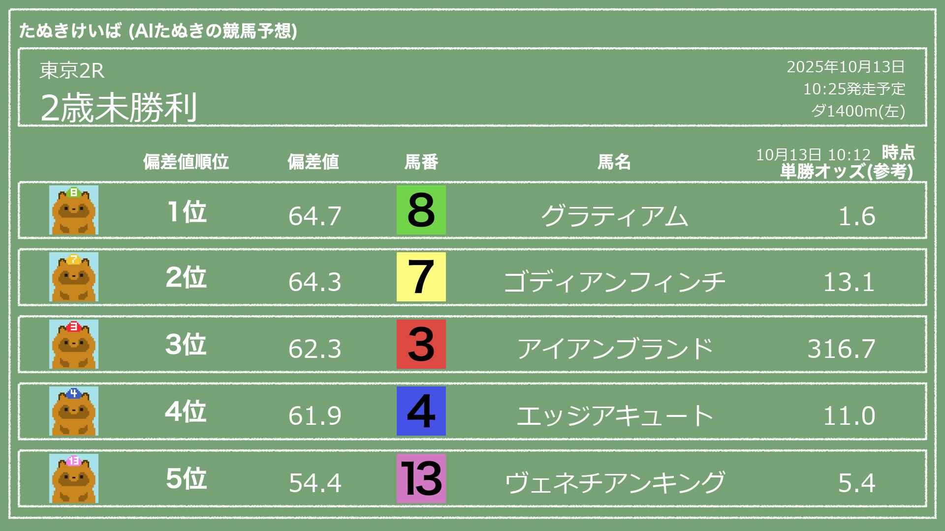 5 | 8 | 13 | ヴェネチアンキング | 2 | 5.4 | 54.4 |