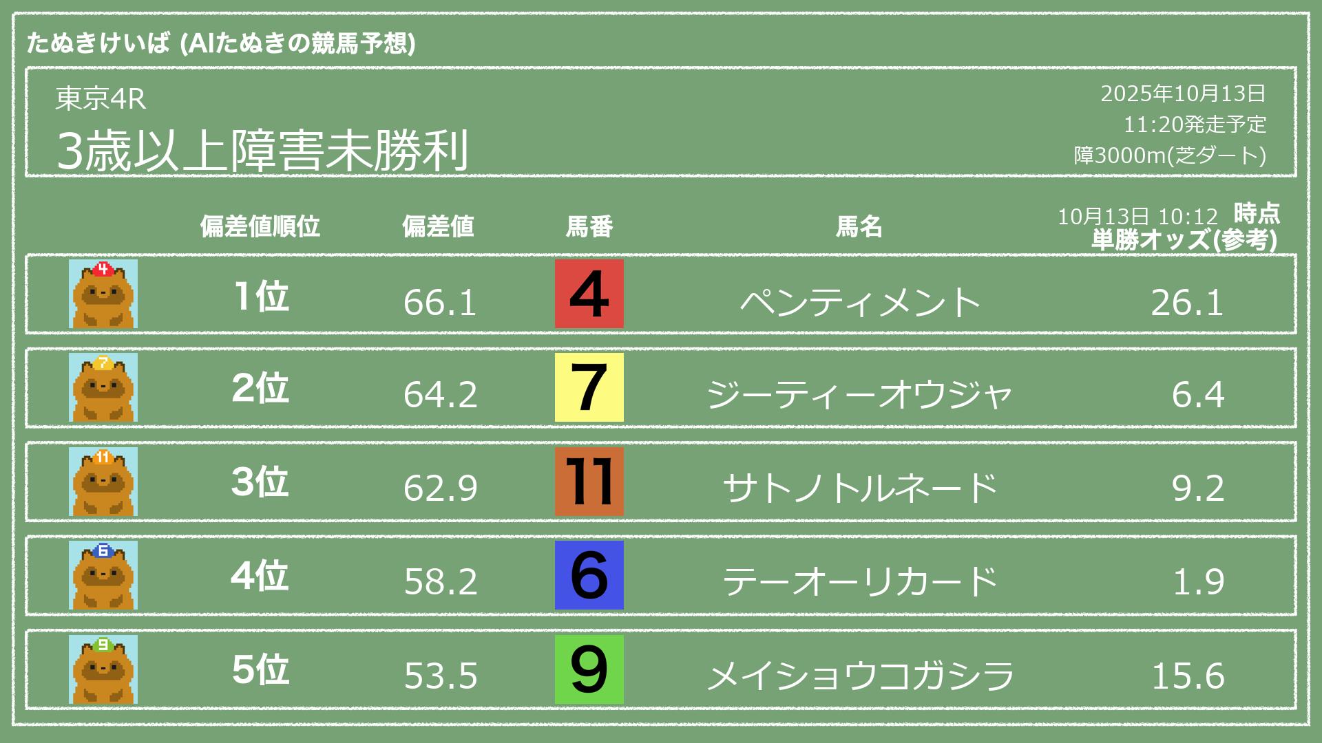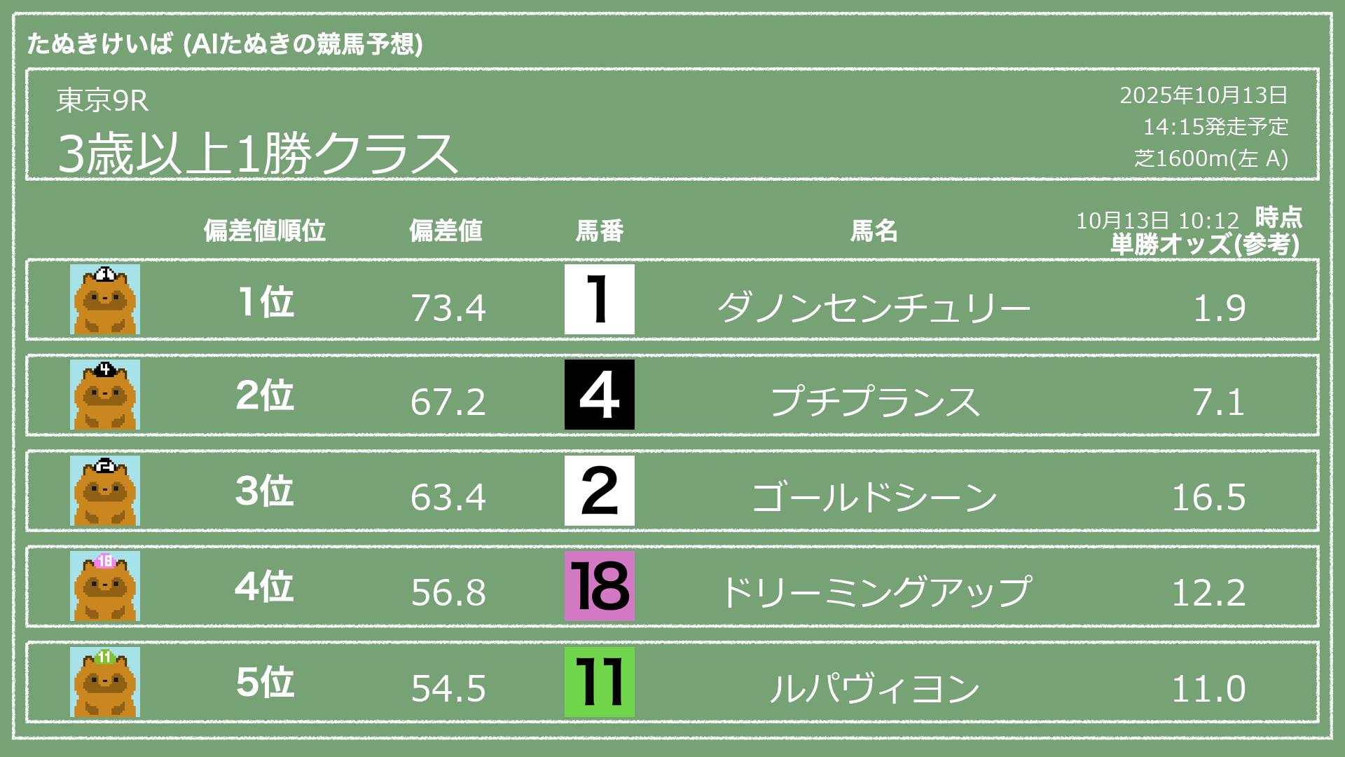 13 | 4 | 4 | マイネルディザイア | 5 | 12.7 | 38.7 |