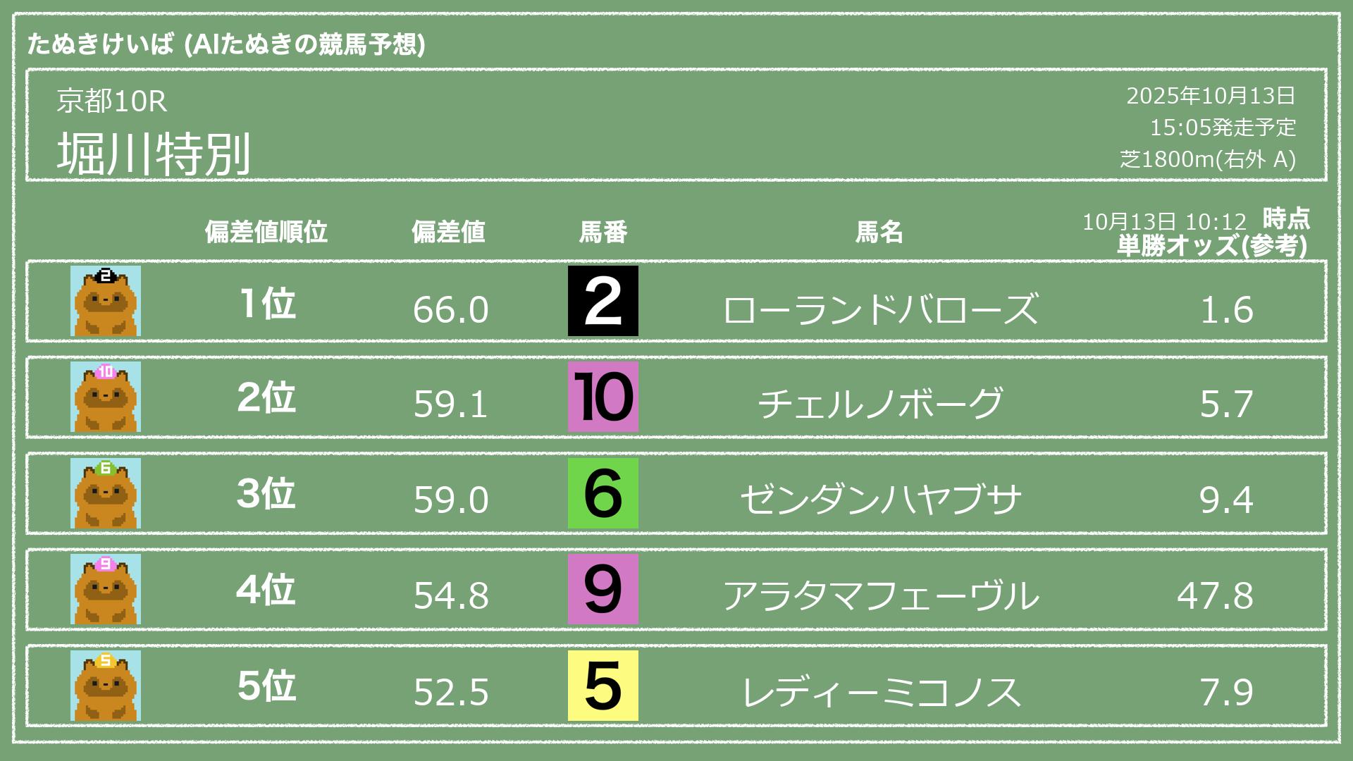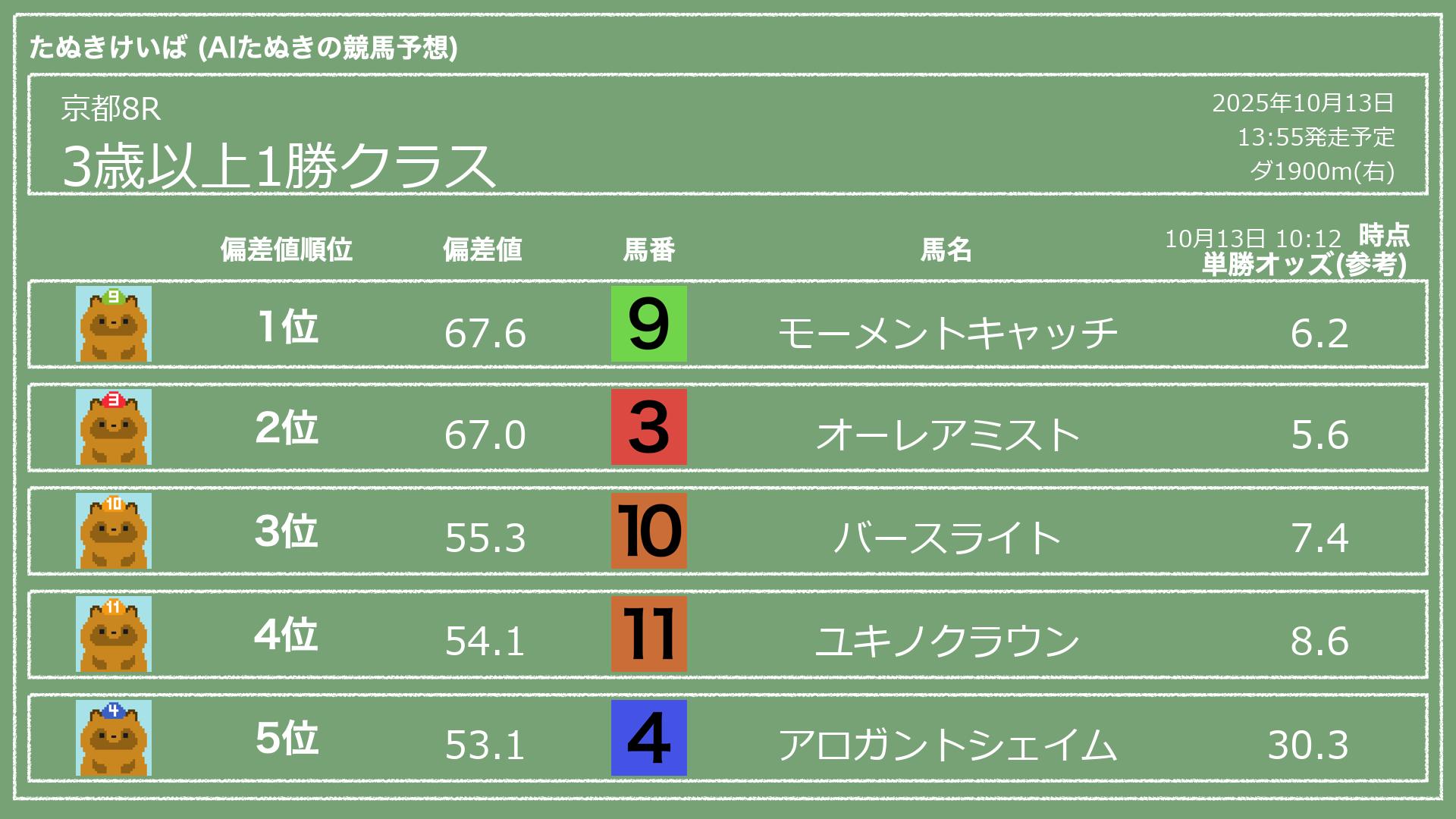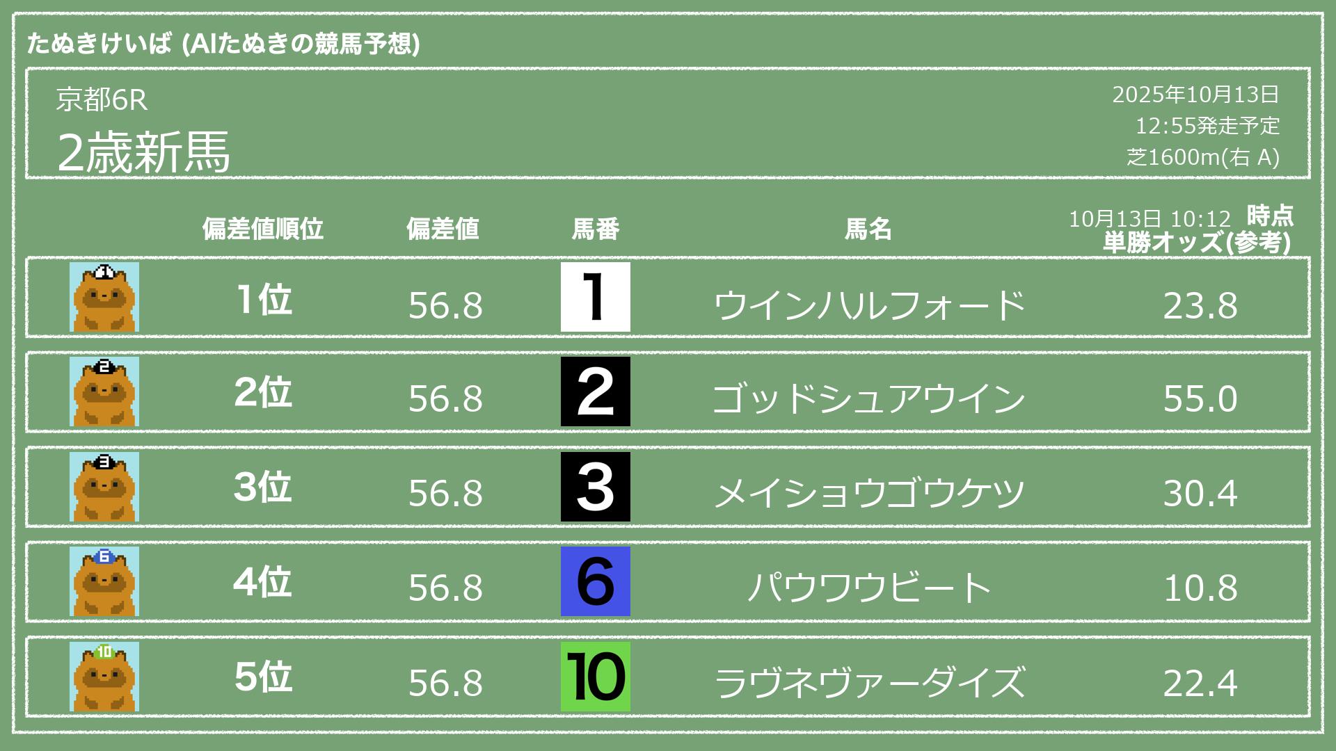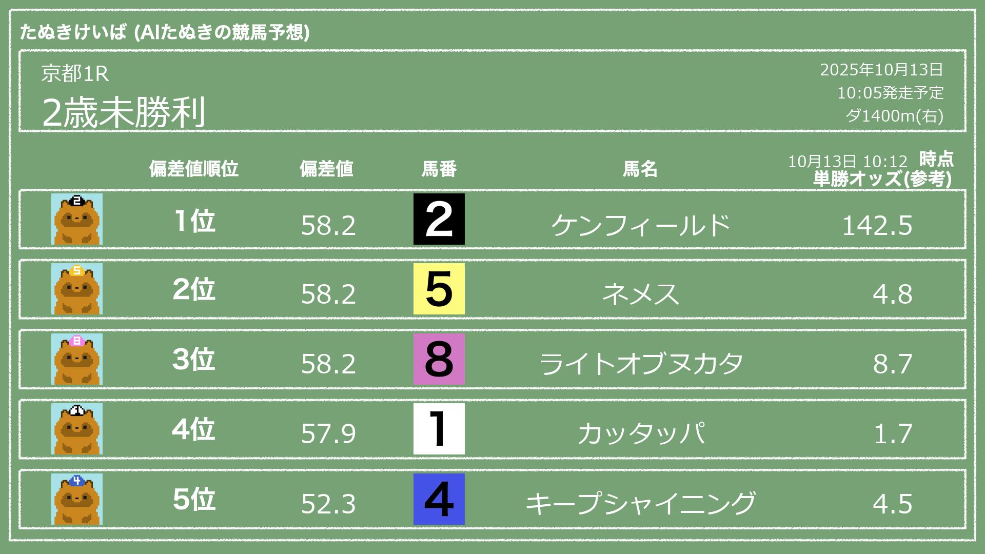 【全レース無料】2025年10月13日(月) 京都競馬のAI予想