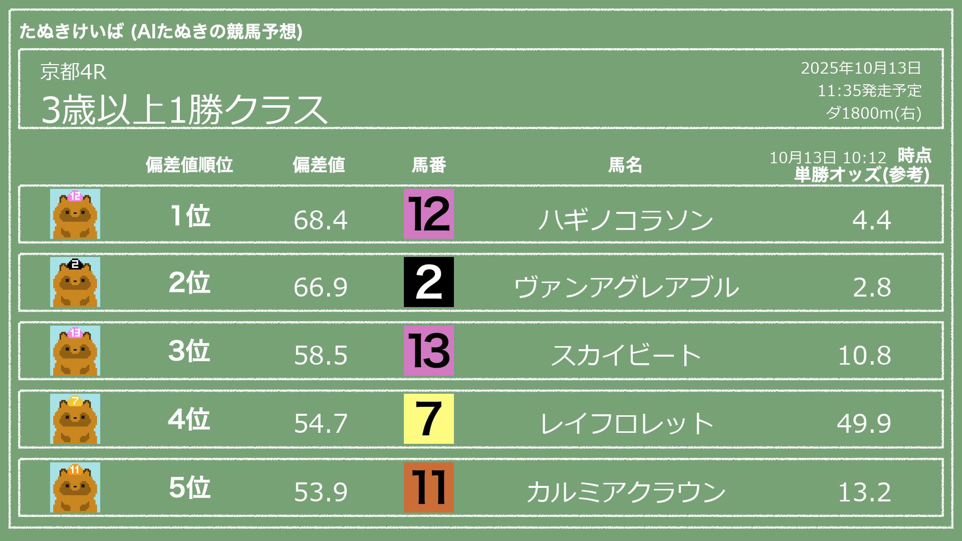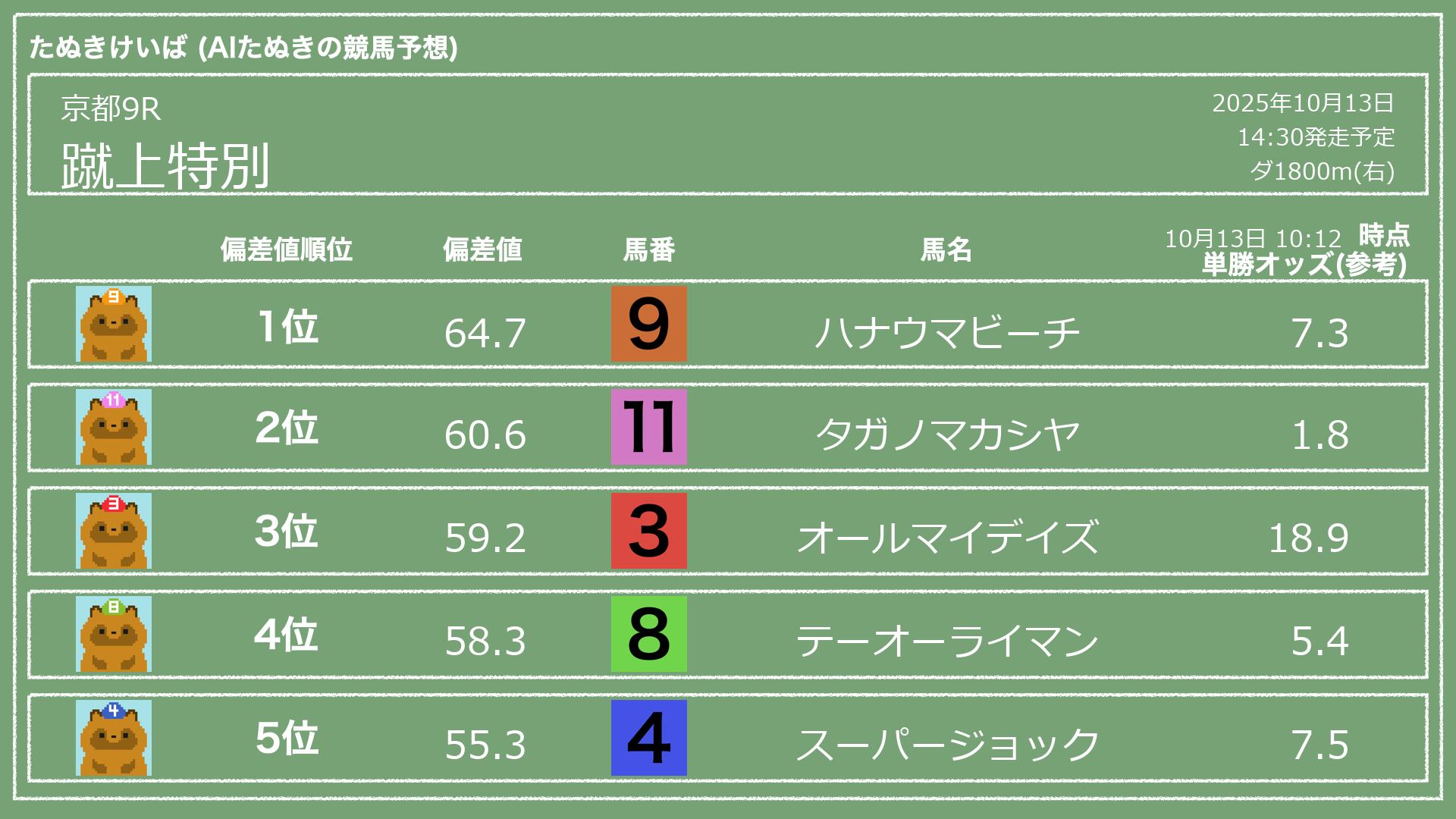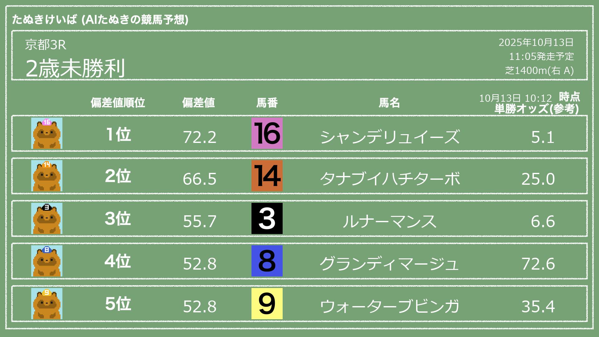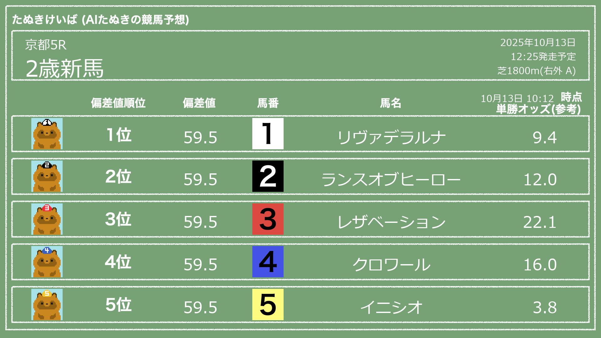 【全レース無料】2025年10月13日(月) 京都競馬のAI予想