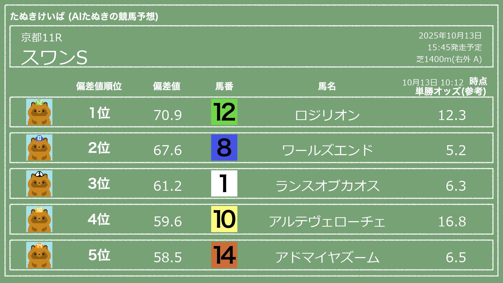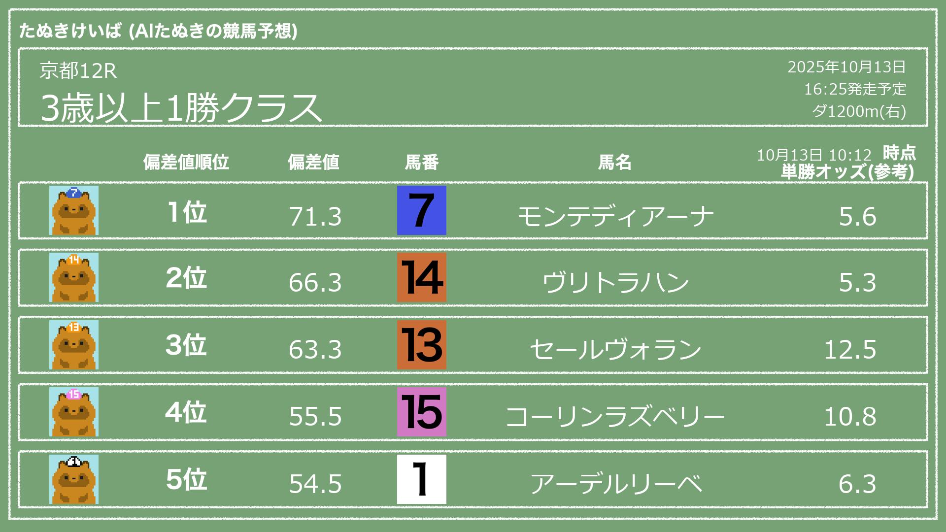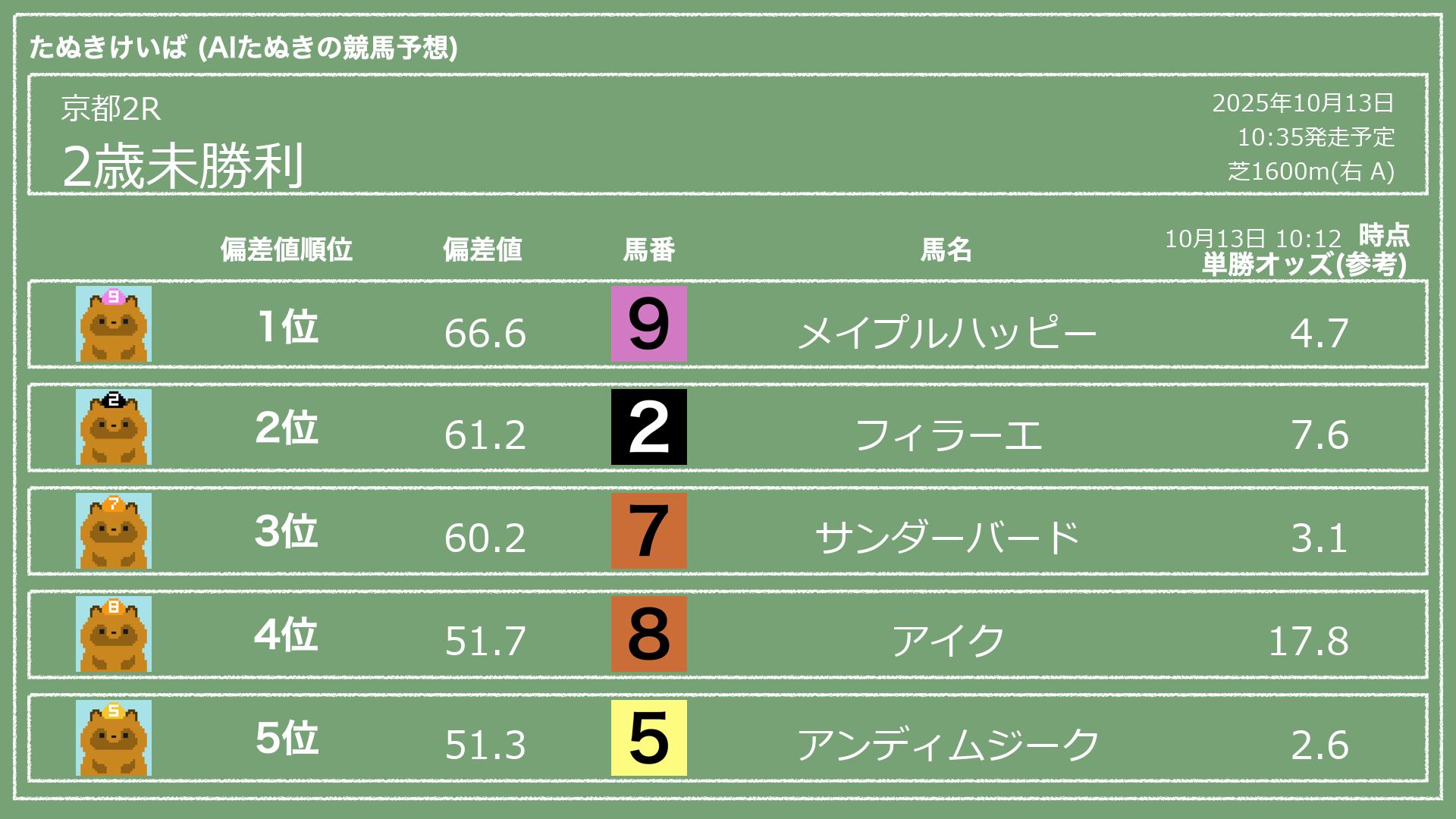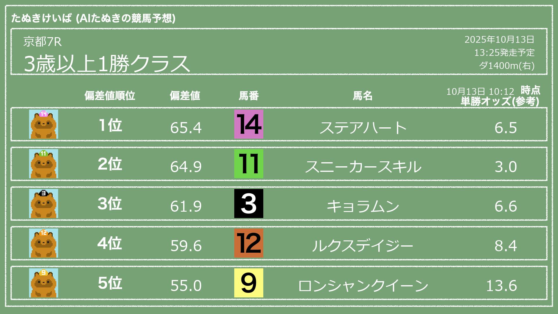 【全レース無料】2025年10月13日(月) 京都競馬のAI予想