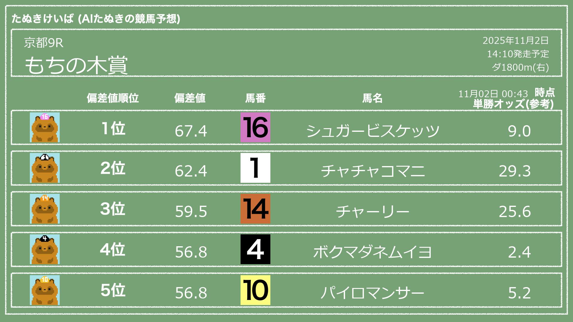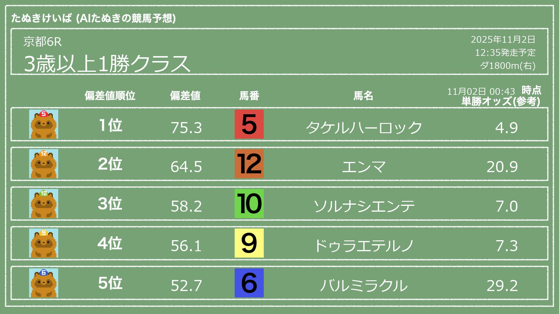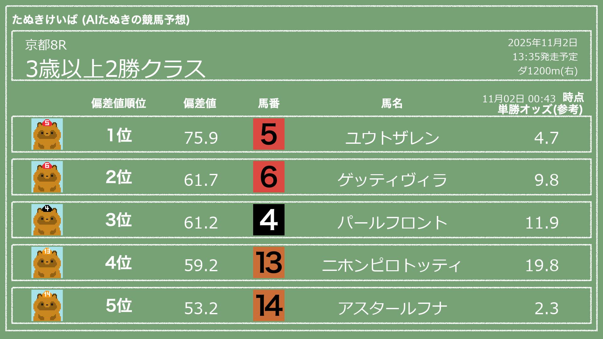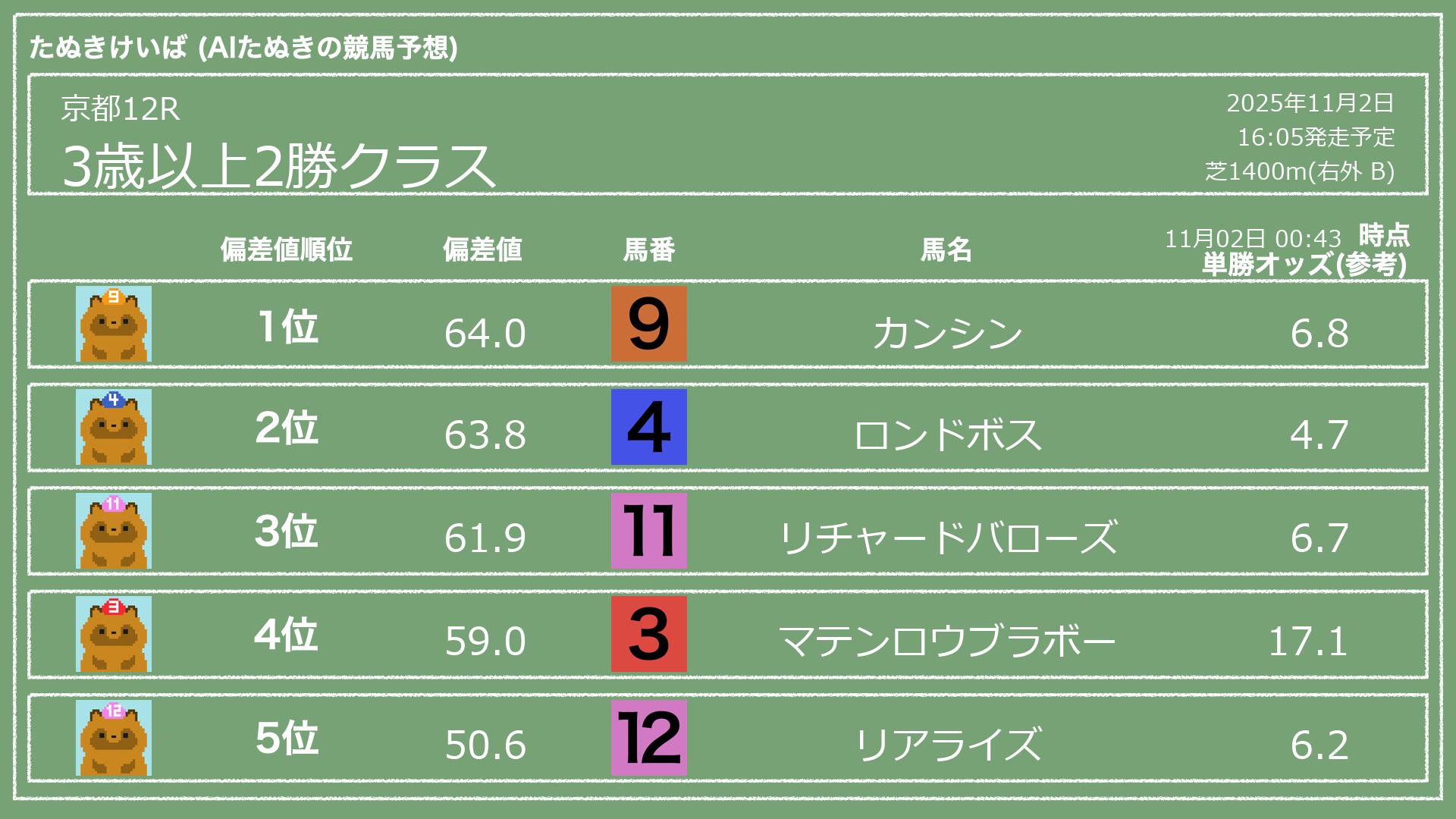 【全レース無料】2025年11月2日(日) 京都競馬のAI予想