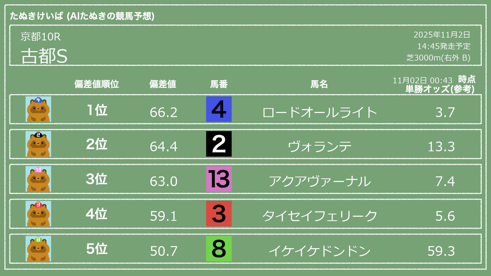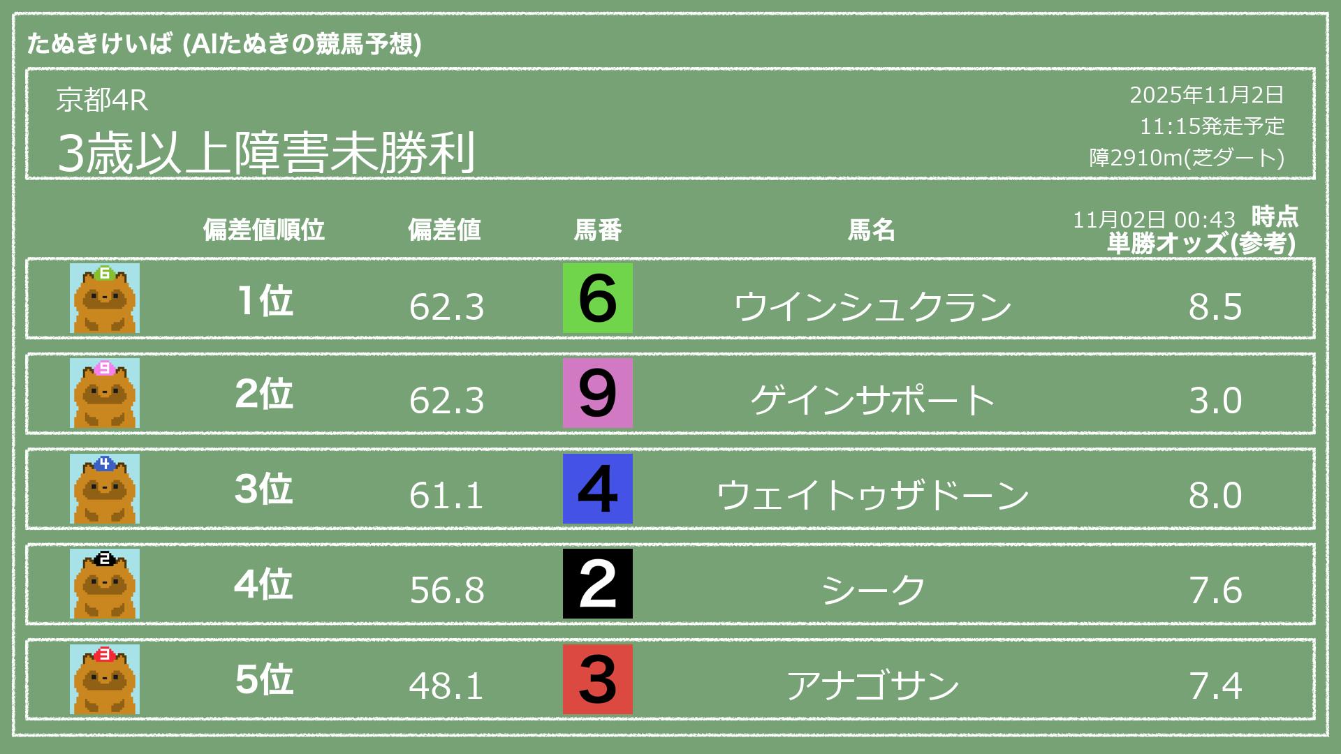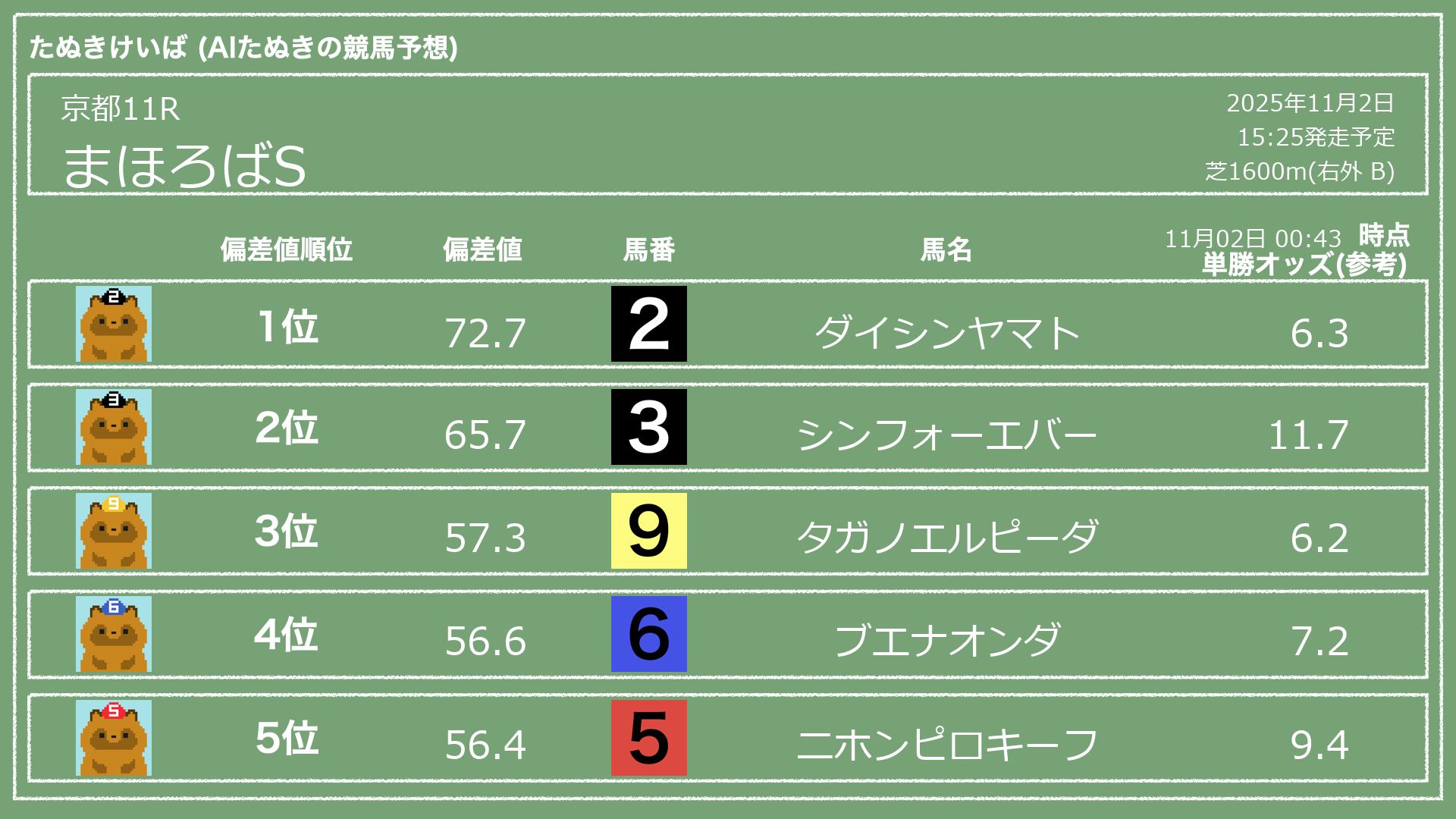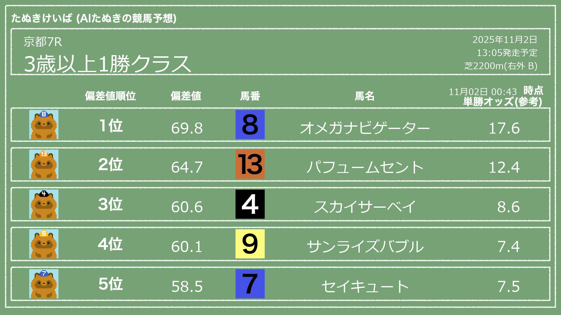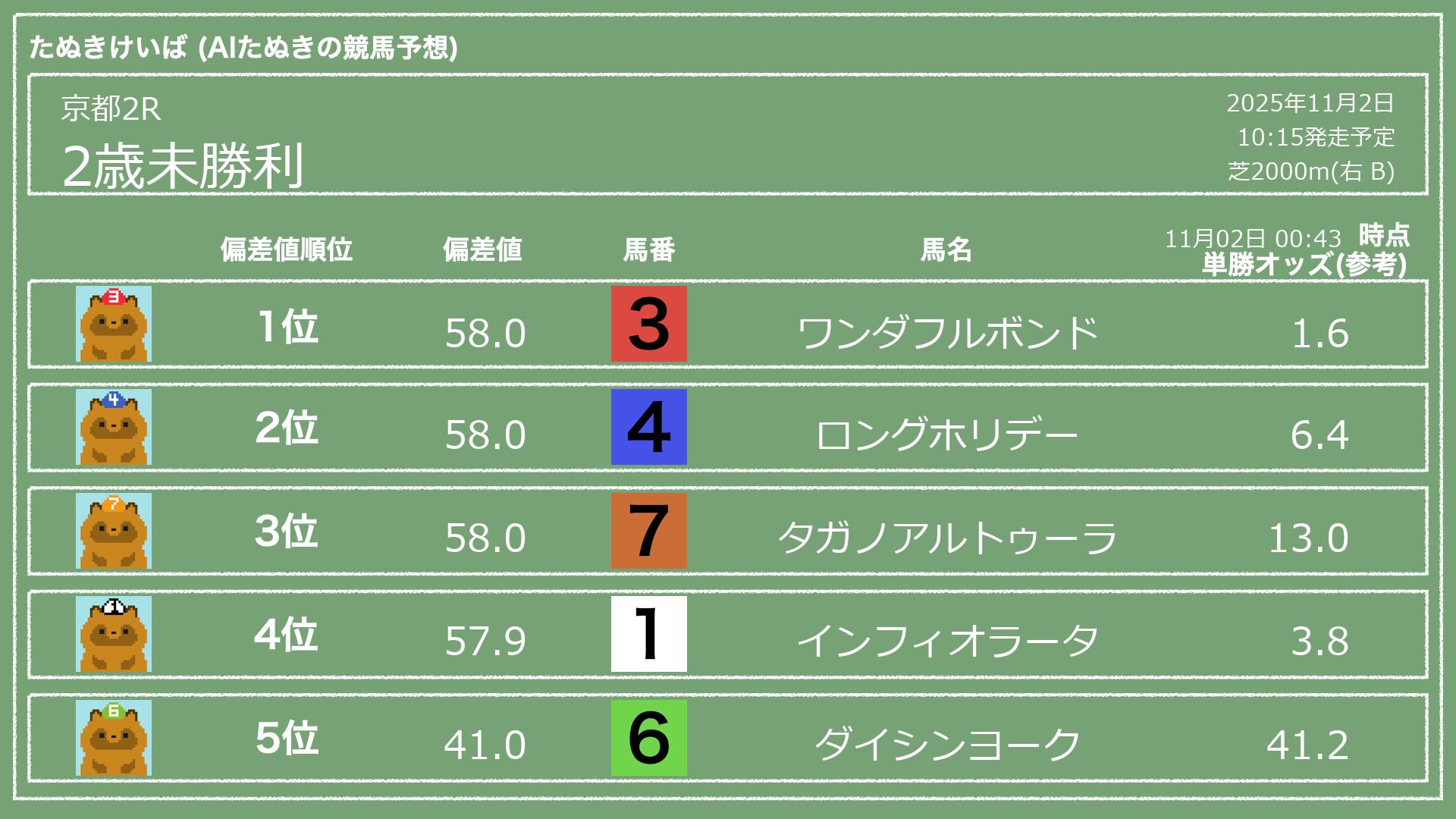 【全レース無料】2025年11月2日(日) 京都競馬のAI予想