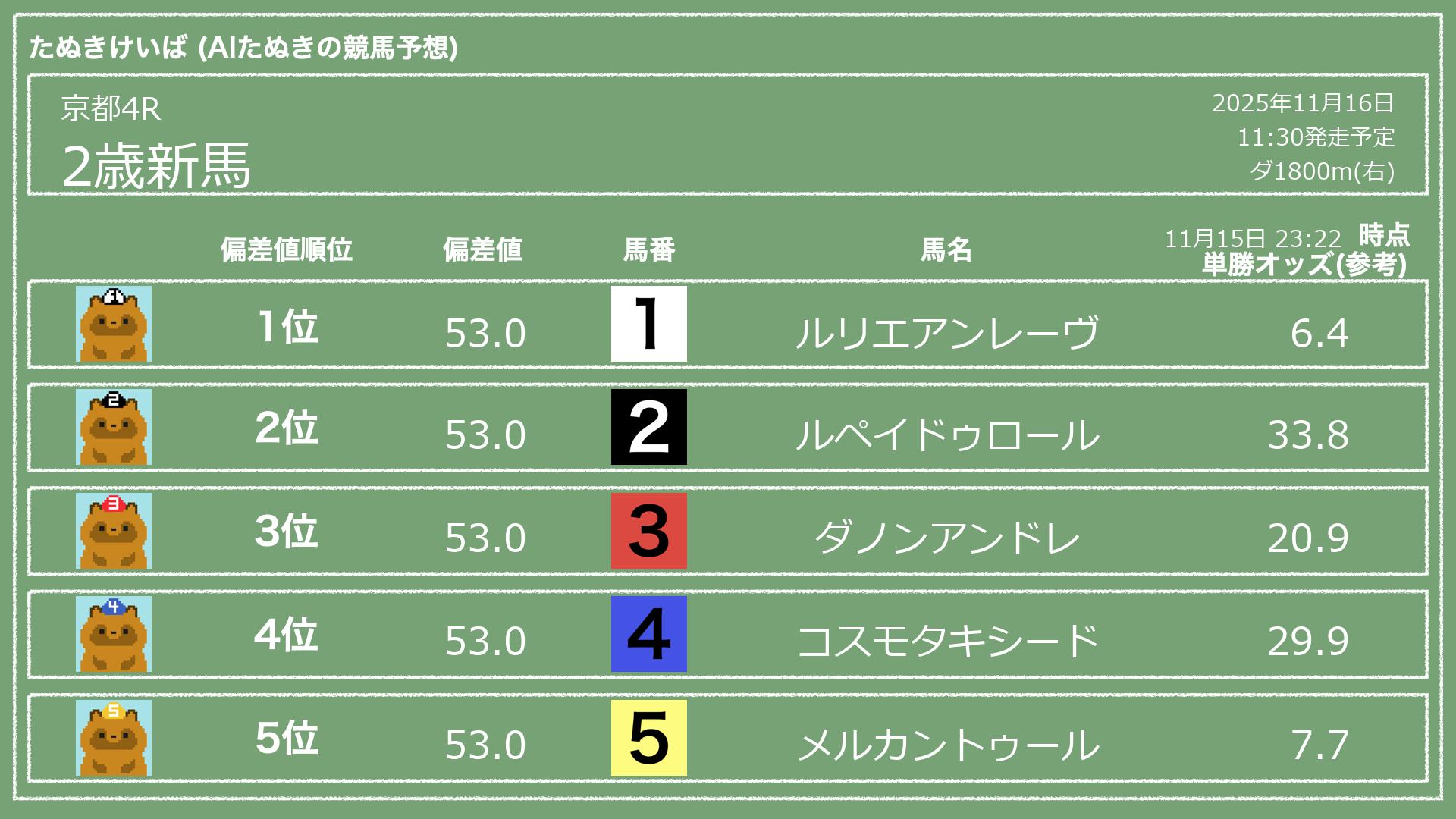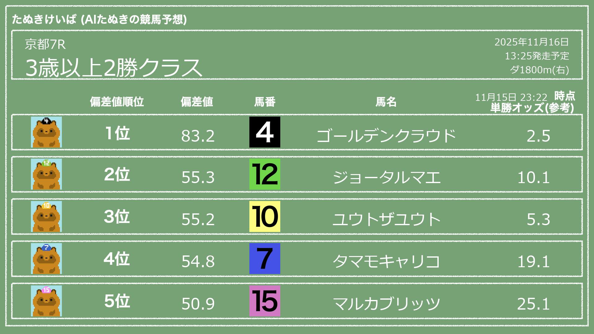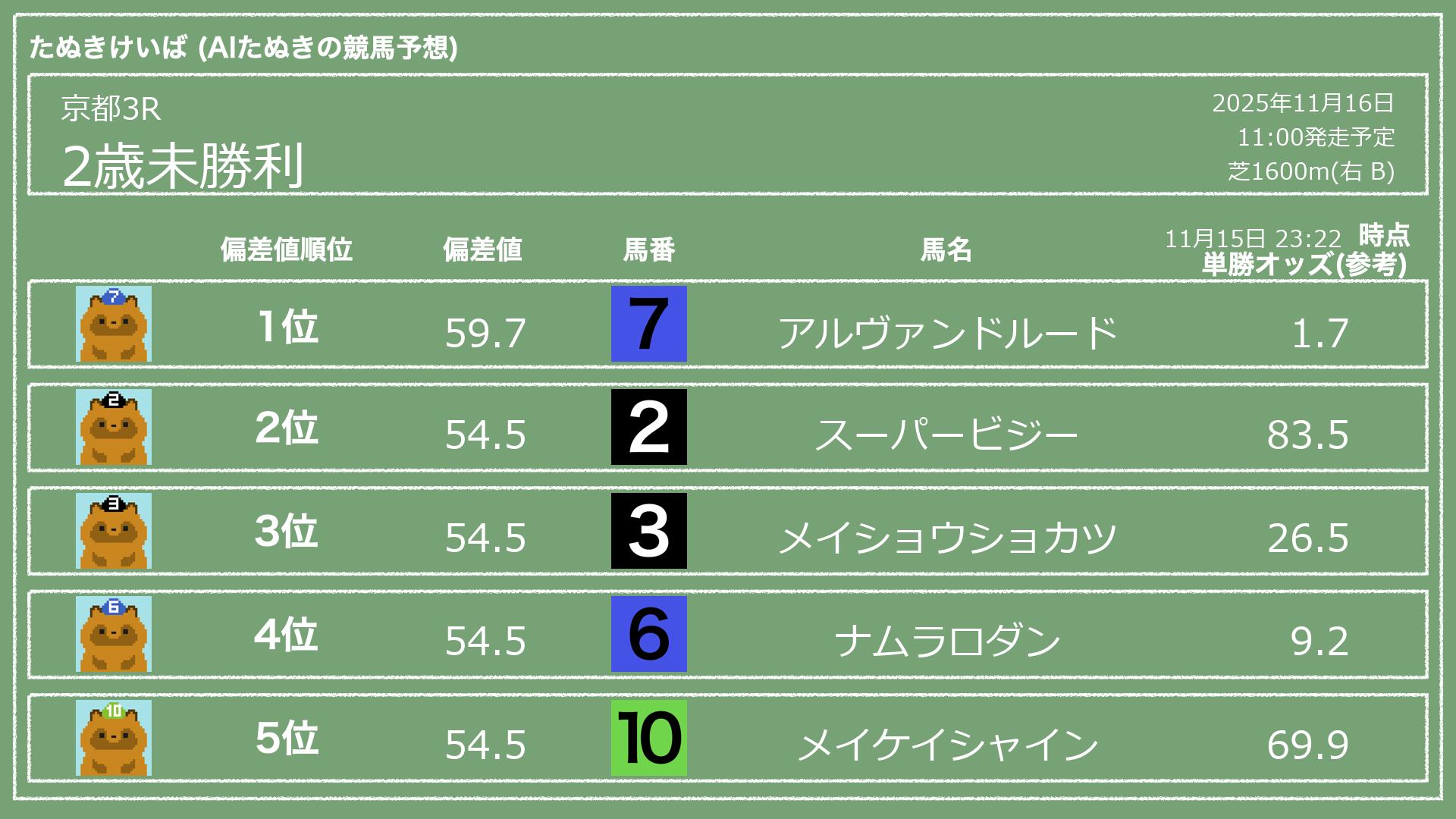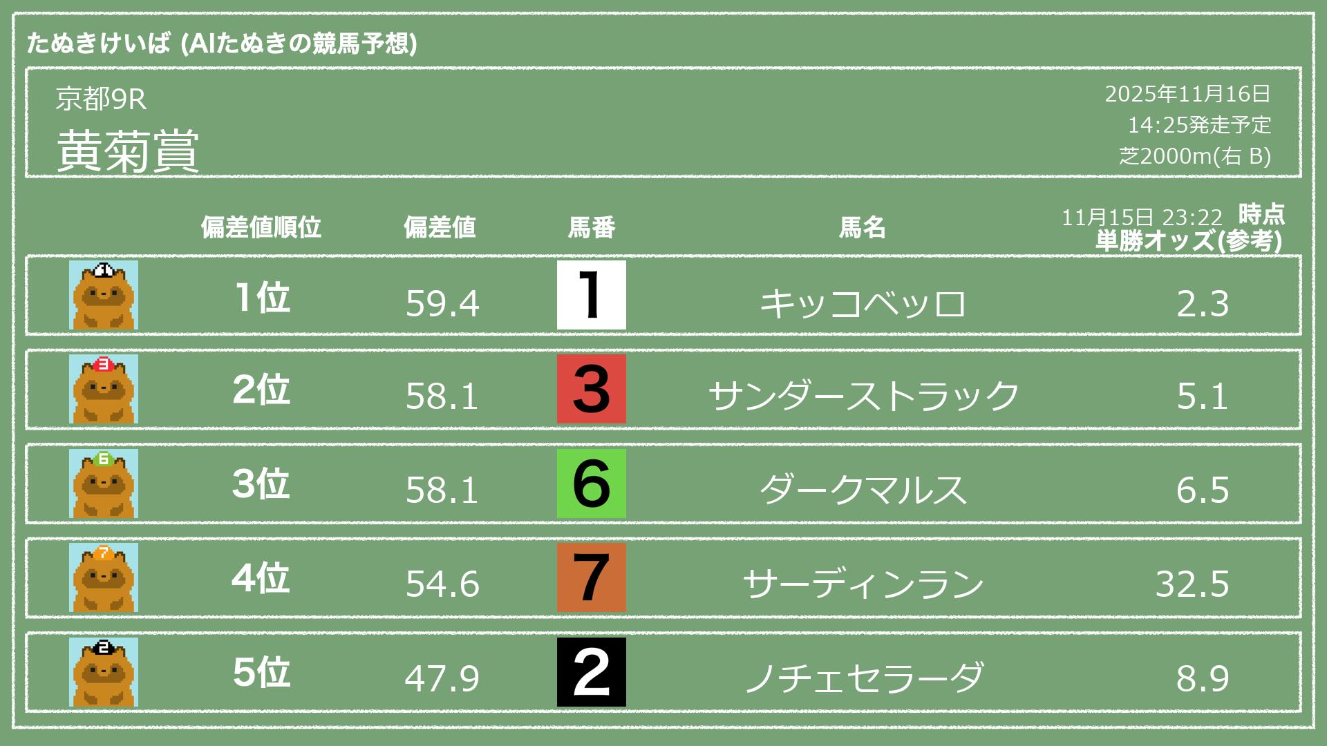 【全レース無料】2025年11月16日(日) 京都競馬のAI予想