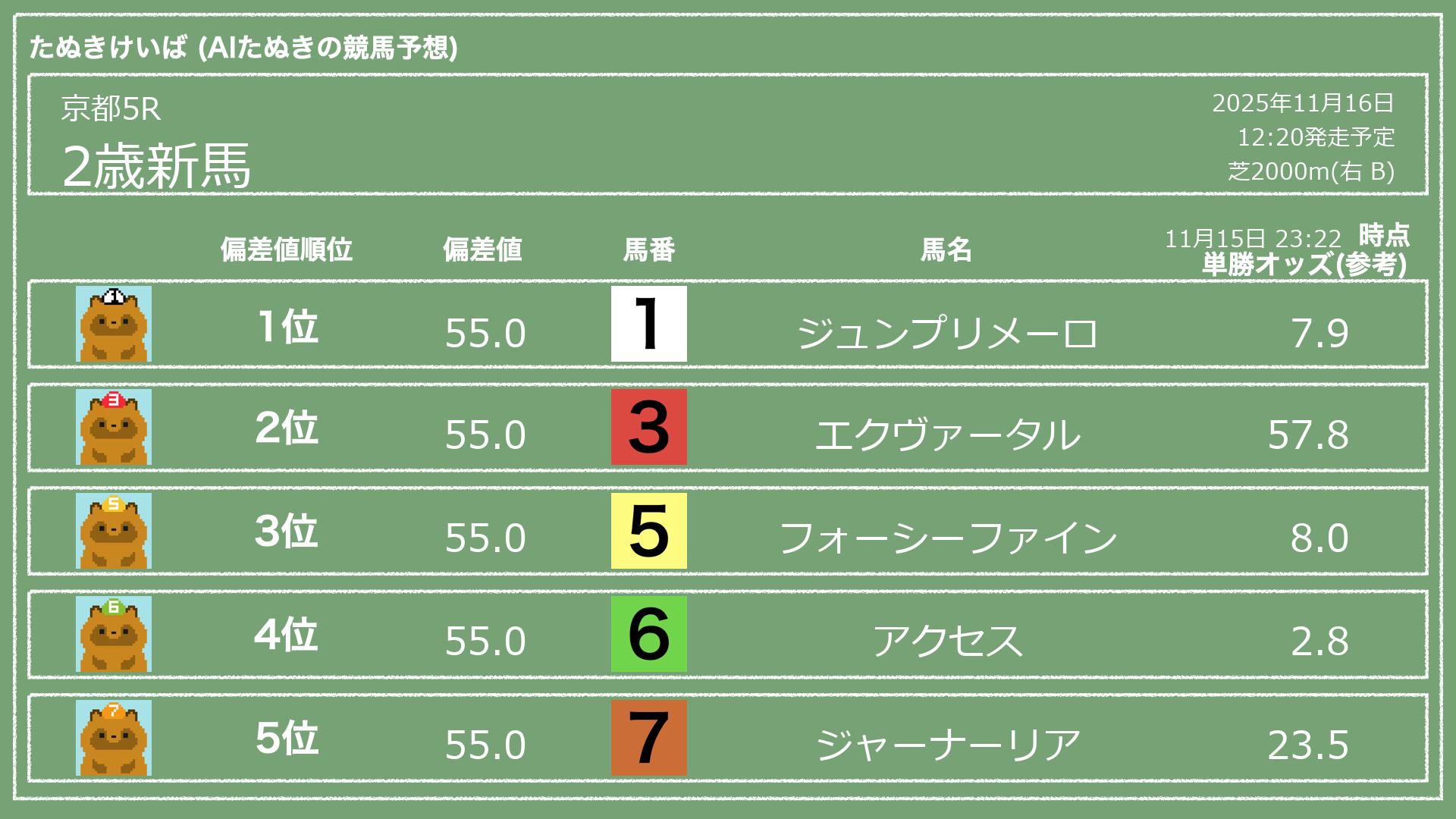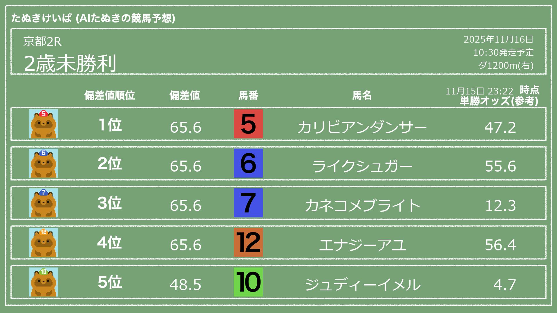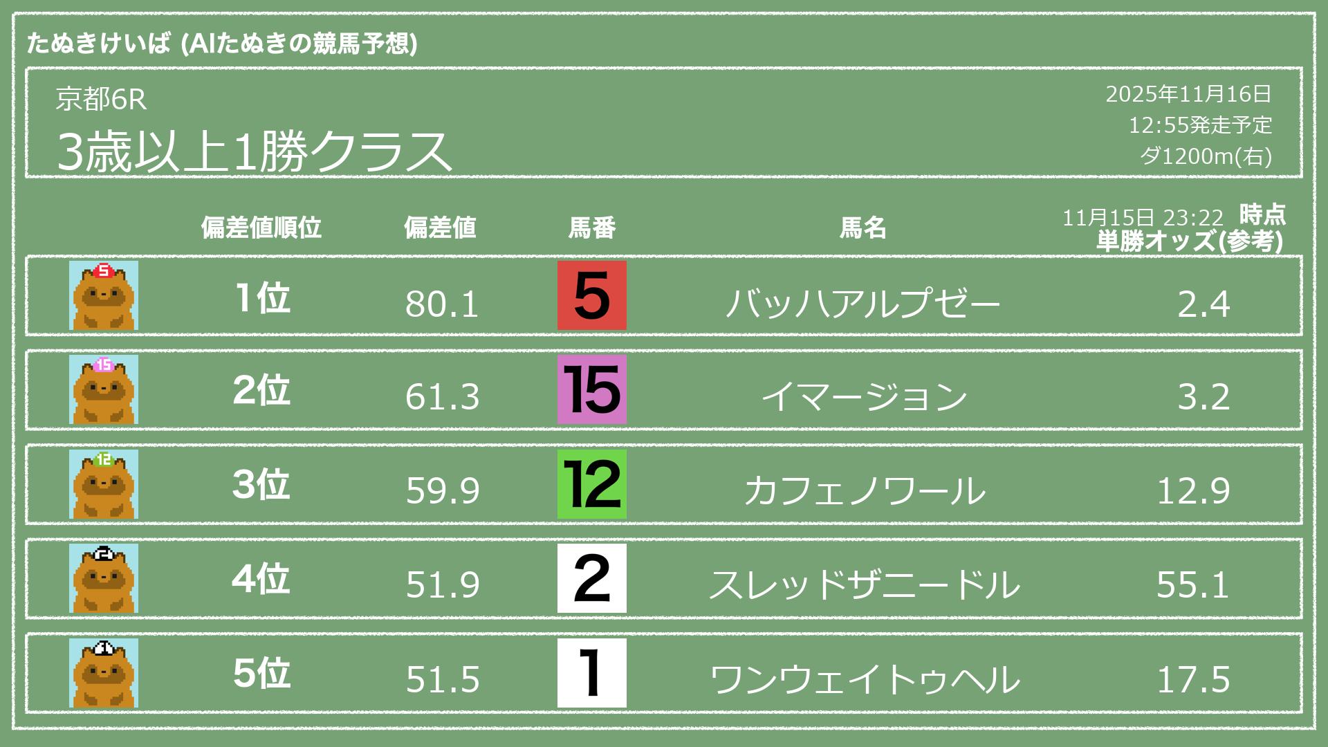 【全レース無料】2025年11月16日(日) 京都競馬のAI予想