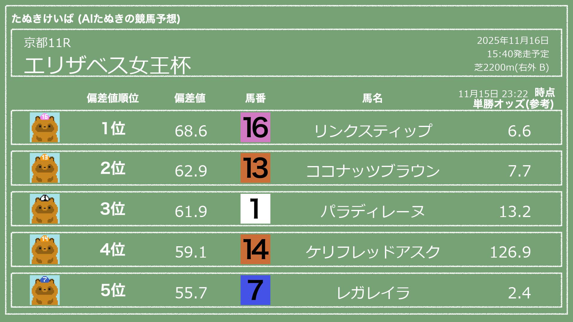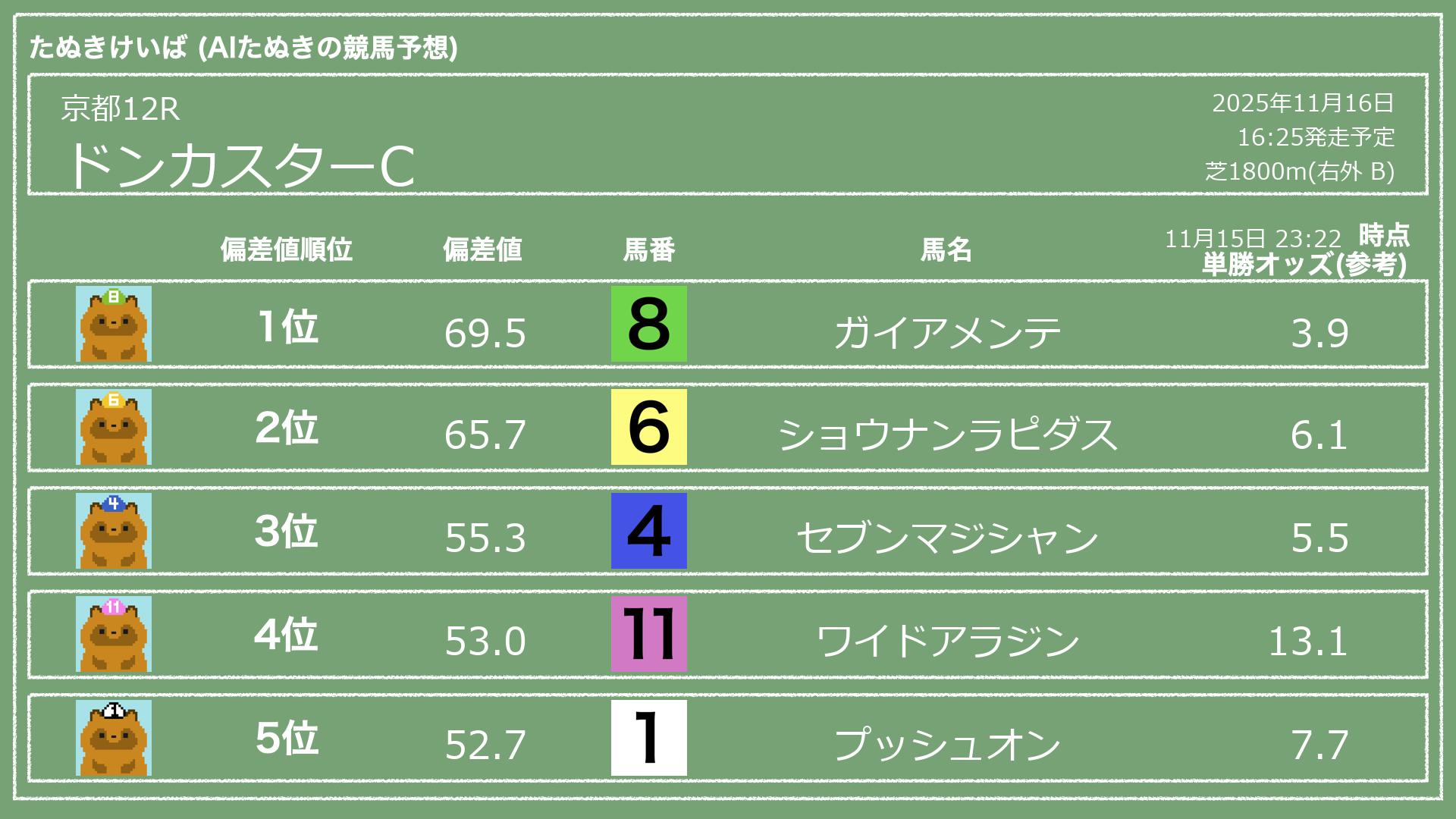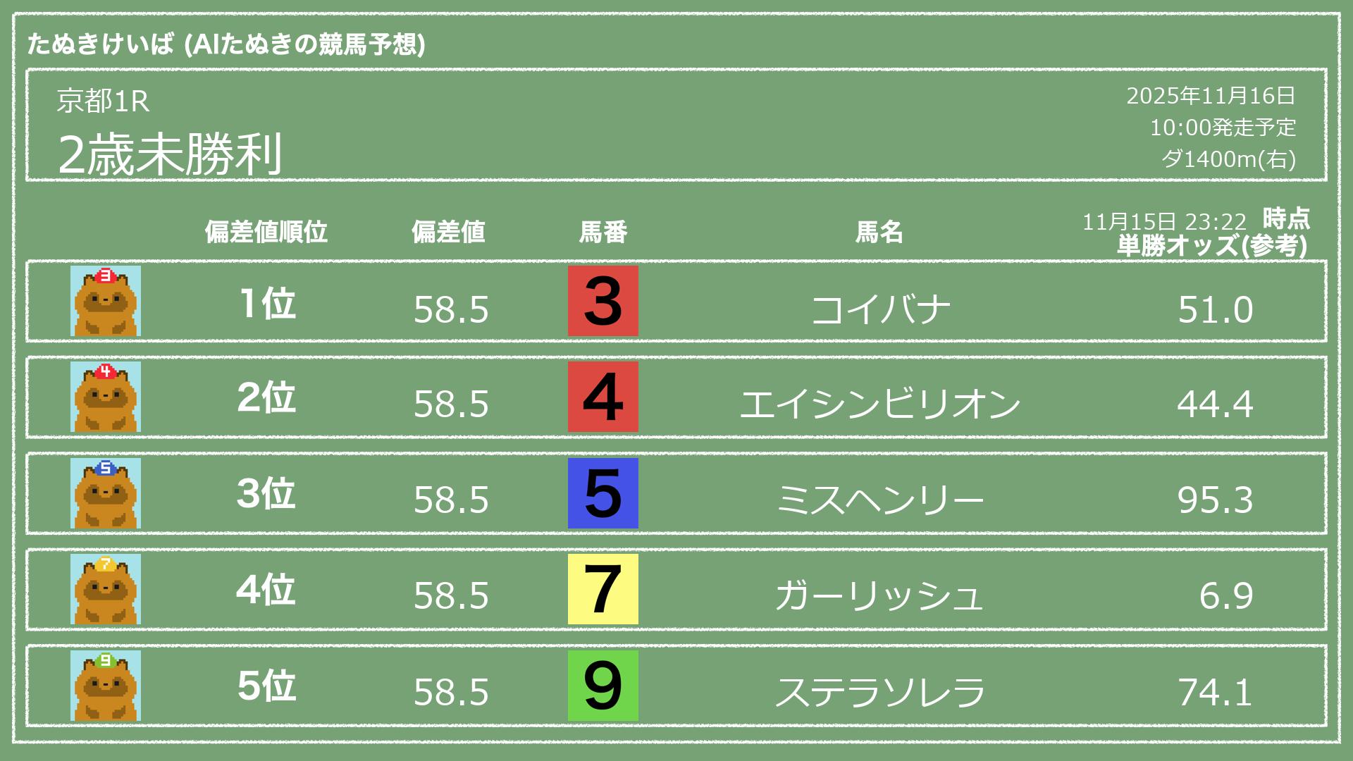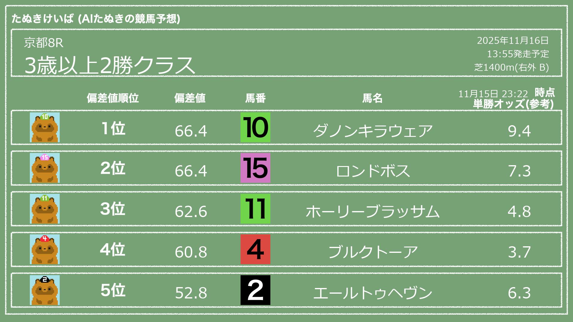 【全レース無料】2025年11月16日(日) 京都競馬のAI予想