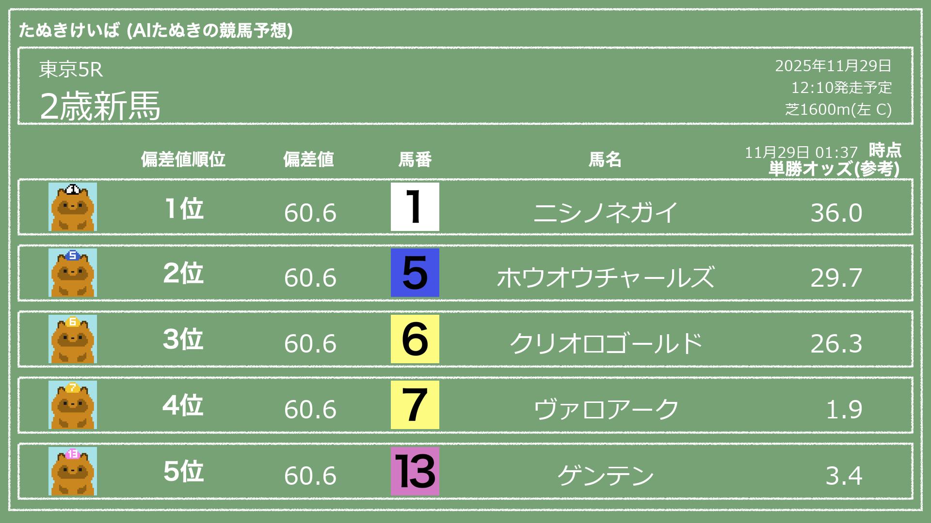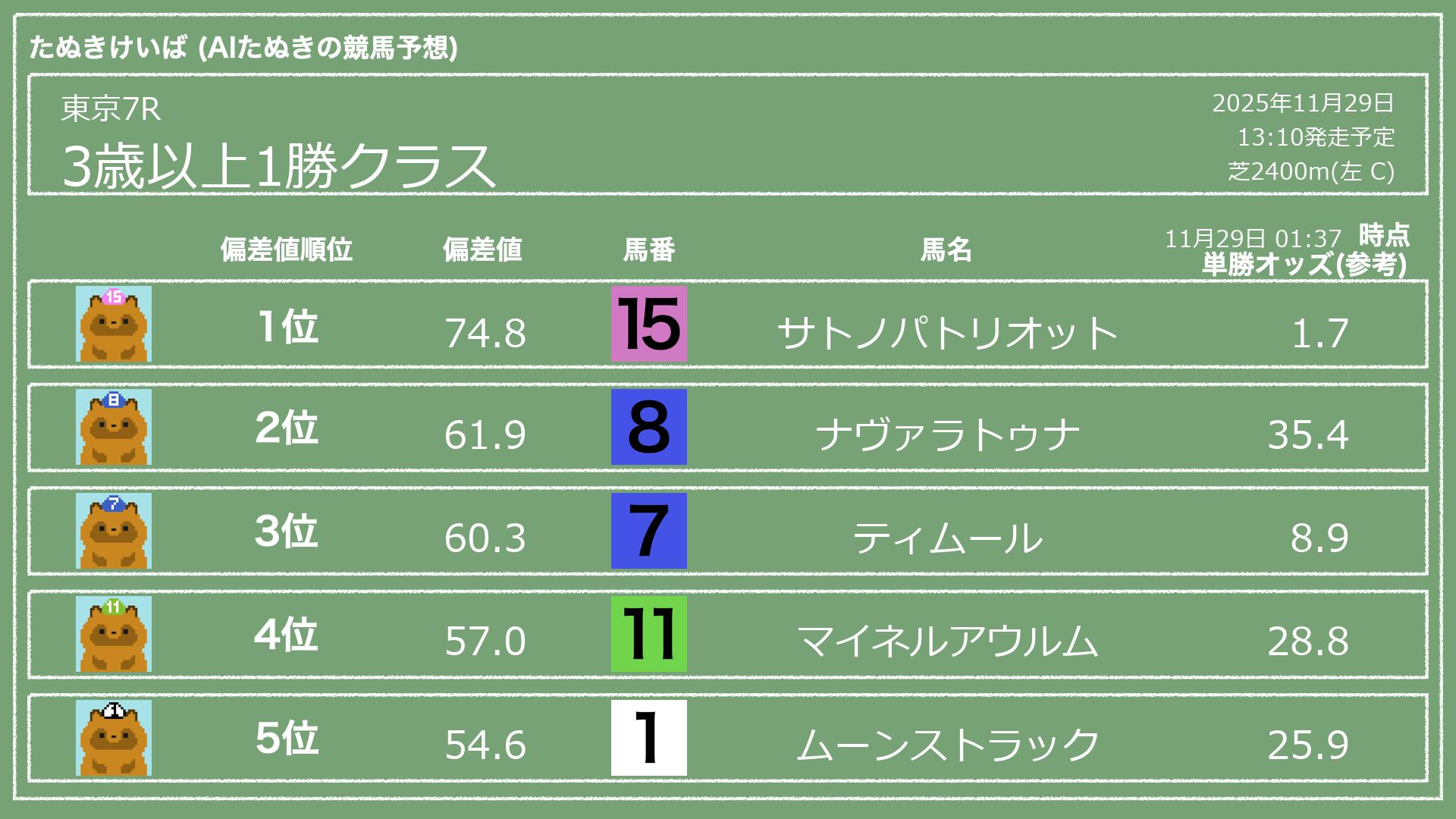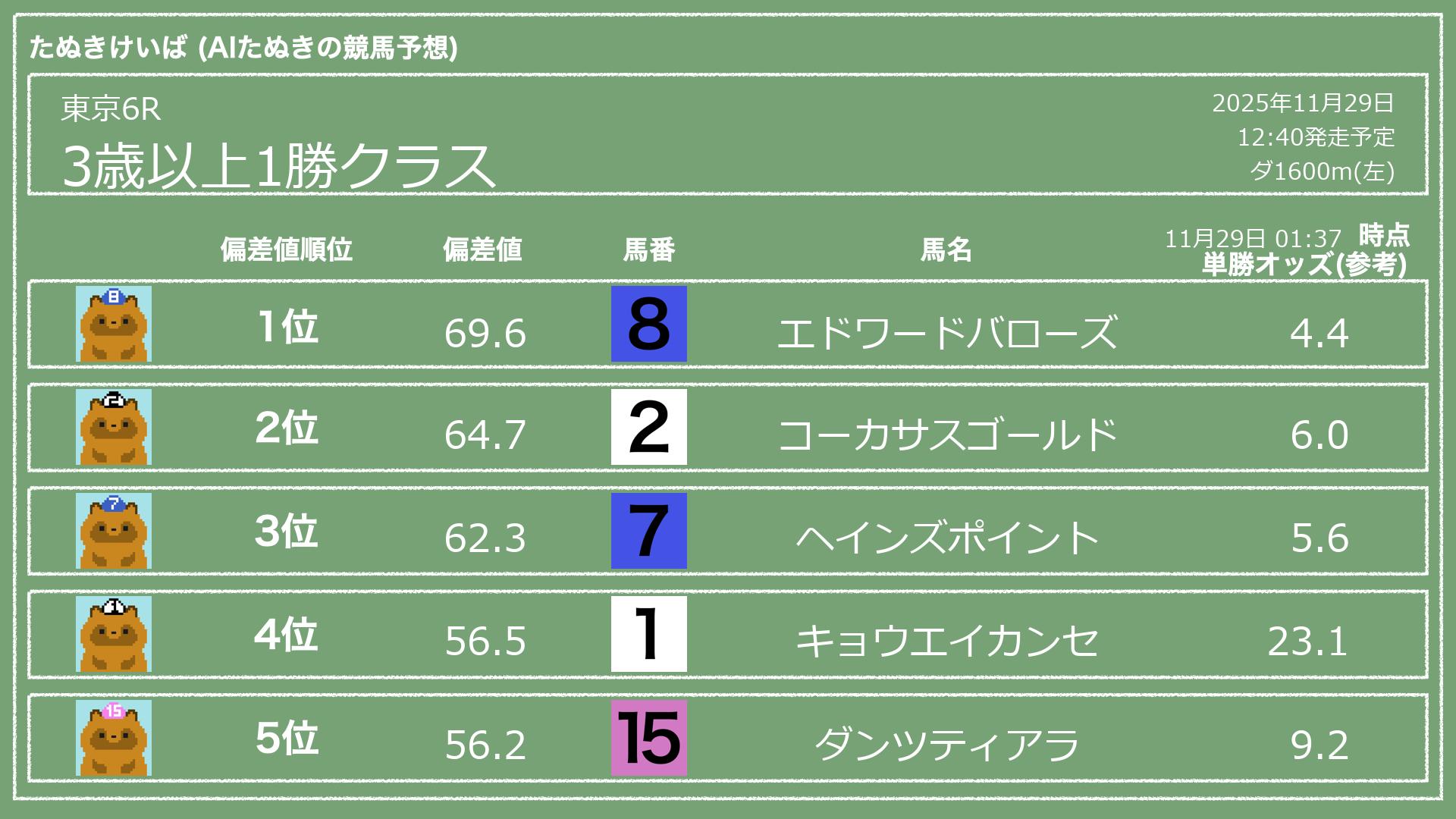 【全レース無料】2025年11月29日(土) 東京競馬のAI予想