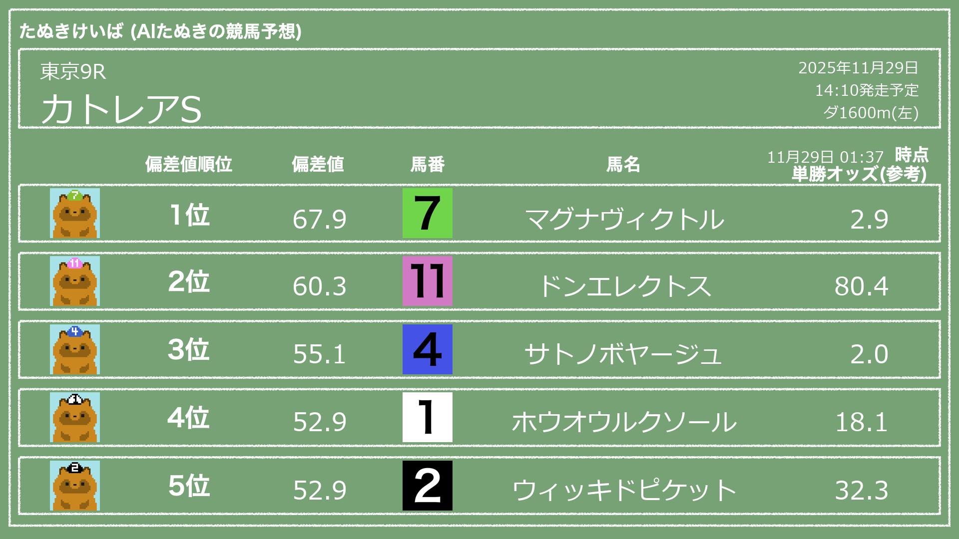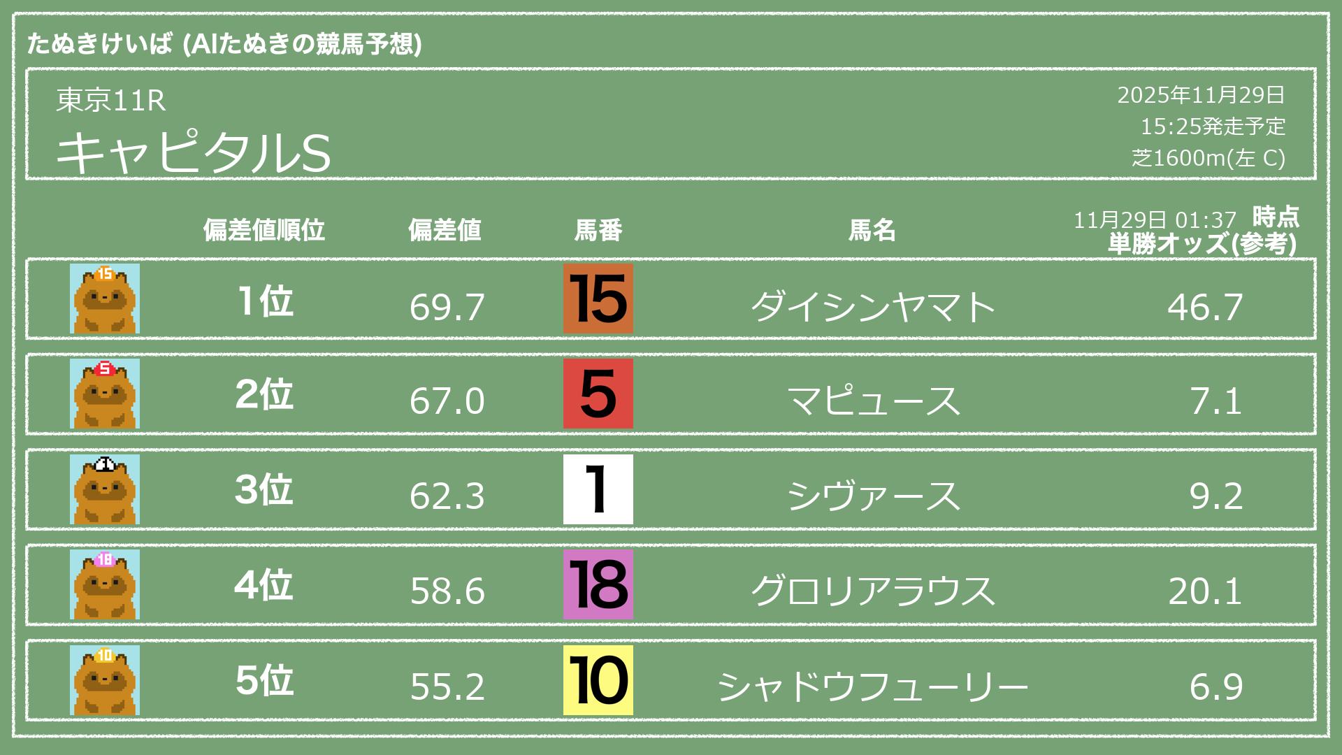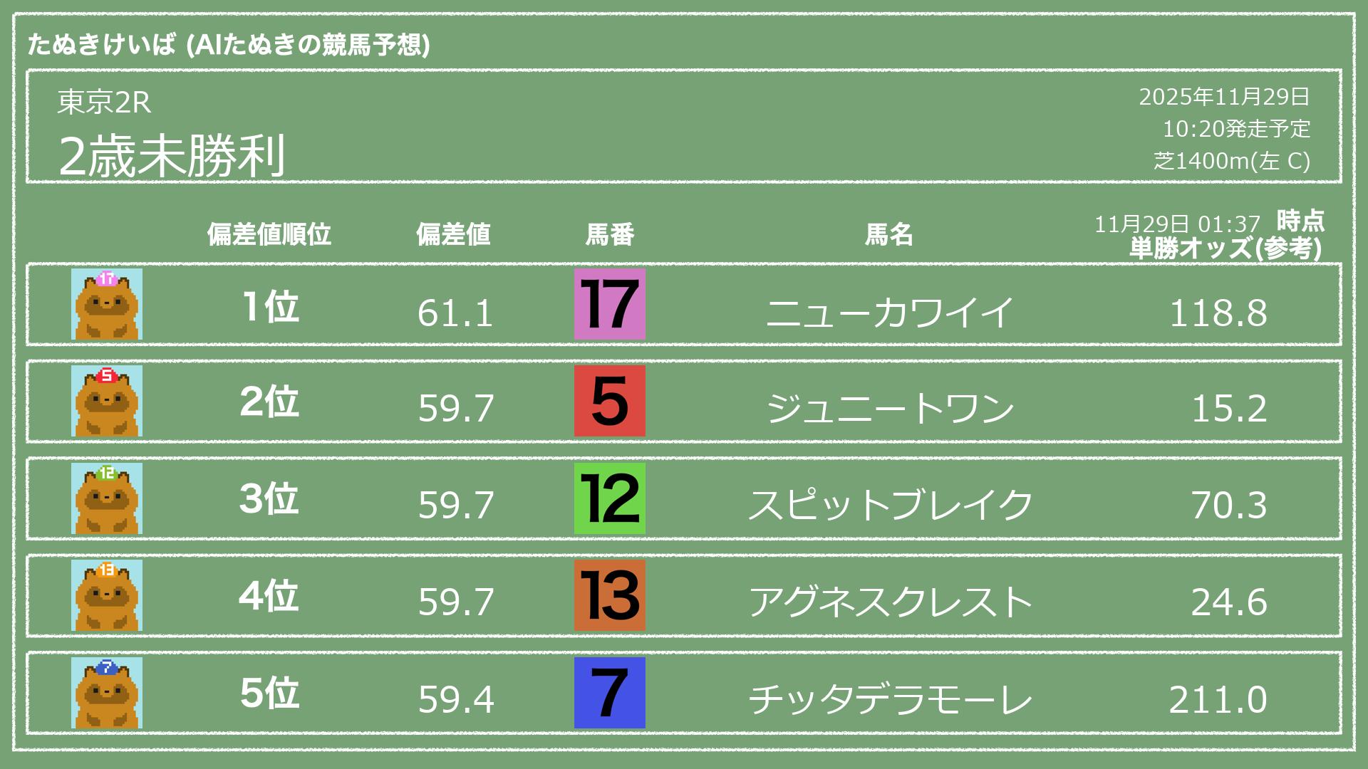 【全レース無料】2025年11月29日(土) 東京競馬のAI予想