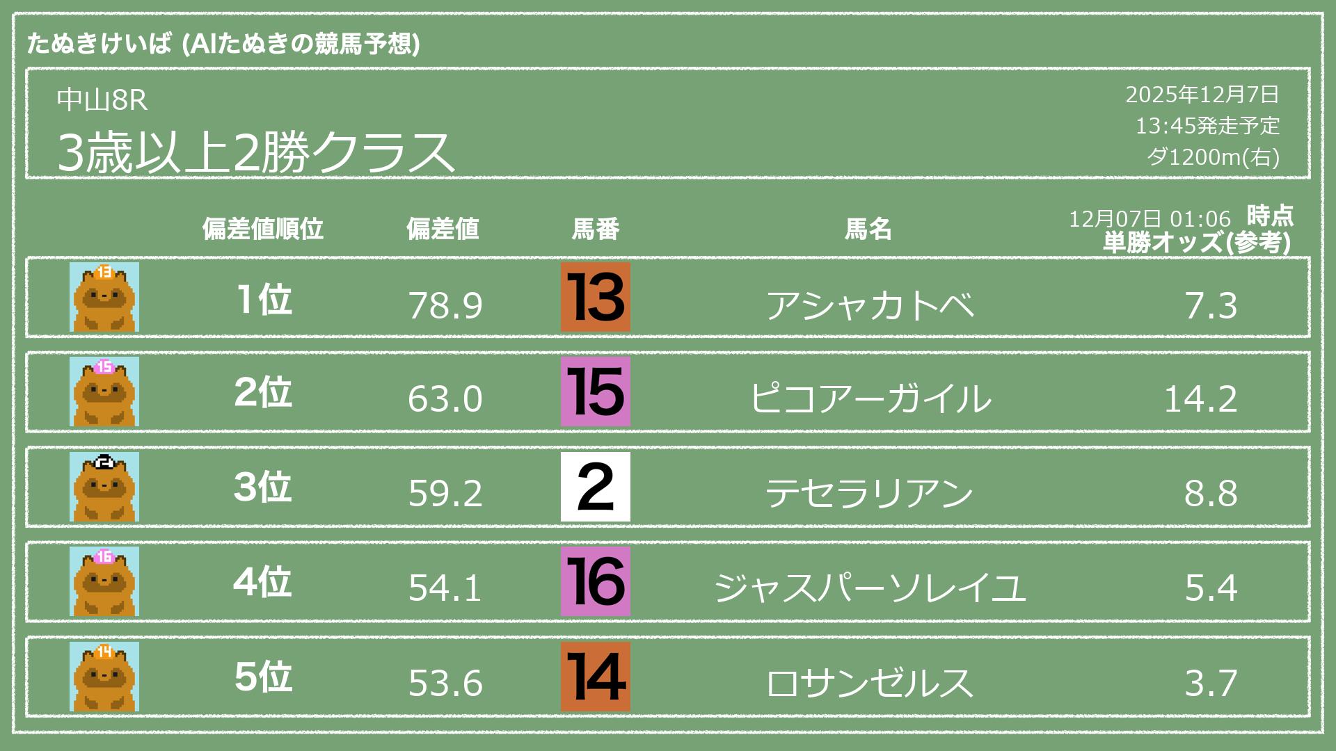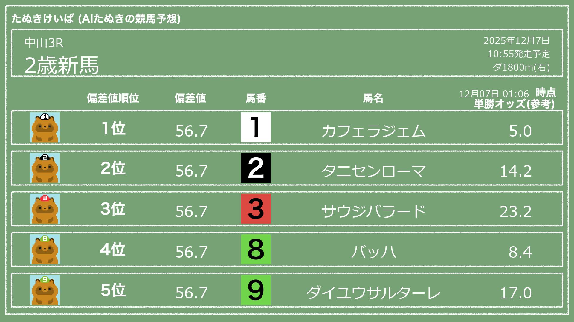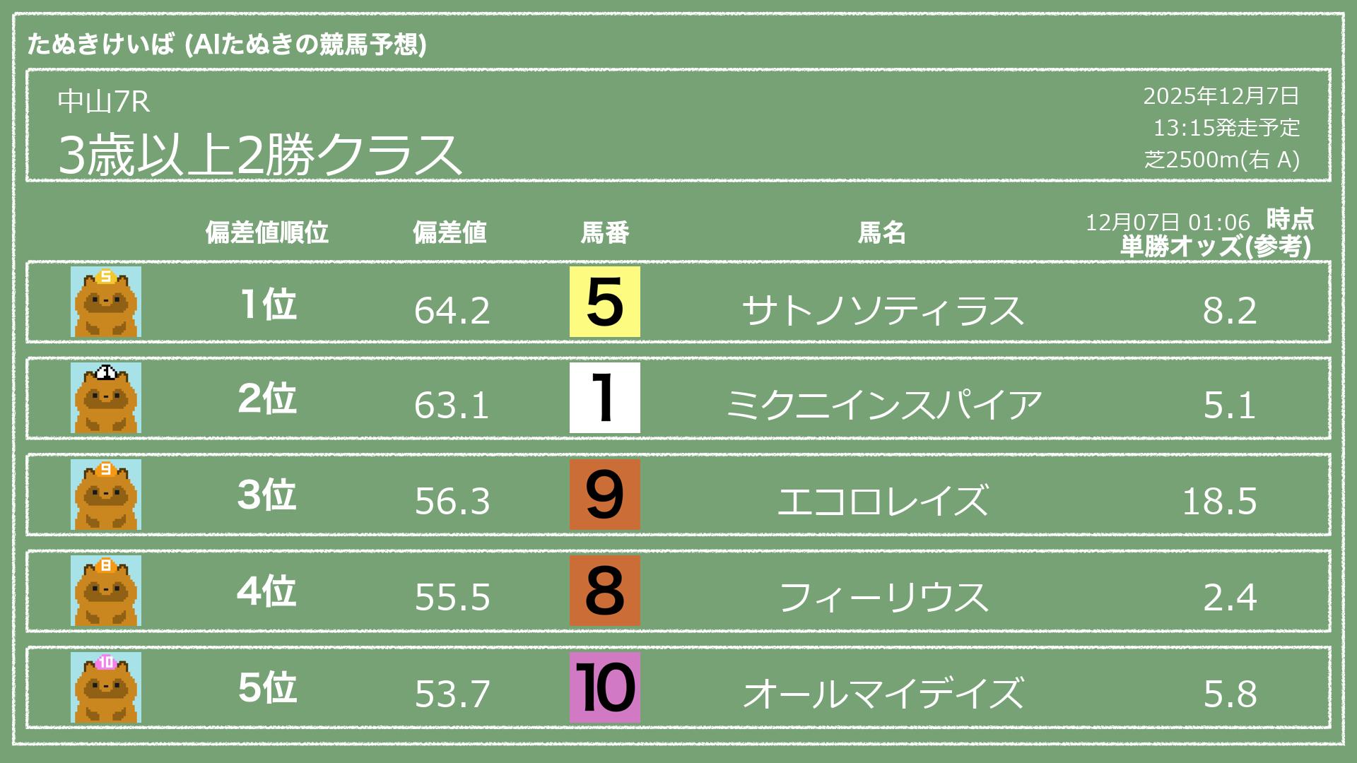 | 9 | 3 | 5 | ズバットマサムネ | 7 | 13.4 | 45.6 |