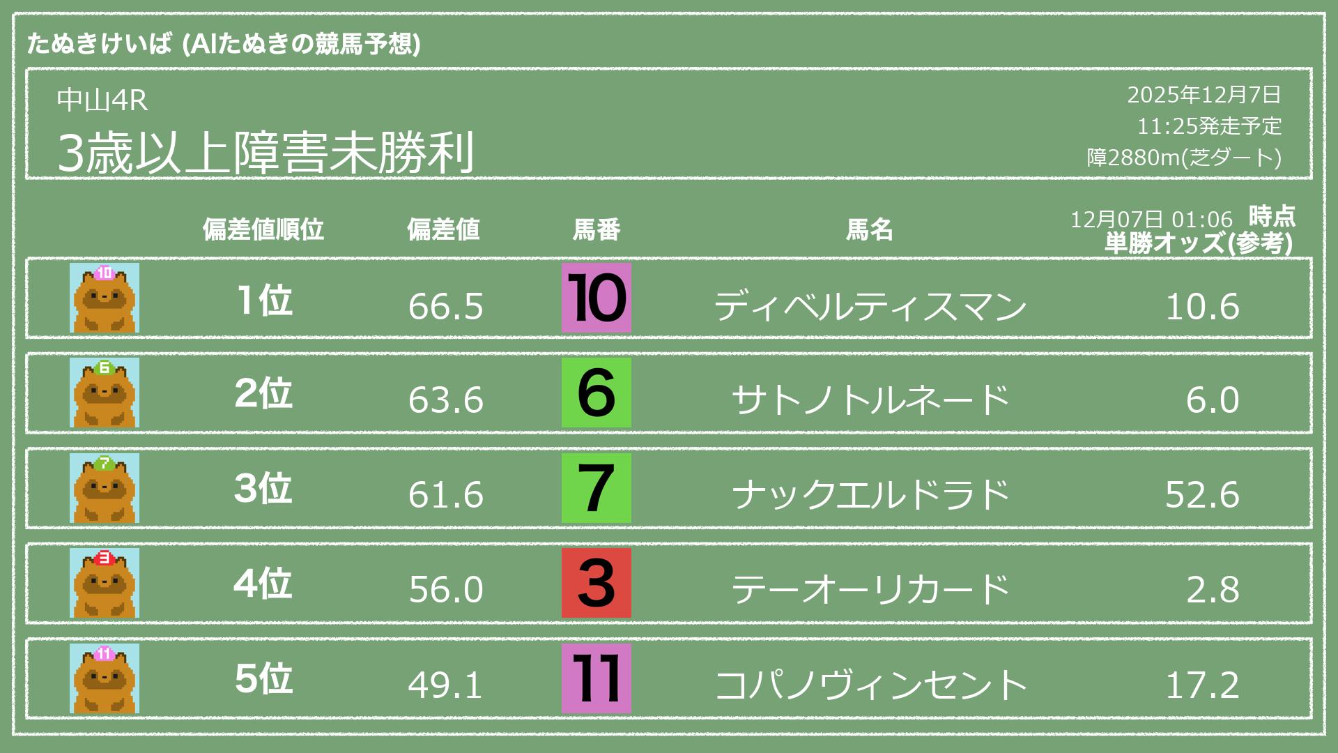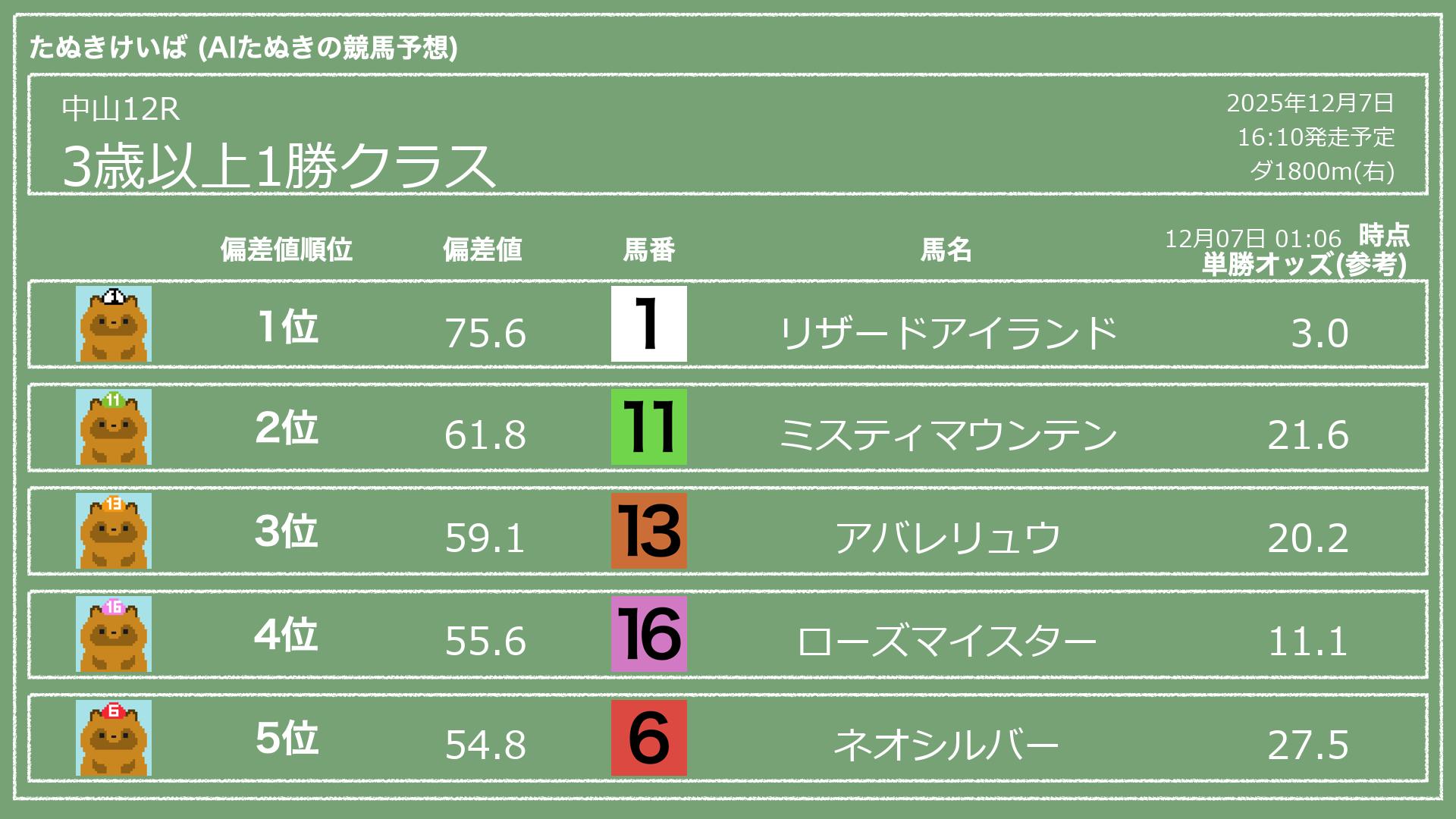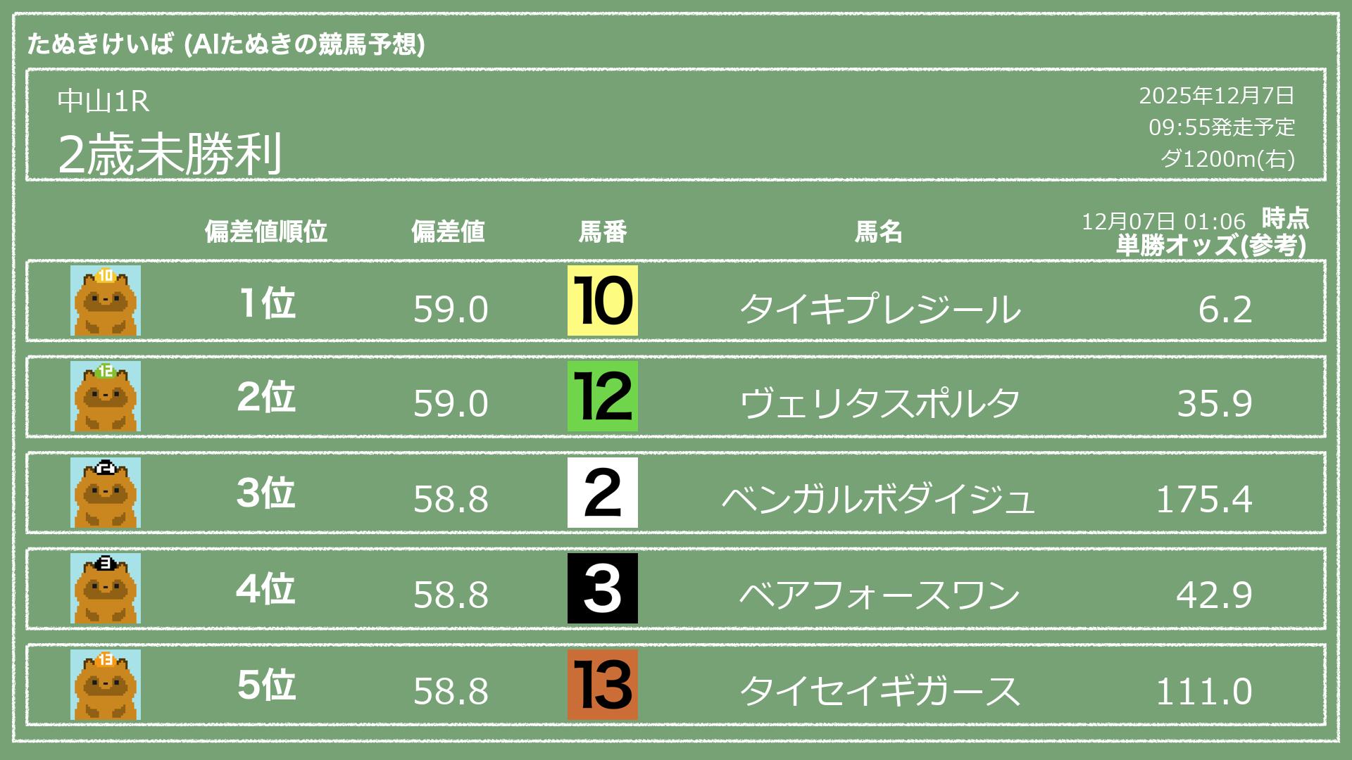 | 9 | 3 | 5 | ズバットマサムネ | 7 | 13.4 | 45.6 |