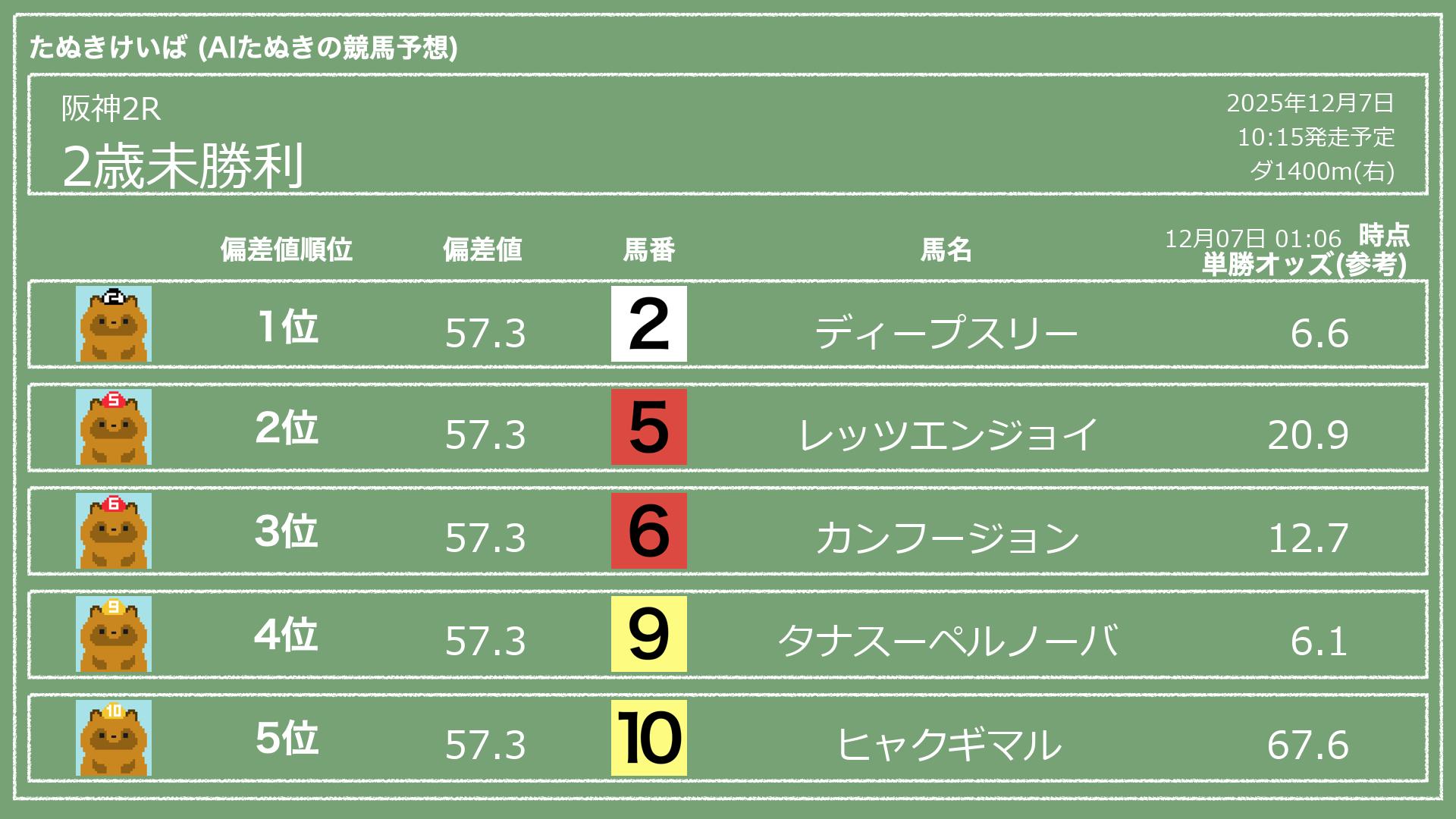 | 1 | 1 | 2 | ディープスリー | 3 | 6.6 | 57.3 |