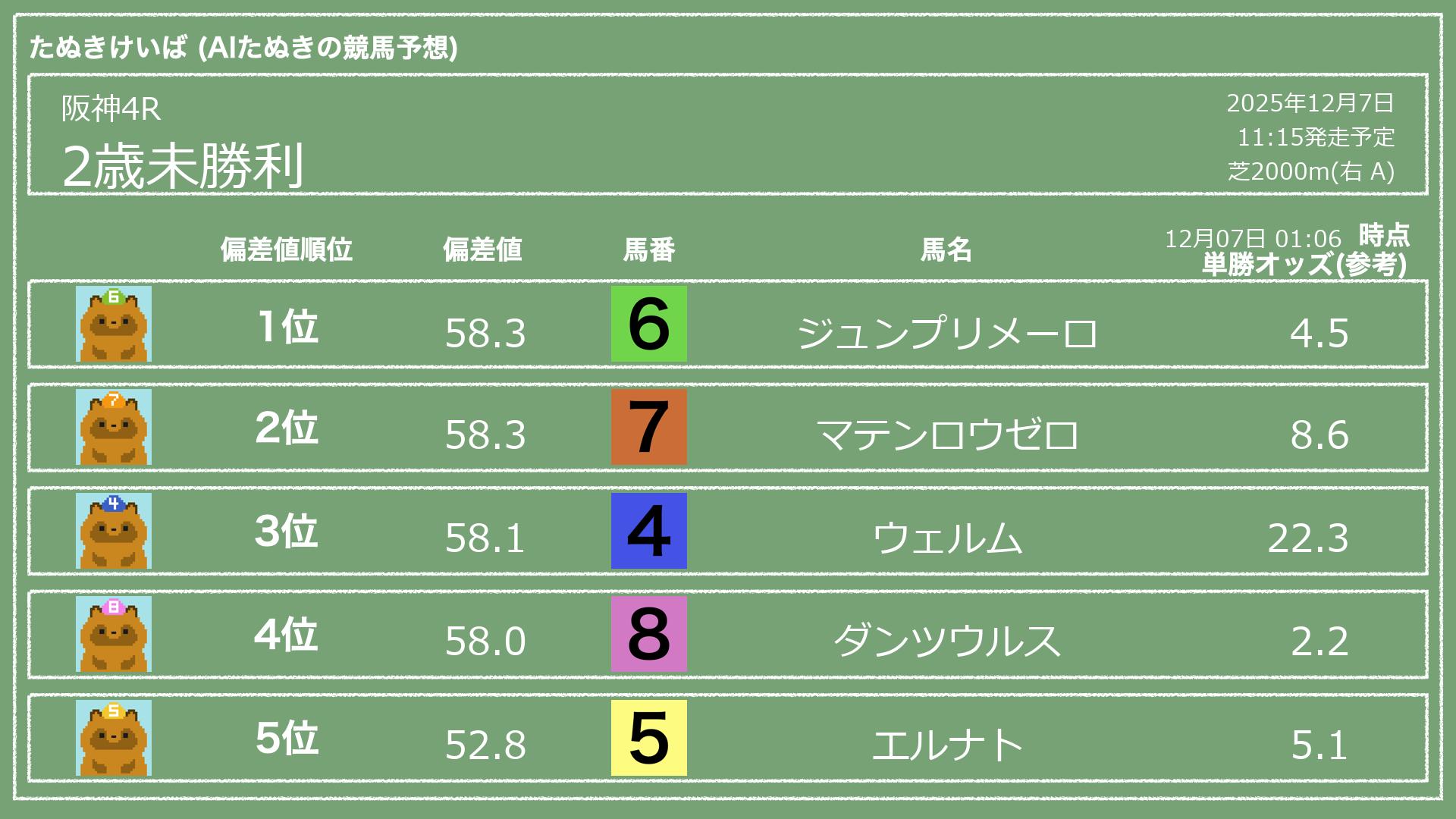 | 5 | 5 | 5 | レストプレドゥモア | 4 | 8.7 | 52.1 |