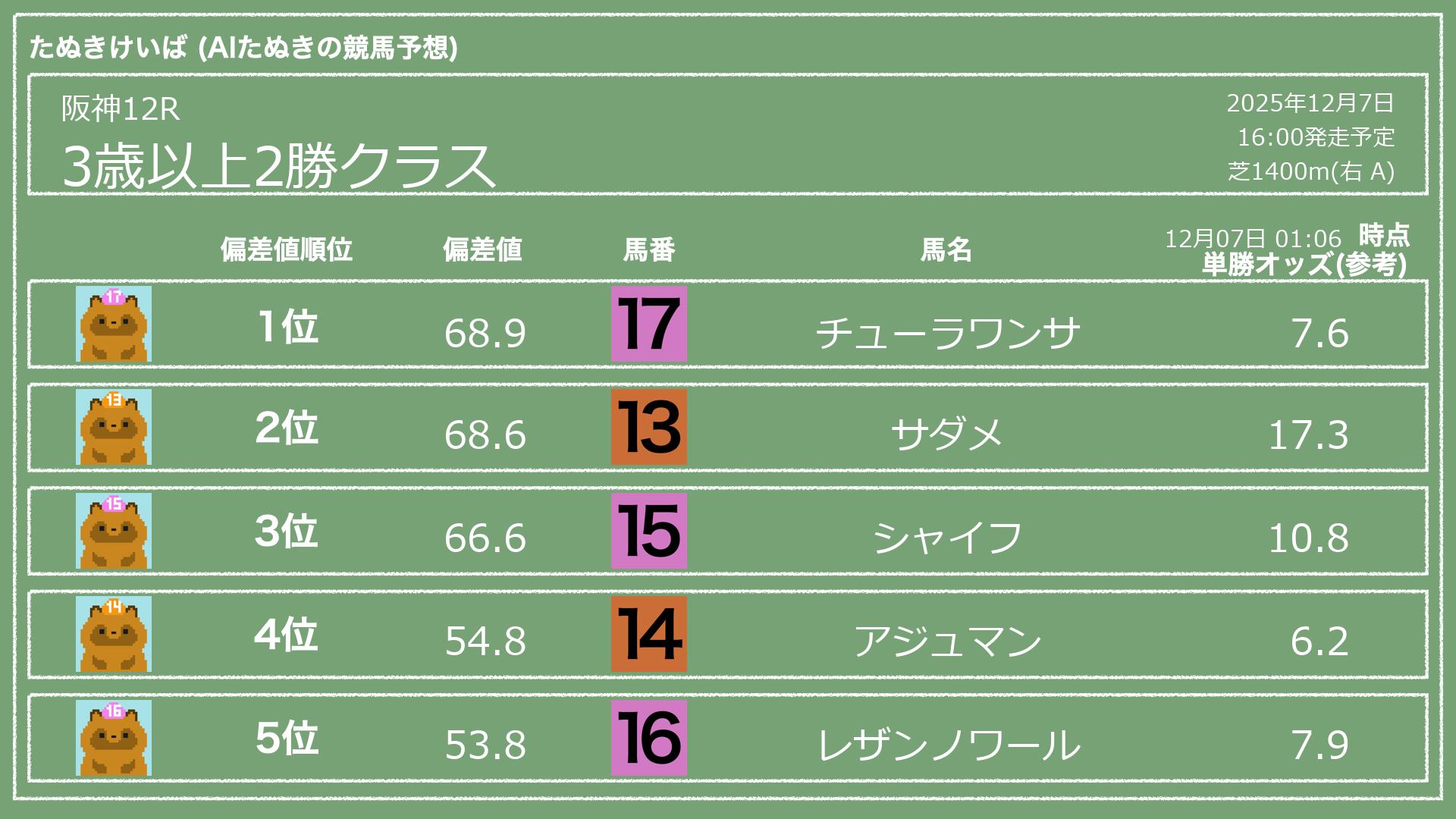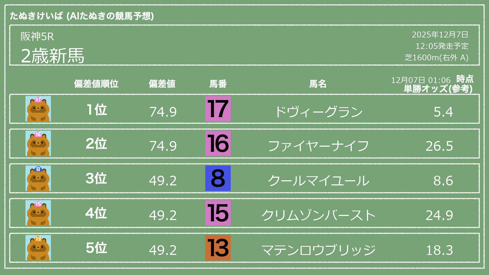 | 17 | 2 | 3 | ランスオブラヴ | 15 | 66.7 | 41.6 |
