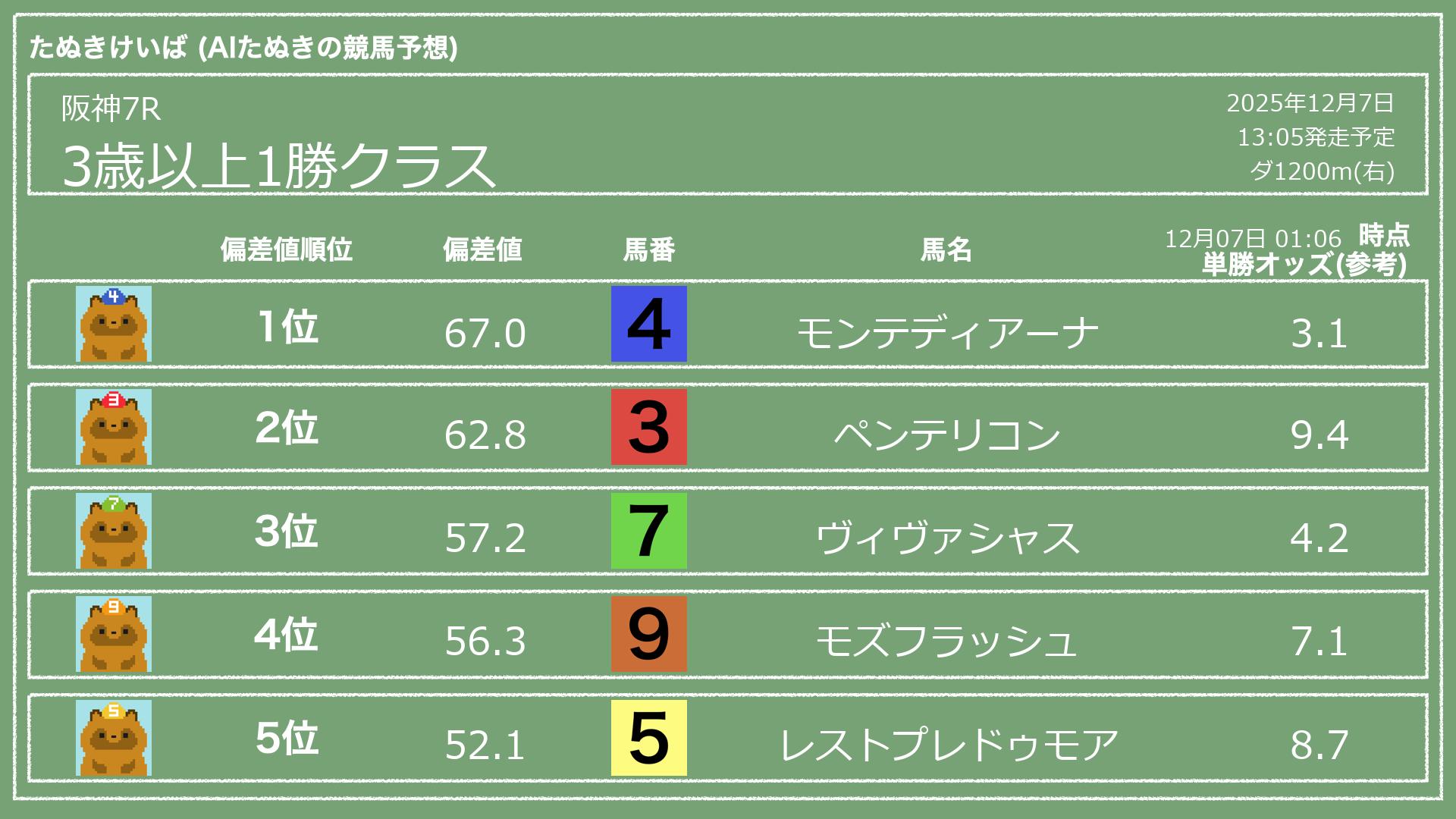 | 7 | 1 | 1 | オリエンタルナイト | 7 | 34.8 | 39.2 |