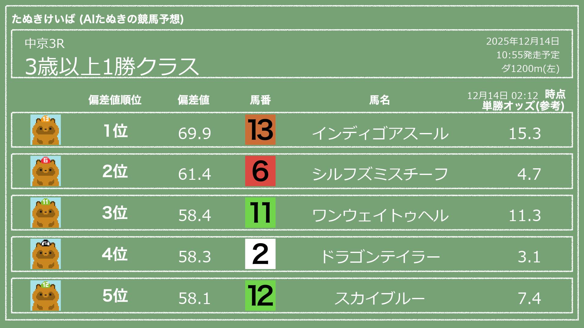 | 14 | 3 | 5 | ルグランシャリオ | 14 | 47.0 | 38.6 |