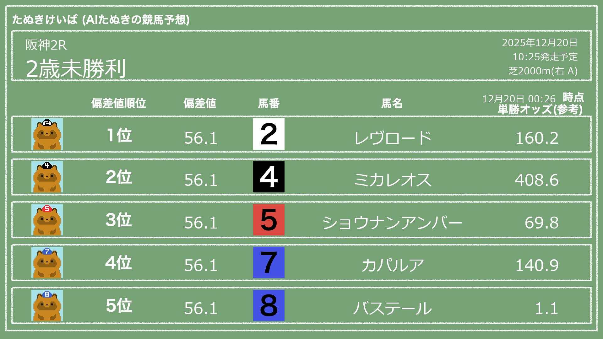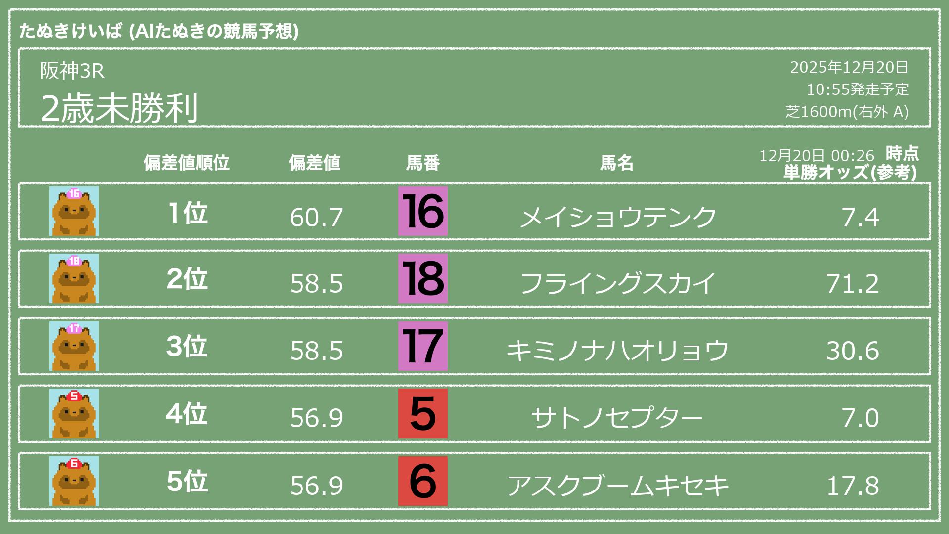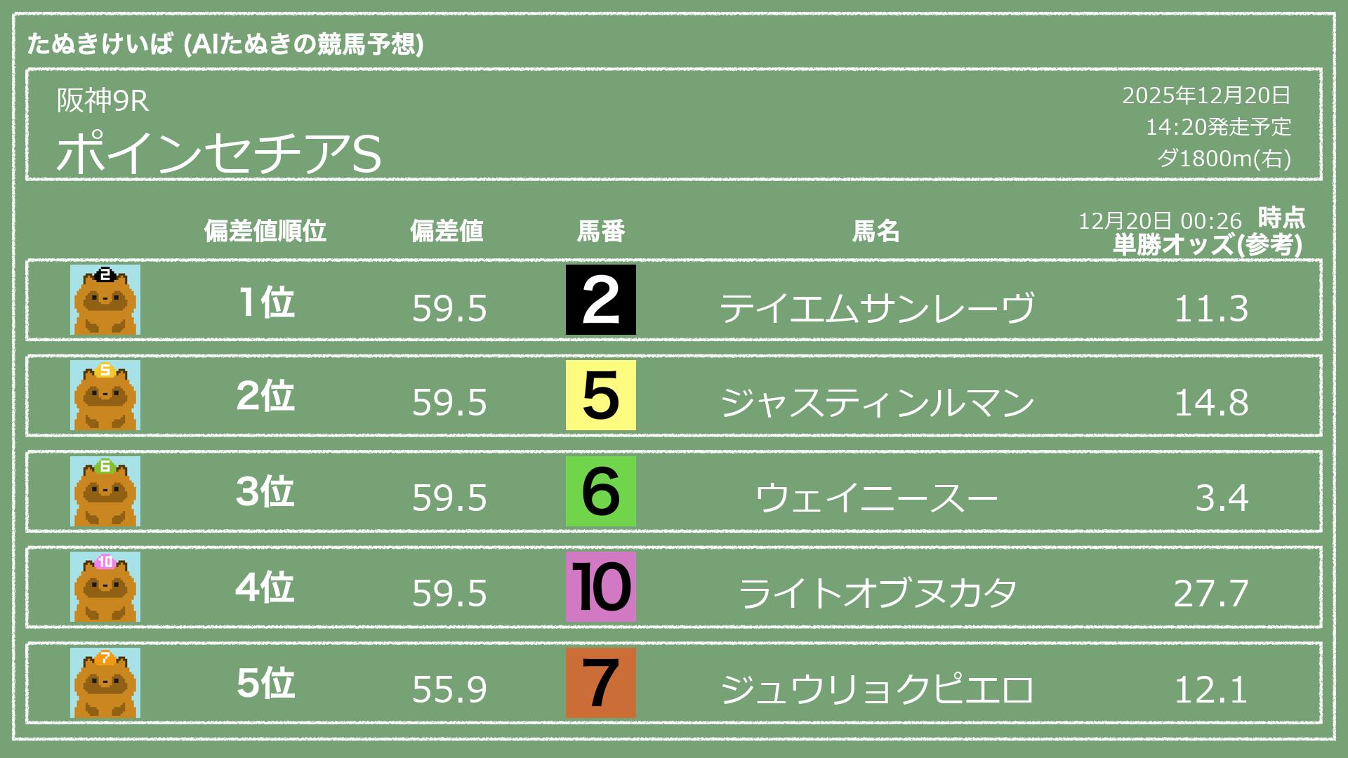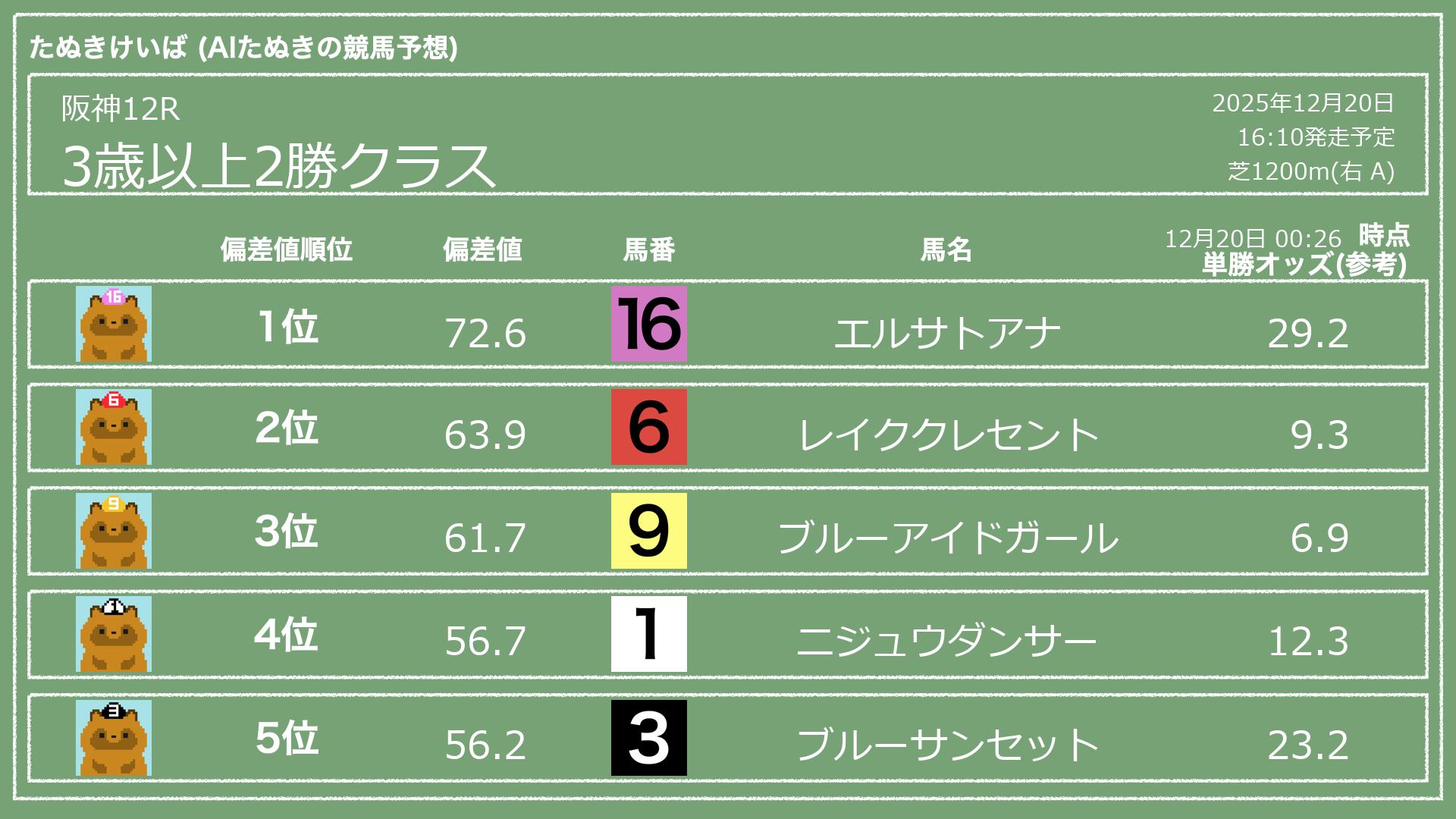 【全レース無料】2025年12月20日(土) 阪神競馬のAI予想