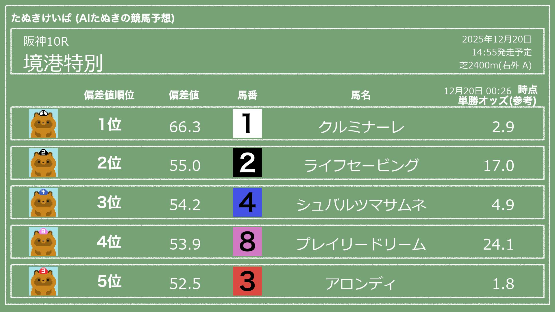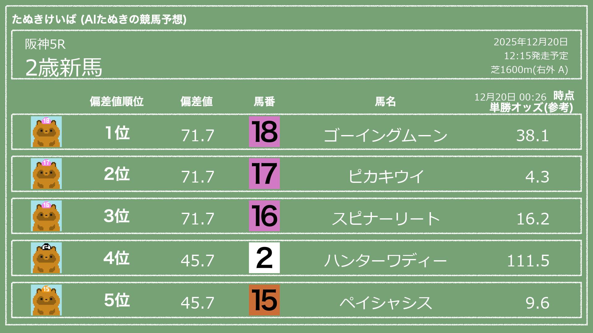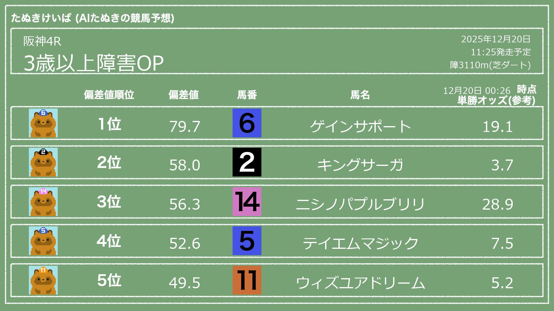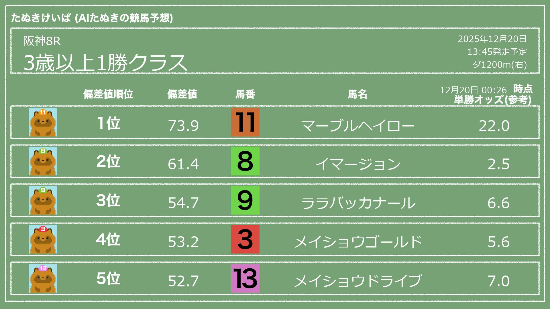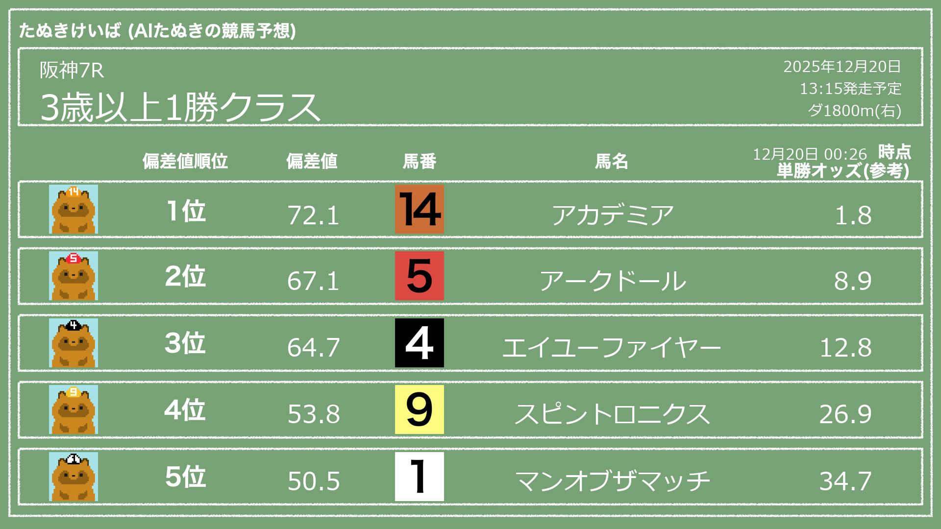 【全レース無料】2025年12月20日(土) 阪神競馬のAI予想