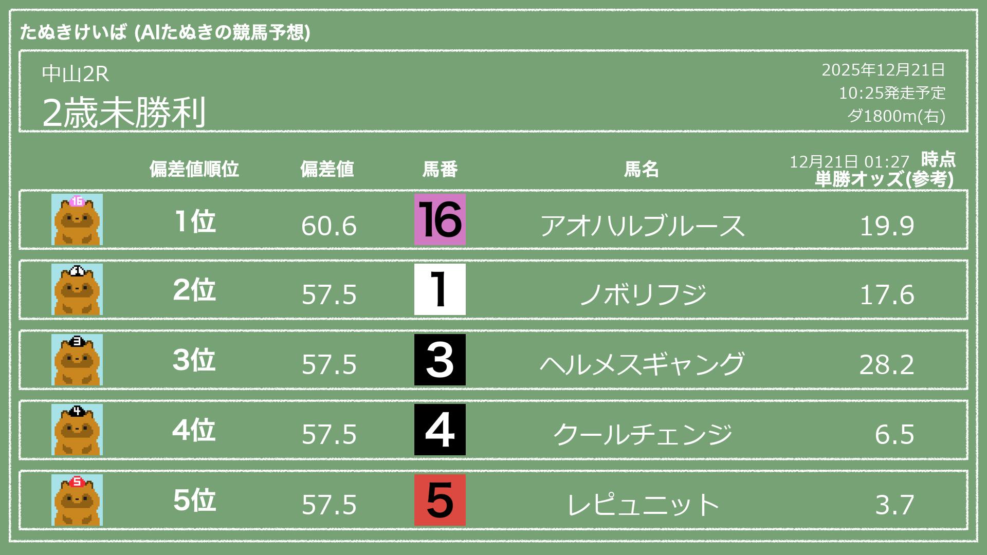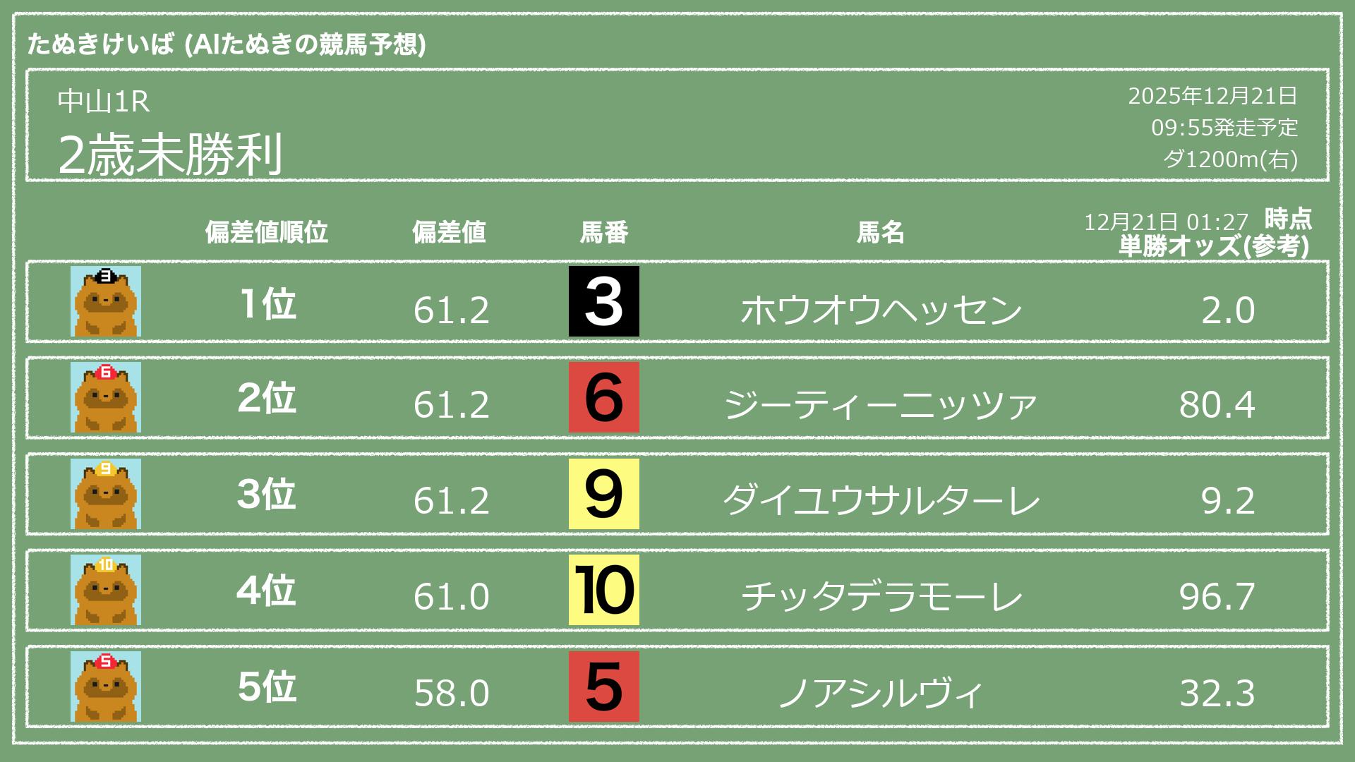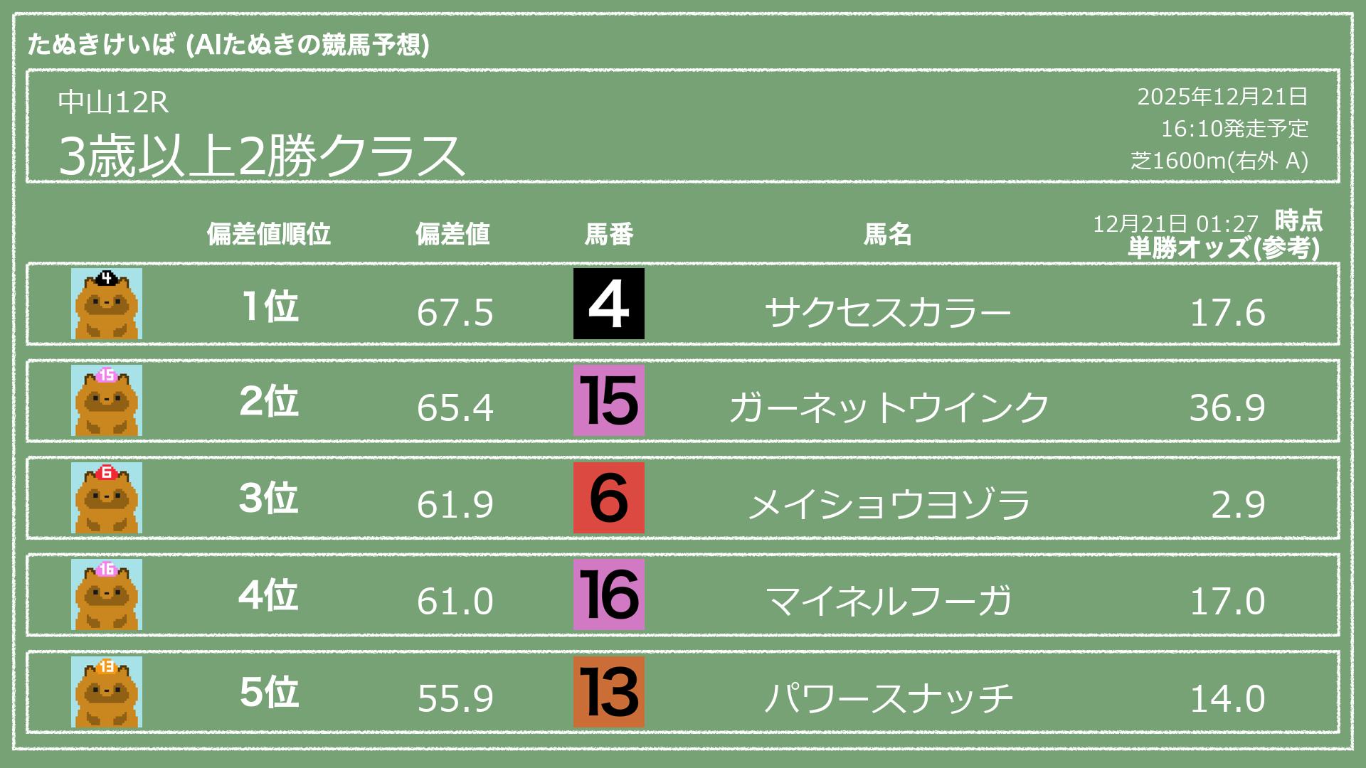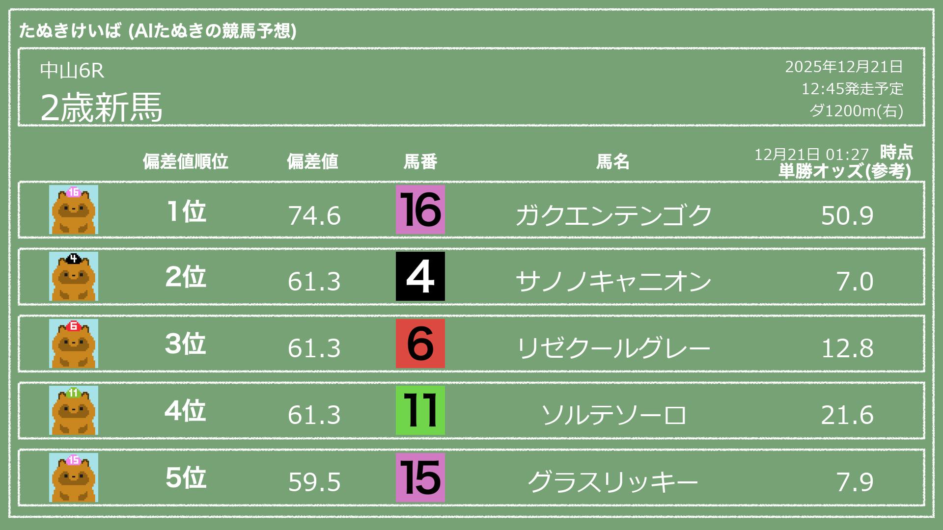 【全レース無料】2025年12月21日(日) 中山競馬のAI予想