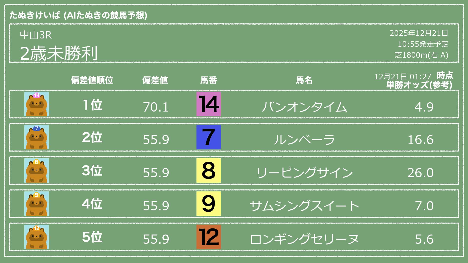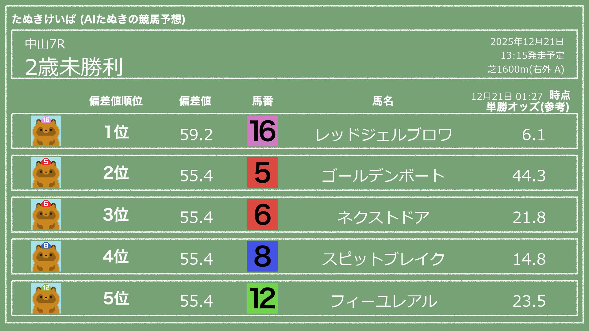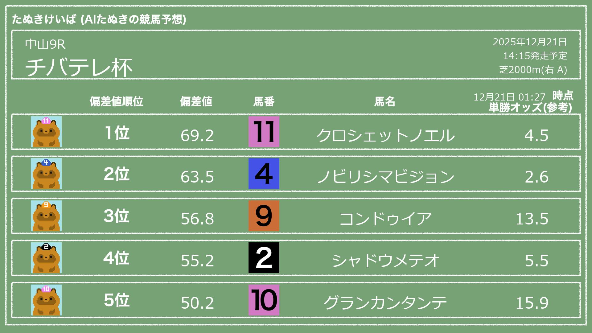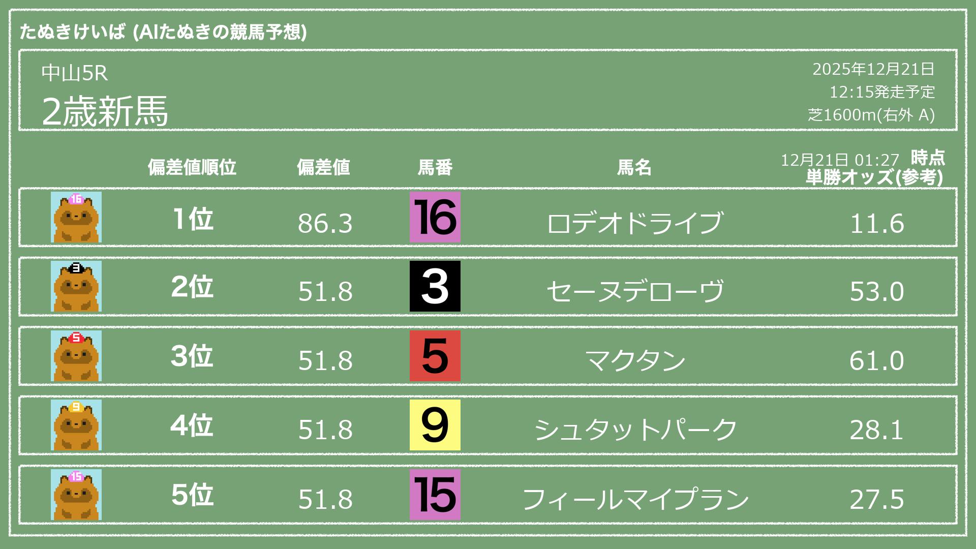 【全レース無料】2025年12月21日(日) 中山競馬のAI予想