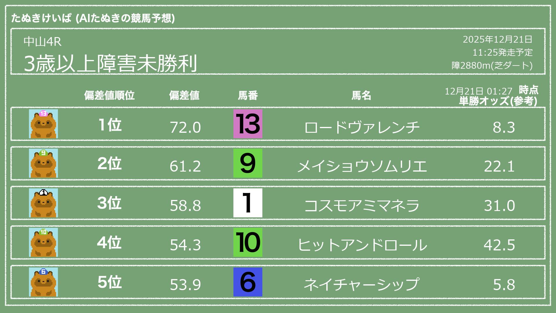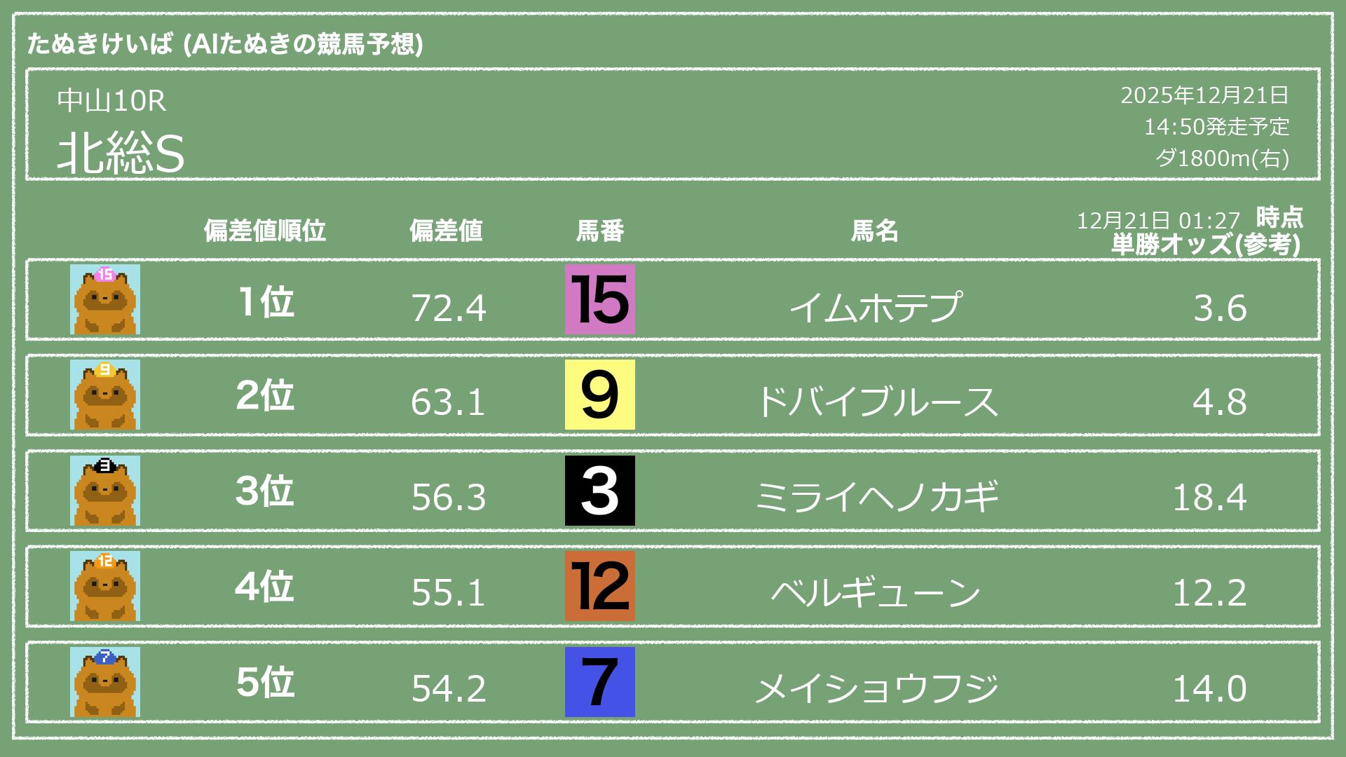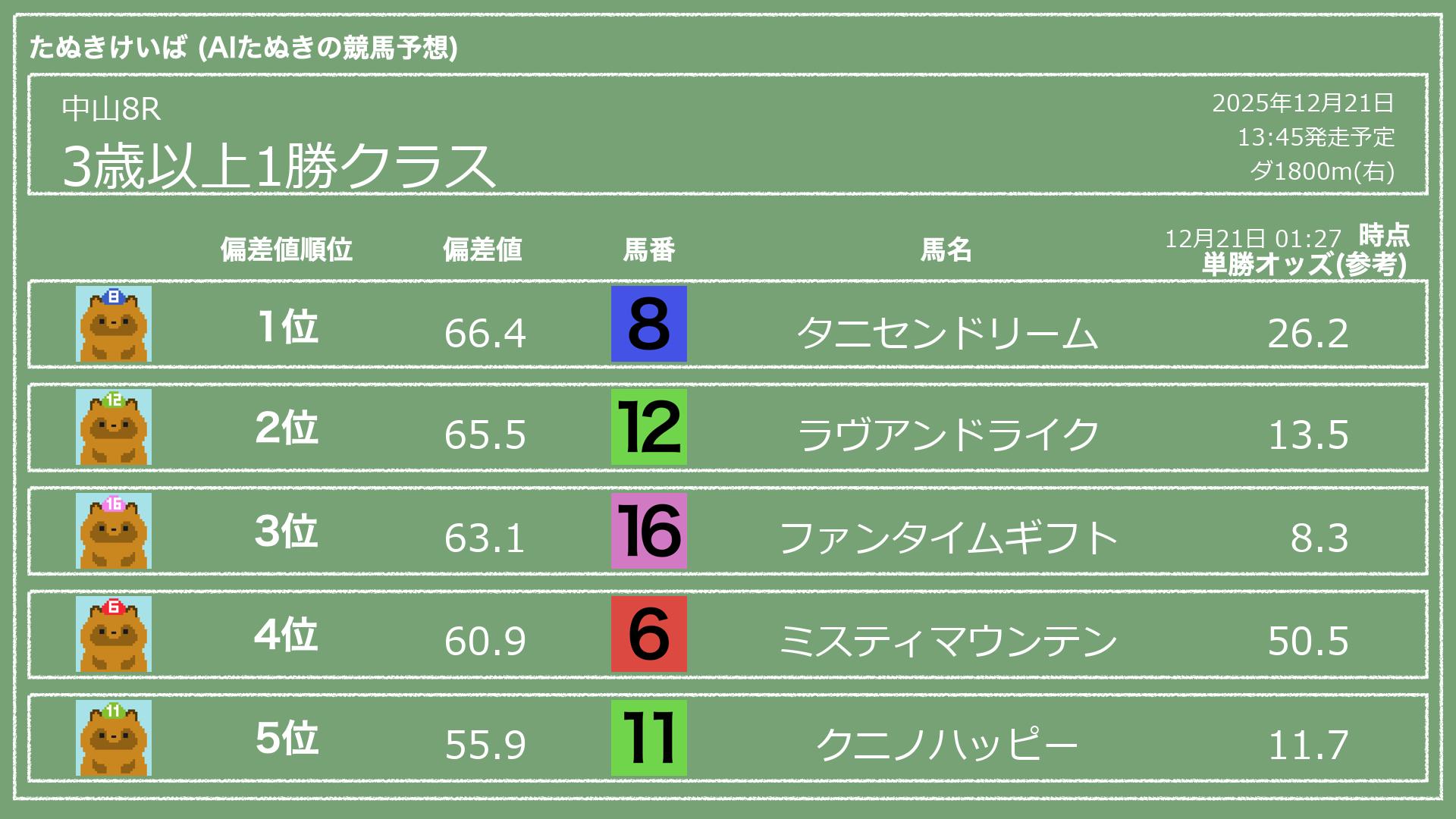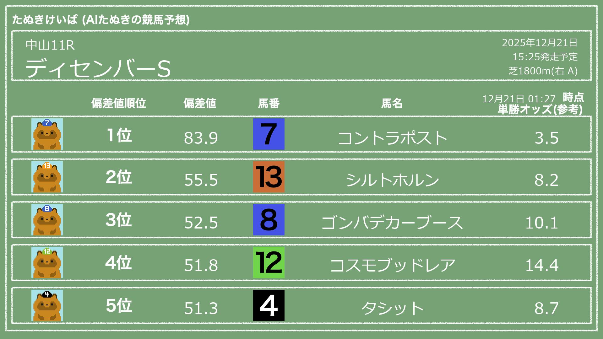 【全レース無料】2025年12月21日(日) 中山競馬のAI予想