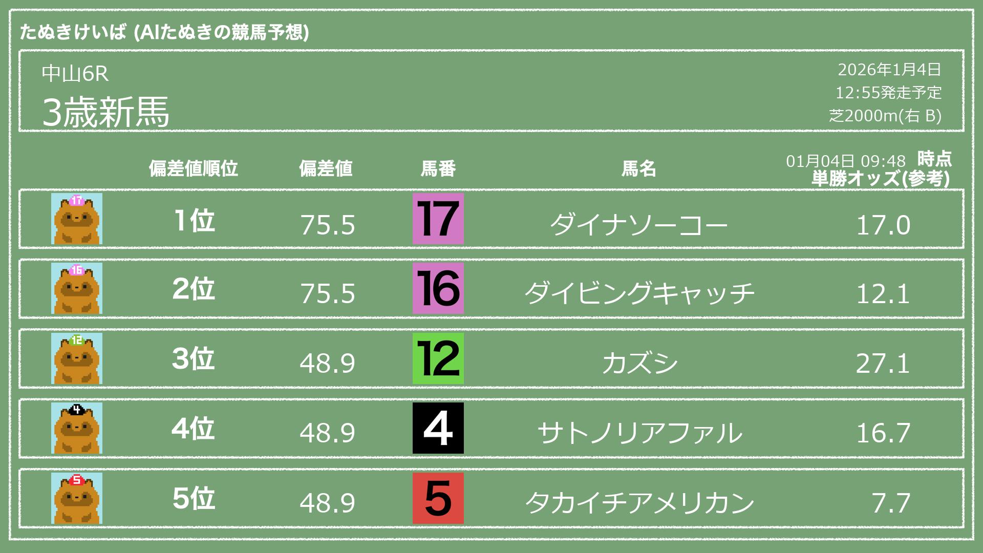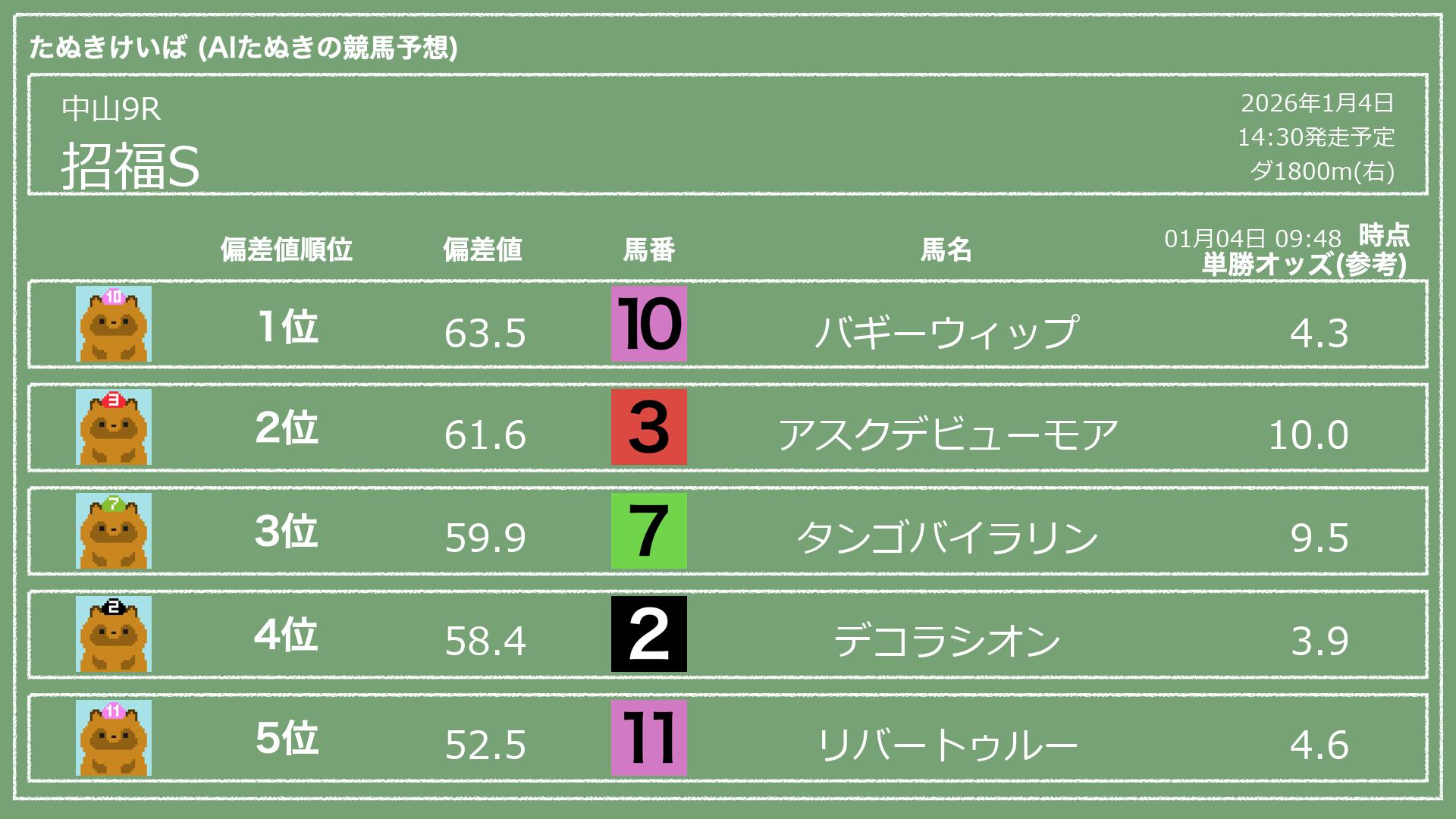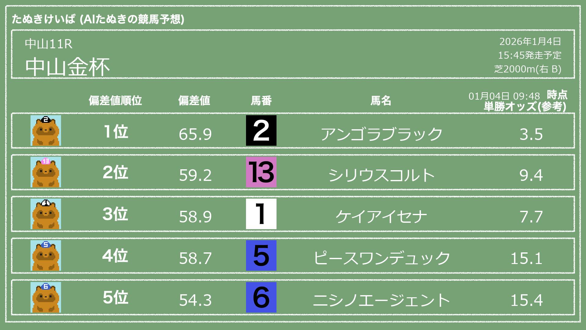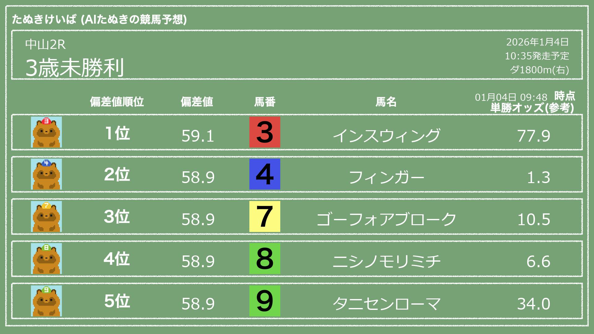 「たぬきけいば」による無料競馬予想です🥳