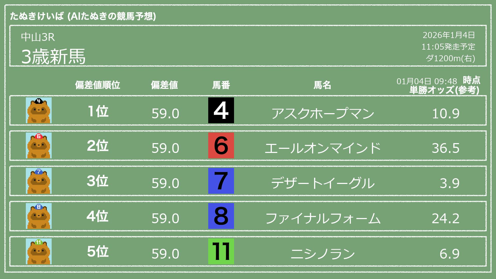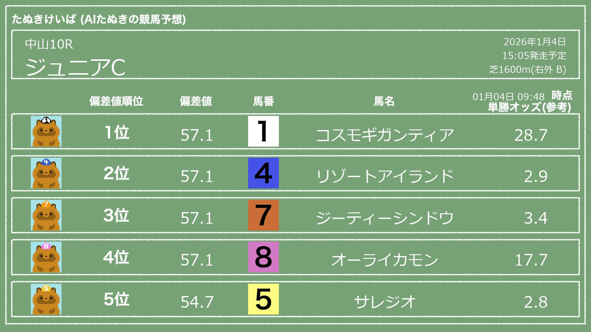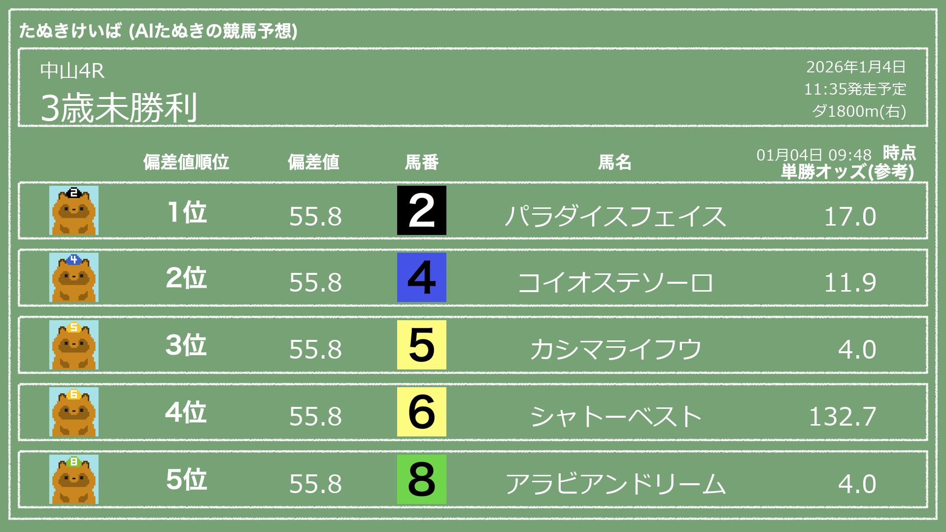 「たぬきけいば」による無料競馬予想です🥳
